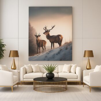 Canvas Print of Winter Companions – Deer Duo Art | Artfy
