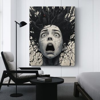 Canvas Print of Cracked Silence – Dark Abstract Portrait Art | Artfy
