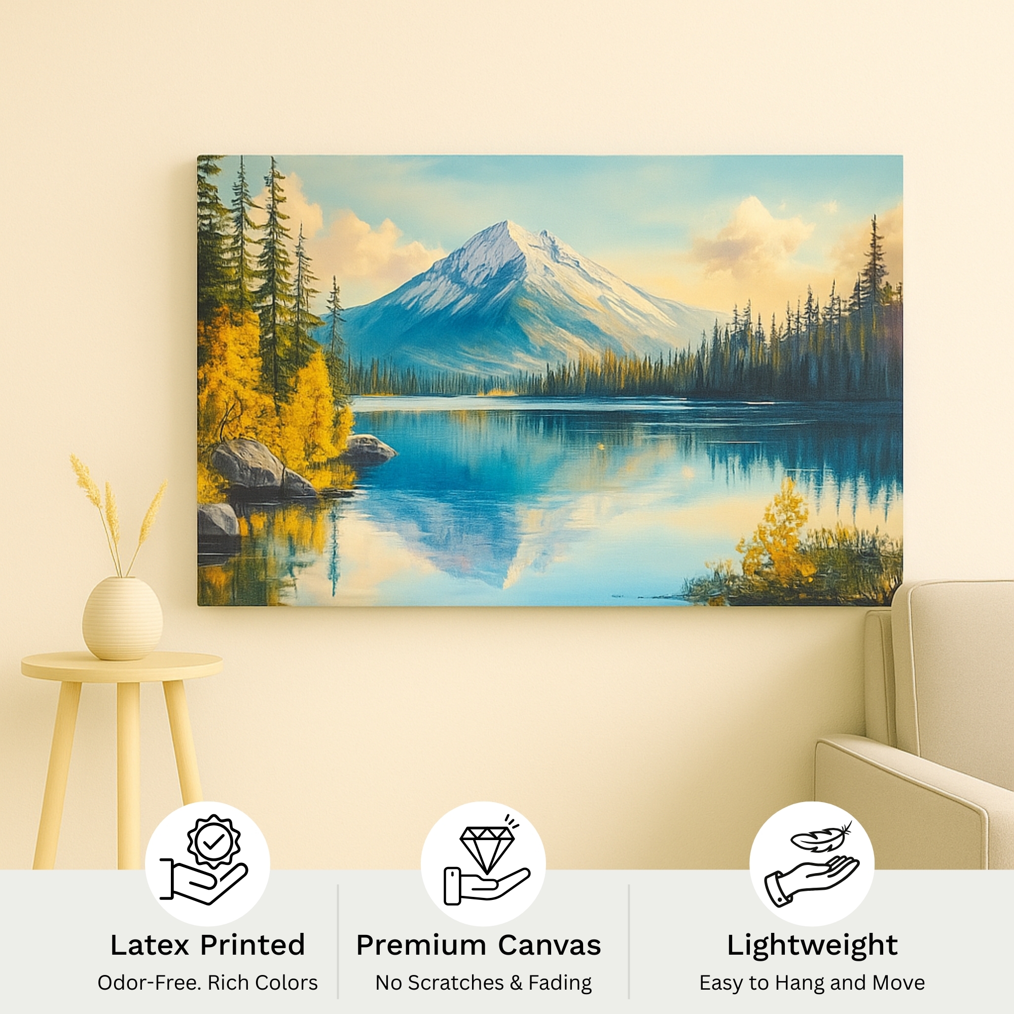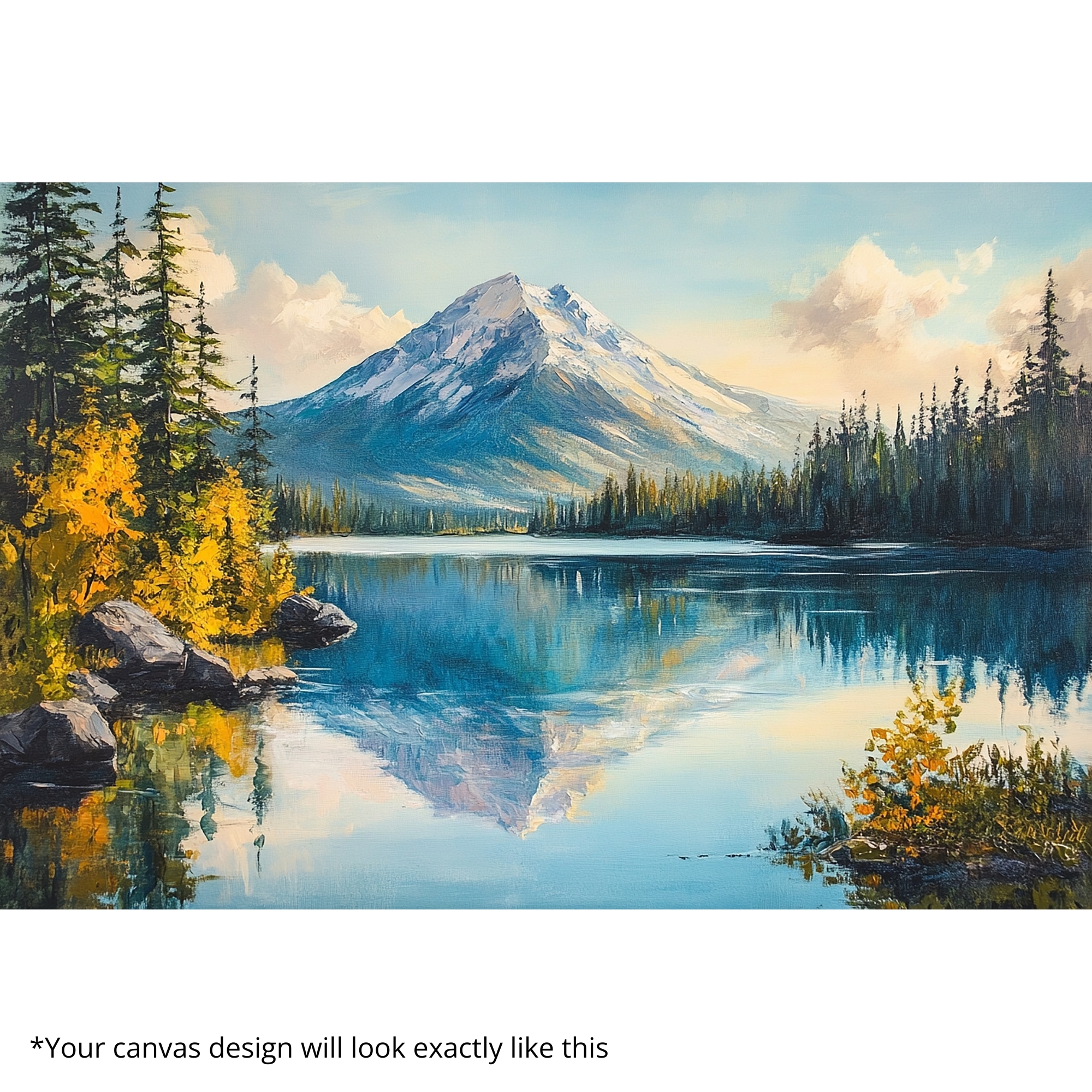 Each Alpine Reflection canvas is handcrafted in India with premium artistry.