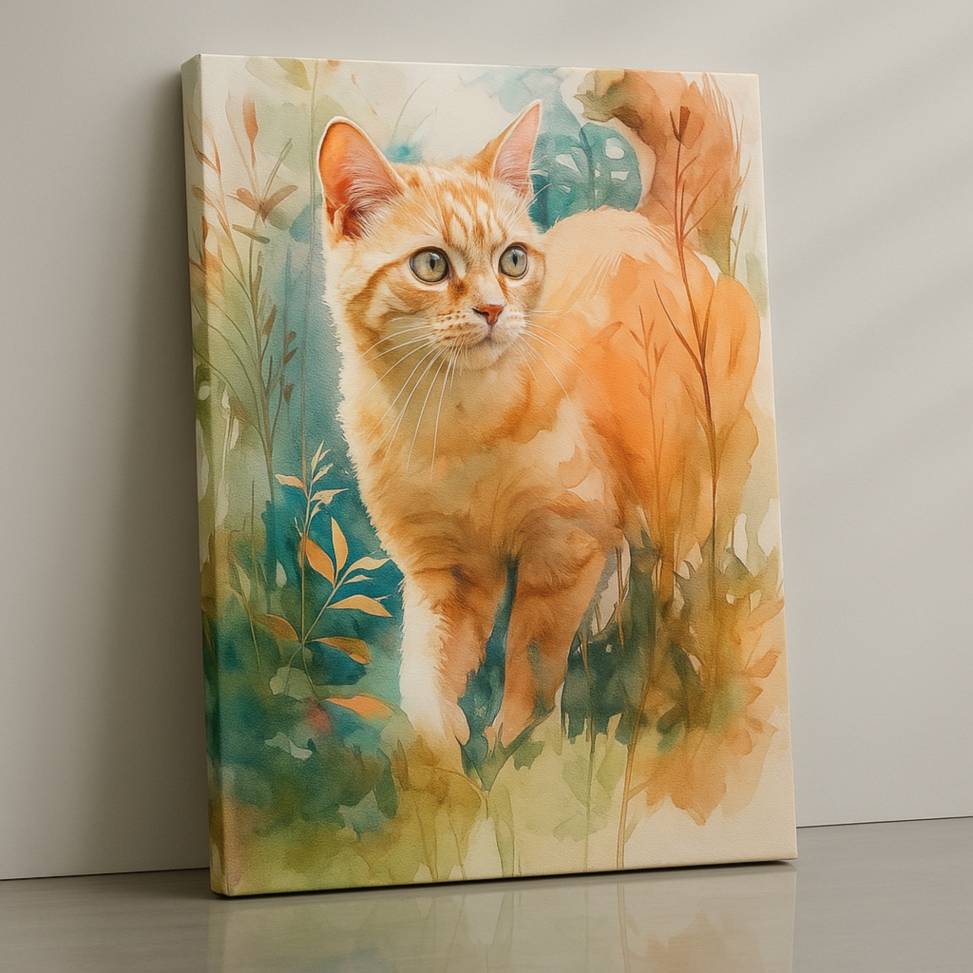 Autumn Ginger Canvas Print captures a warm, charming fox surrounded by amber leaves and fall-toned brushstrokes. It radiates coziness, warmth, and gentle forest energy—perfect for rustic spaces, bedrooms, and nature-inspired homes.