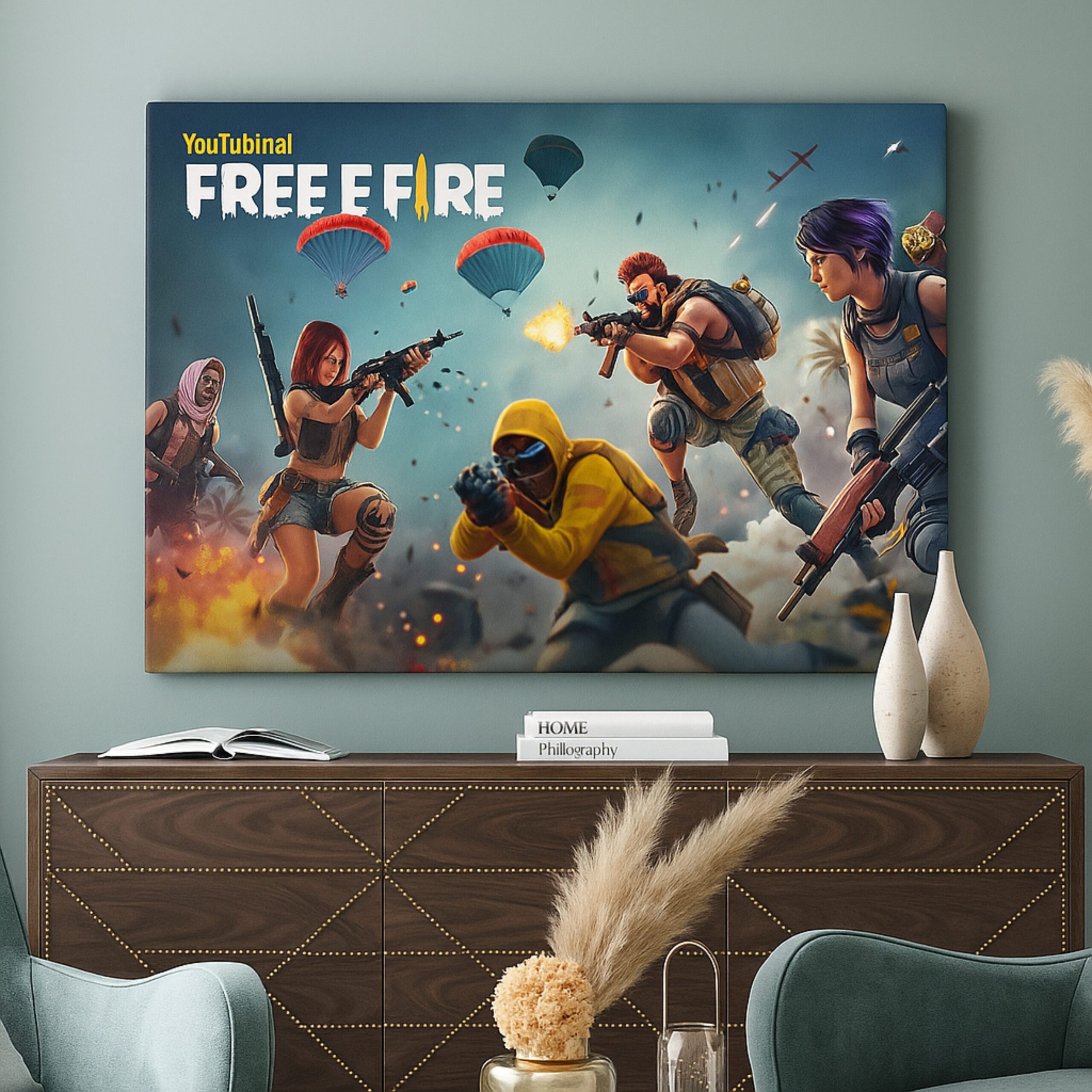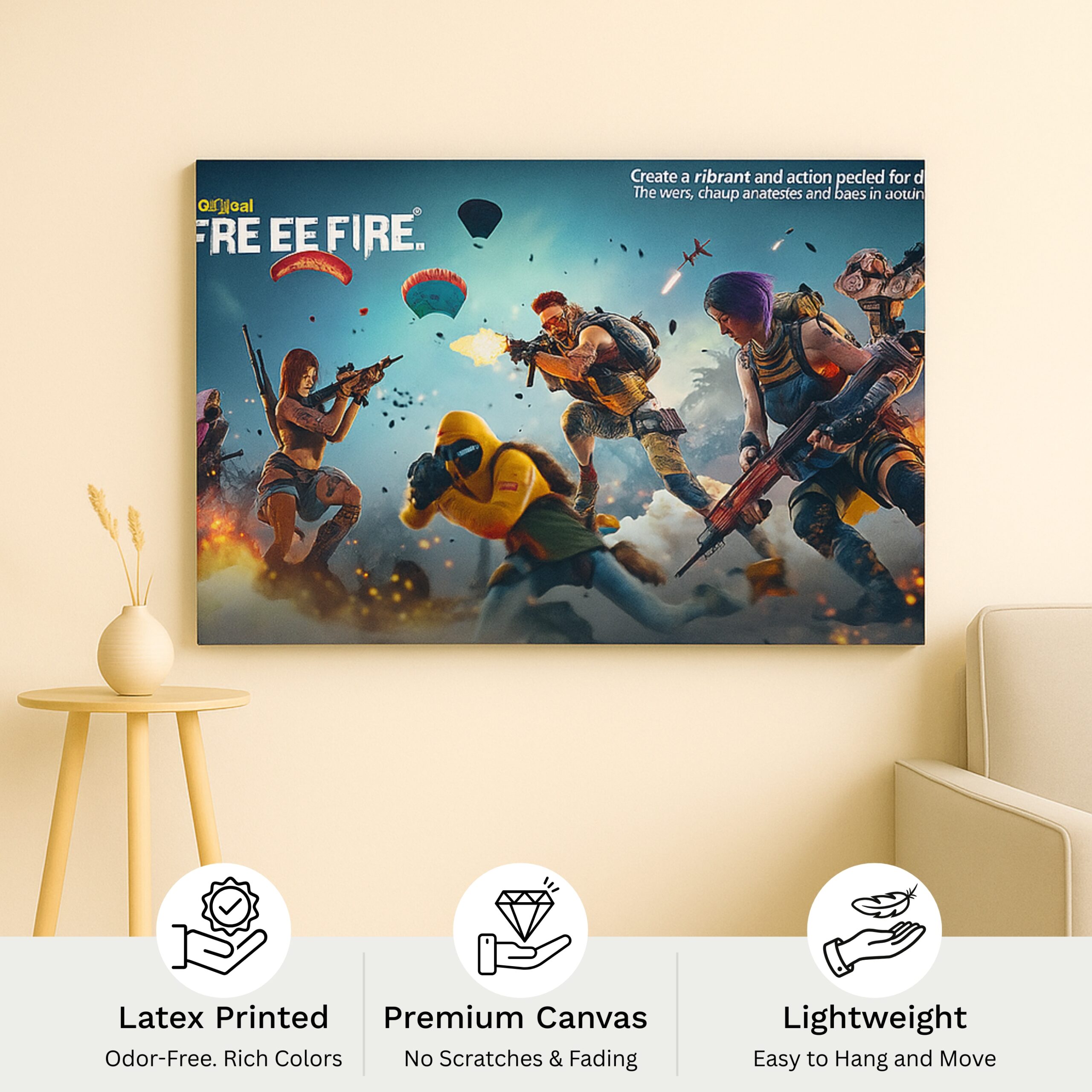 The Battle Drop Canvas Print captures the thrill of action as warriors parachute into a fiery battleground, embodying teamwork, survival, and energy. Inspired by gaming culture, this dynamic canvas print brings battle royale excitement into modern homes. Its bold characters, parachutes, and glowing details energize interiors, turning walls into immersive storytelling spaces perfect for gamers and adventurers.