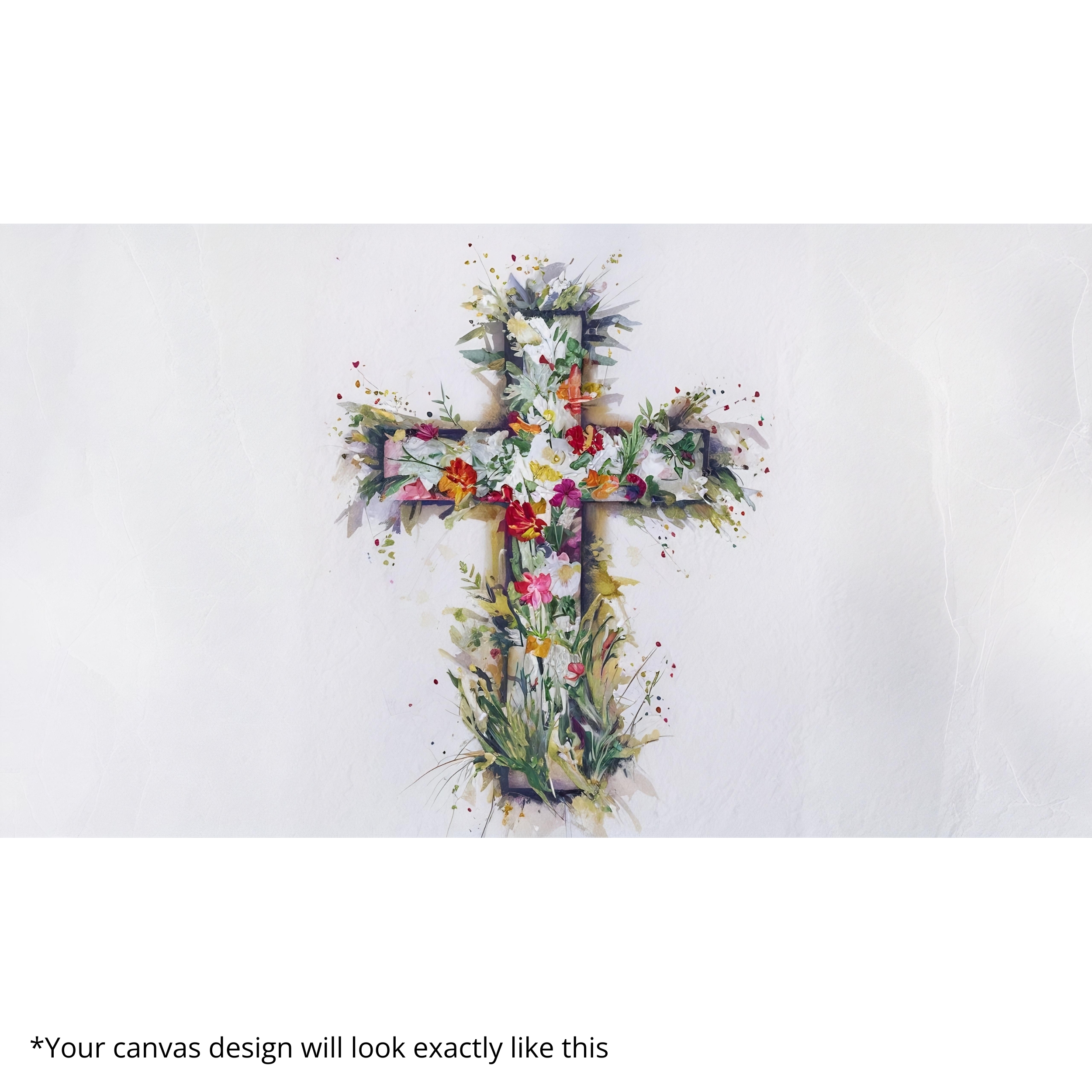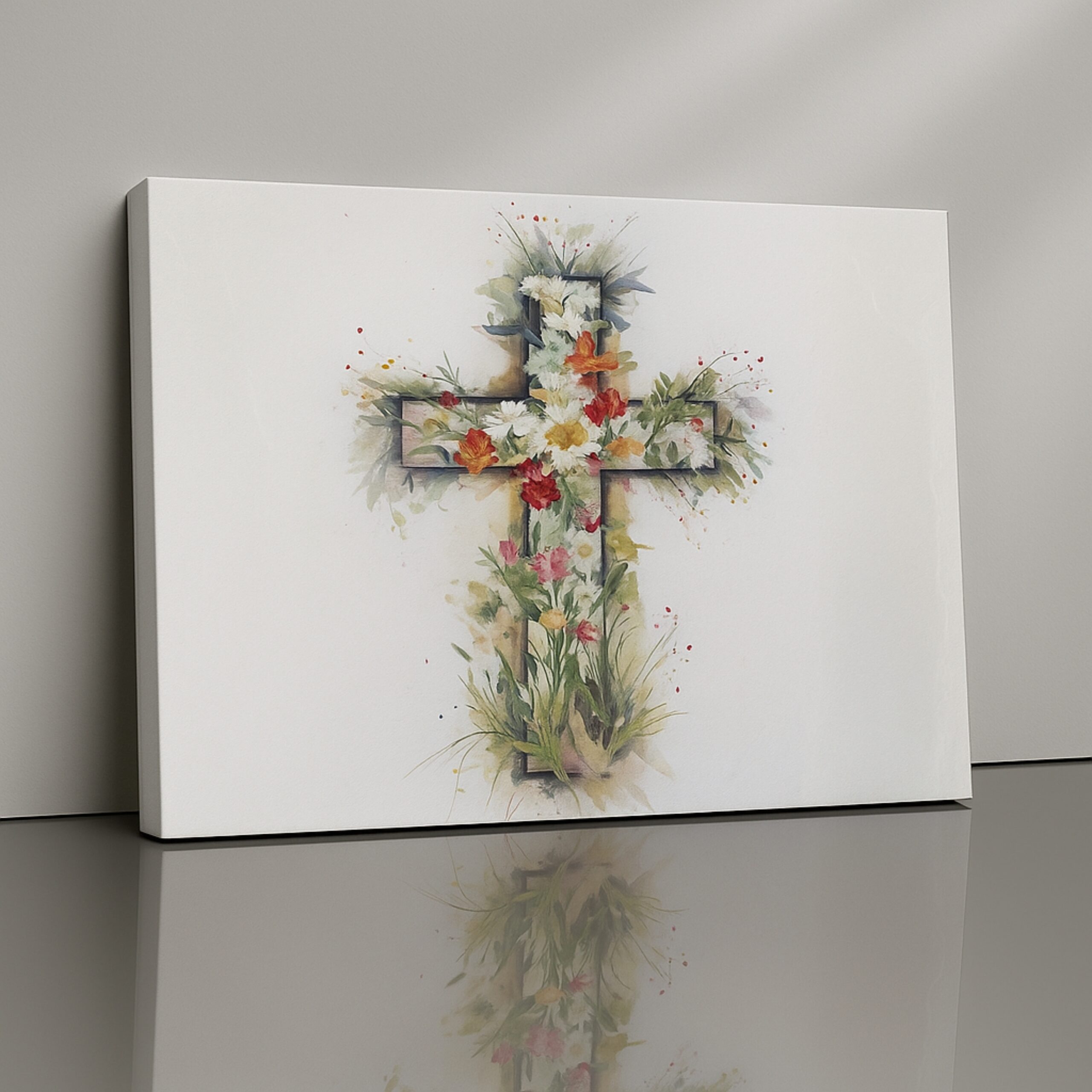 The Bloomed Redemption Canvas Print depicts a cross formed of blooming flowers on a soft white background. This canvas print symbolizes resurrection, grace, and the beauty of renewal. Printed on premium stretched canvas with eco-friendly inks, its colors remain crisp and uplifting. Smooth edges and ready-to-hang finish enhance its elegant presentation. This canvas print brings a sense of hope and light to any room.