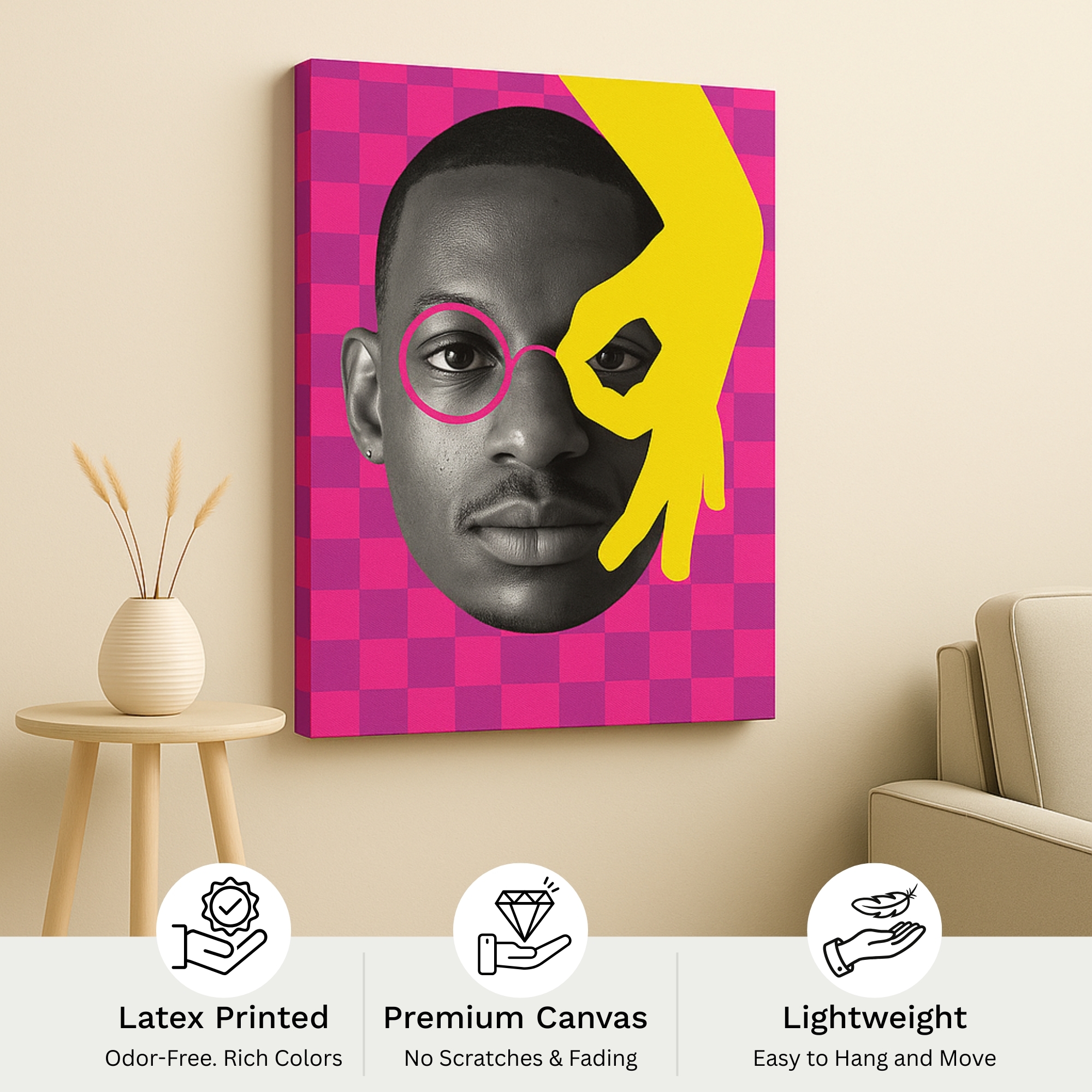 “Bold Identity Canvas Print features powerful character expression, strong contemporary lines, and impactful facial geometry. Designed for modern apartments, studios, fashion-driven interiors, and statement décor themes, this canvas print radiates strength and individuality. Its bold composition adds confidence and personality to any wall.