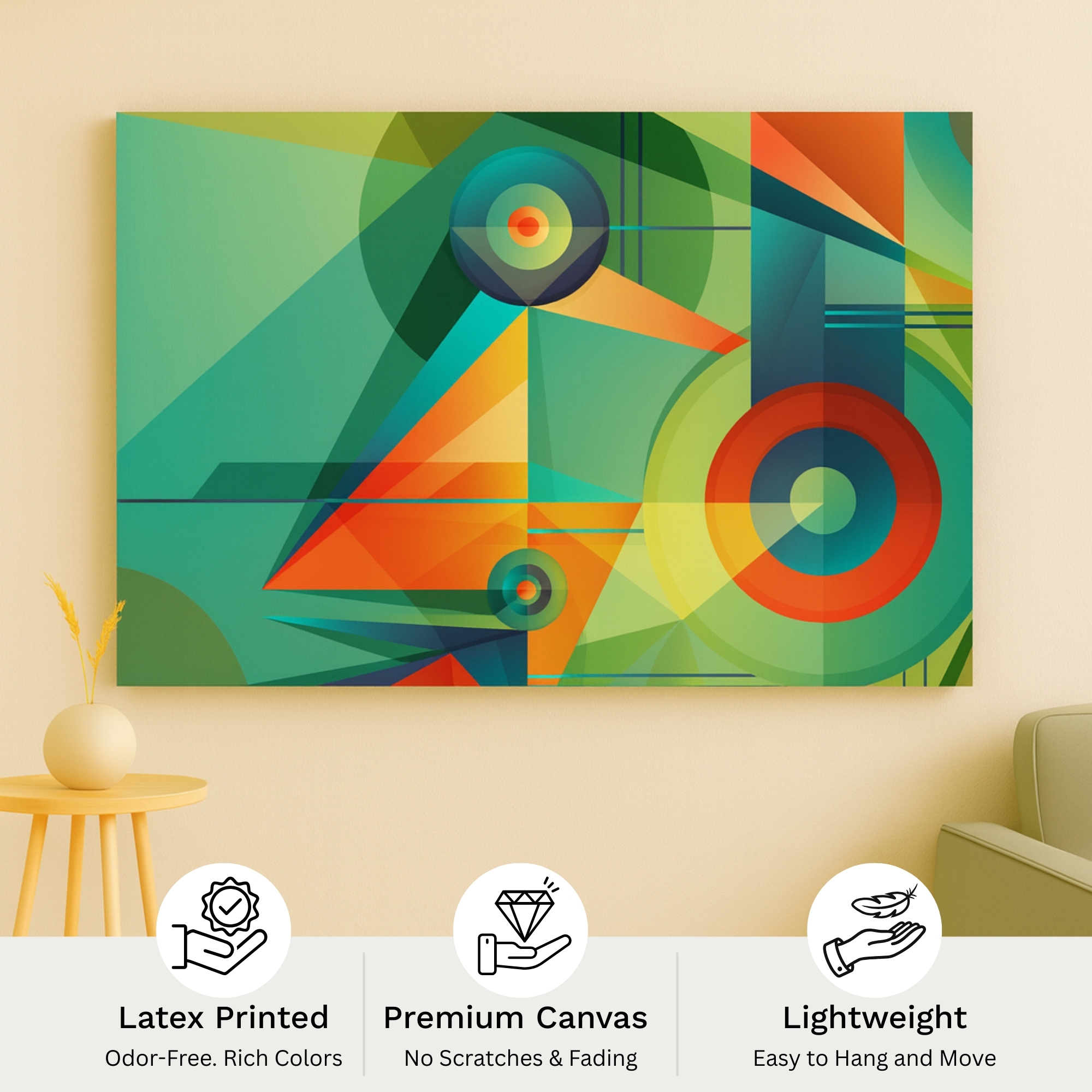 The Chromatic Motion canvas print delivers layered color movement, vibrant strokes, and dynamic artistic expression suited for modern homes. Perfect for brightening living rooms, nurseries, creative corners, and home offices, this canvas delivers warmth, balance, and high-end aesthetic appeal. Playful Echoes fits beautifully with pastel décor, Scandinavian themes, and modern abstract styling.