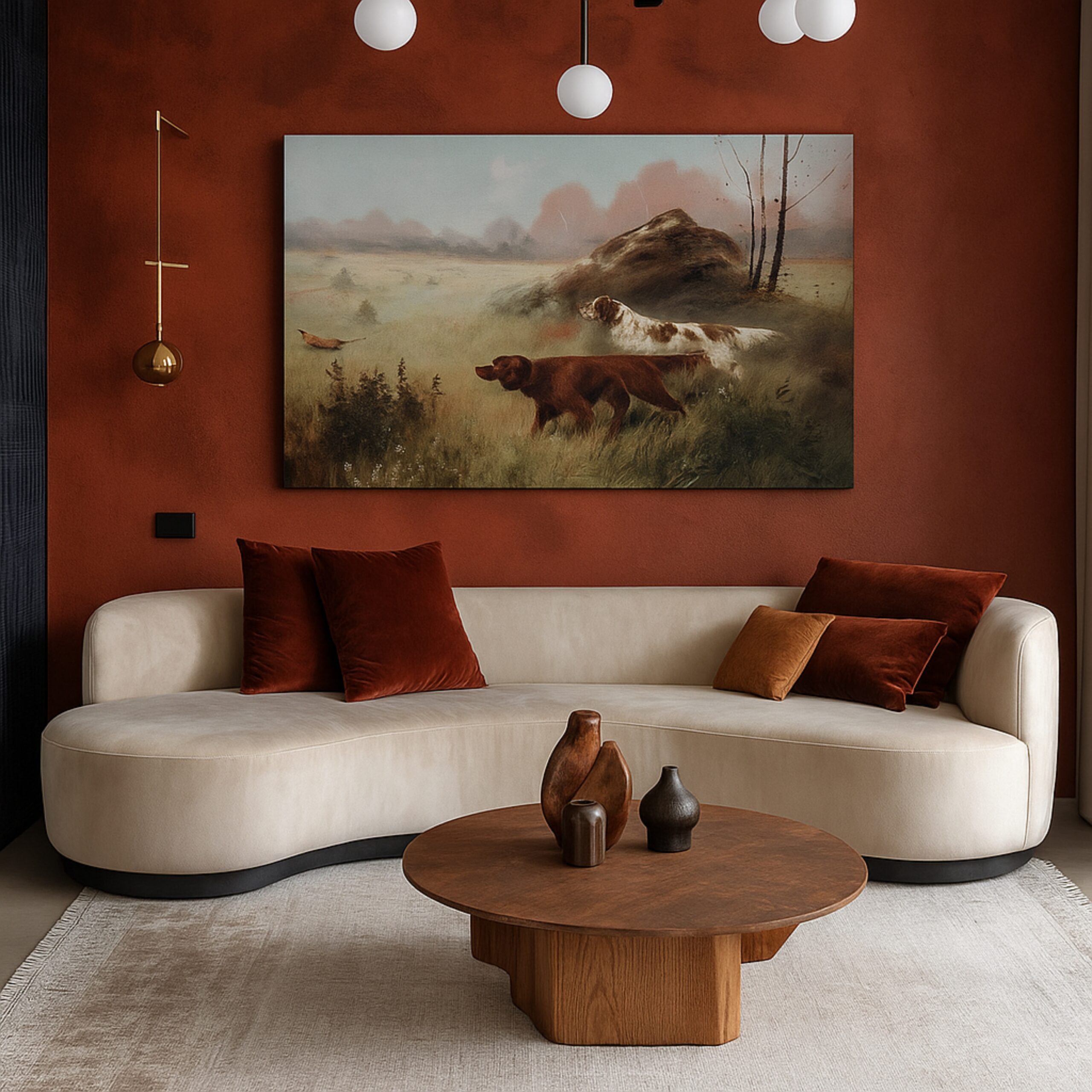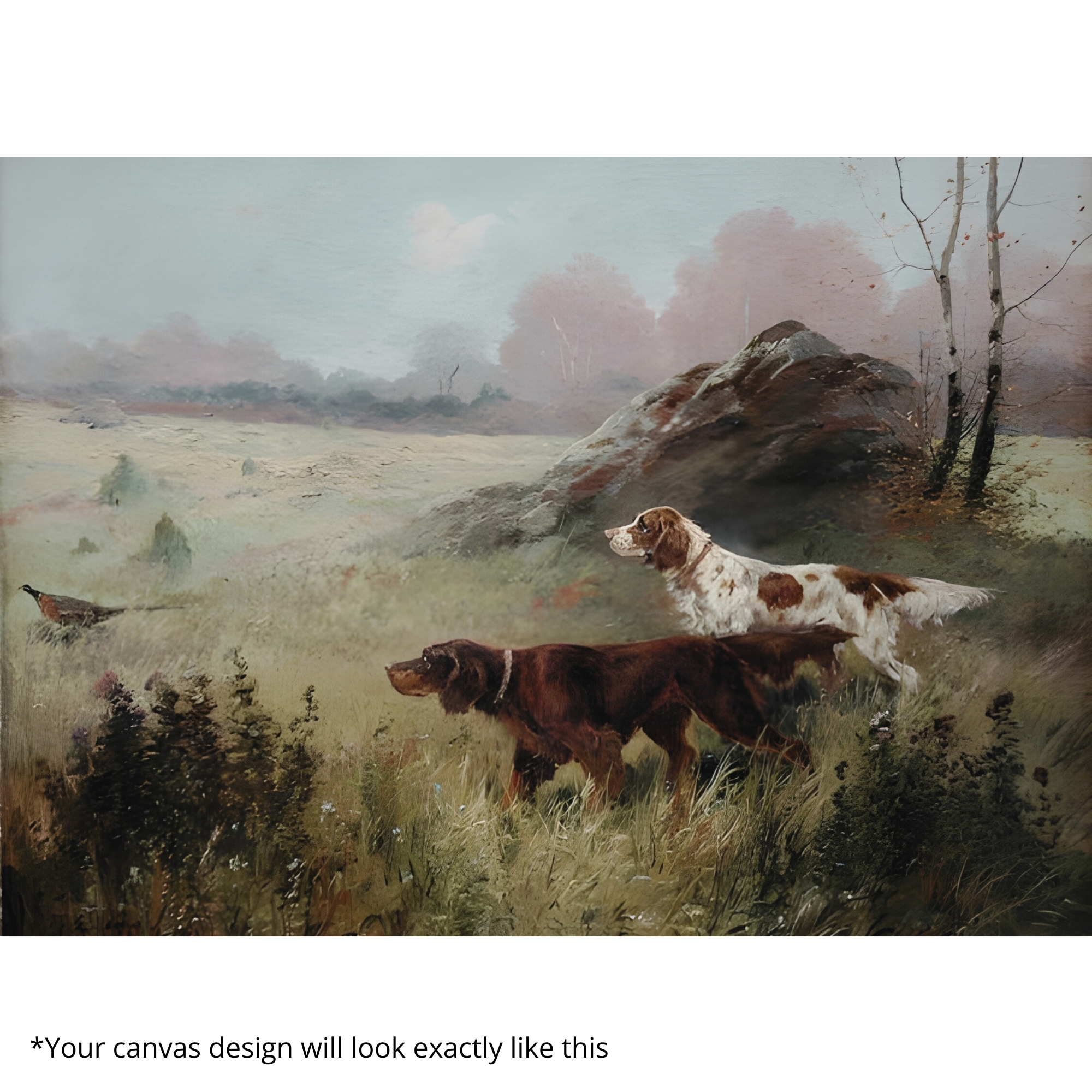“Cyber Huntscape” Canvas Print merges wilderness with futuristic abstraction, depicting two hunting dogs alert in a misty field. Their stance of precision and instinct is overlaid with surreal atmosphere, suggesting both tradition and modernity. The canvas captures loyalty, discipline, and a timeless human-nature connection in a style that feels classic yet visionary.