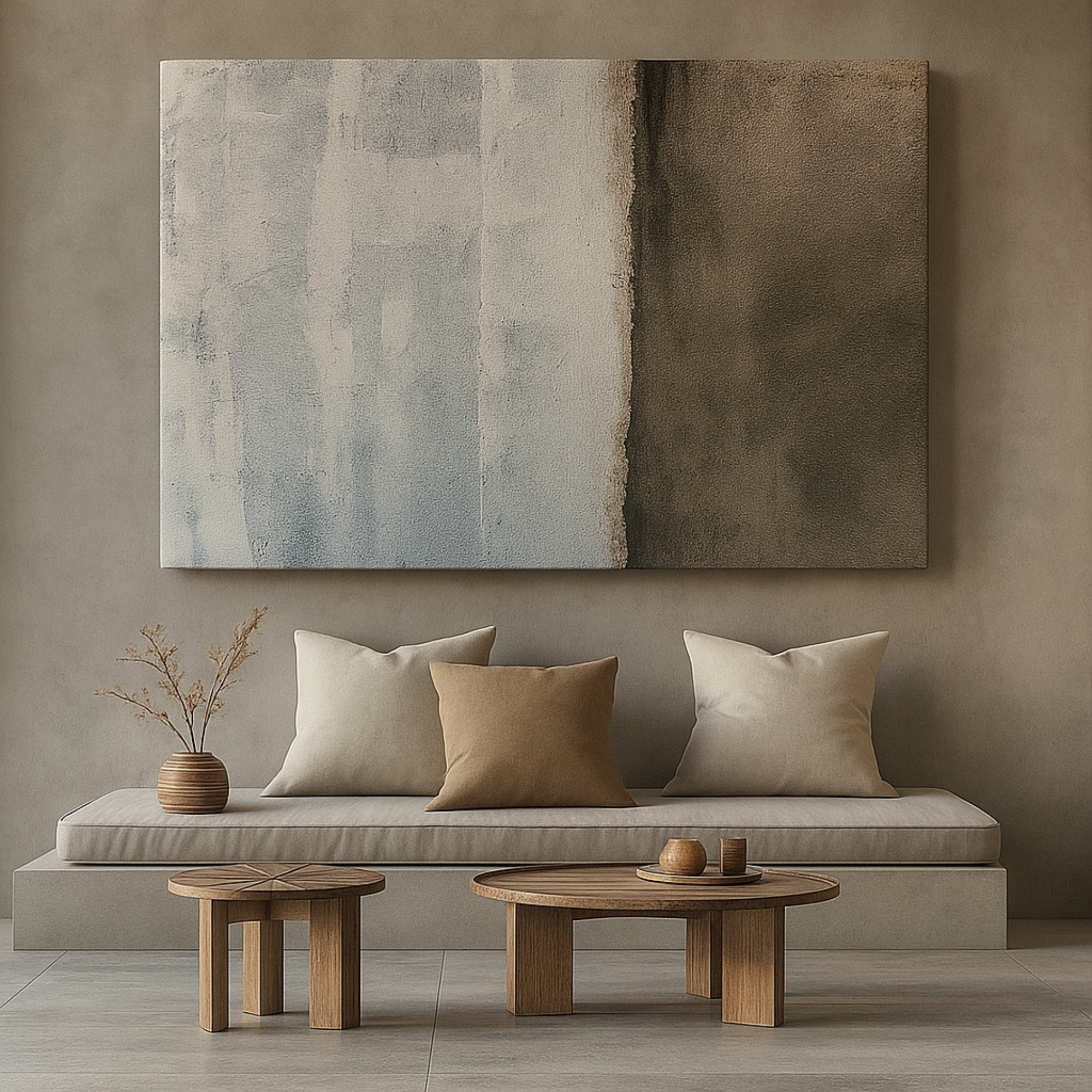 The Earthbound Fade canvas print blends calming neutral tones with soft transitional textures, creating a peaceful and modern décor accent. This canvas enriches contemporary Indian interiors with subtle gradients, minimalist charm, and an earthy visual balance. Perfect for bedrooms, living rooms, and serene workspaces, the artwork adds quiet sophistication and refined simplicity.