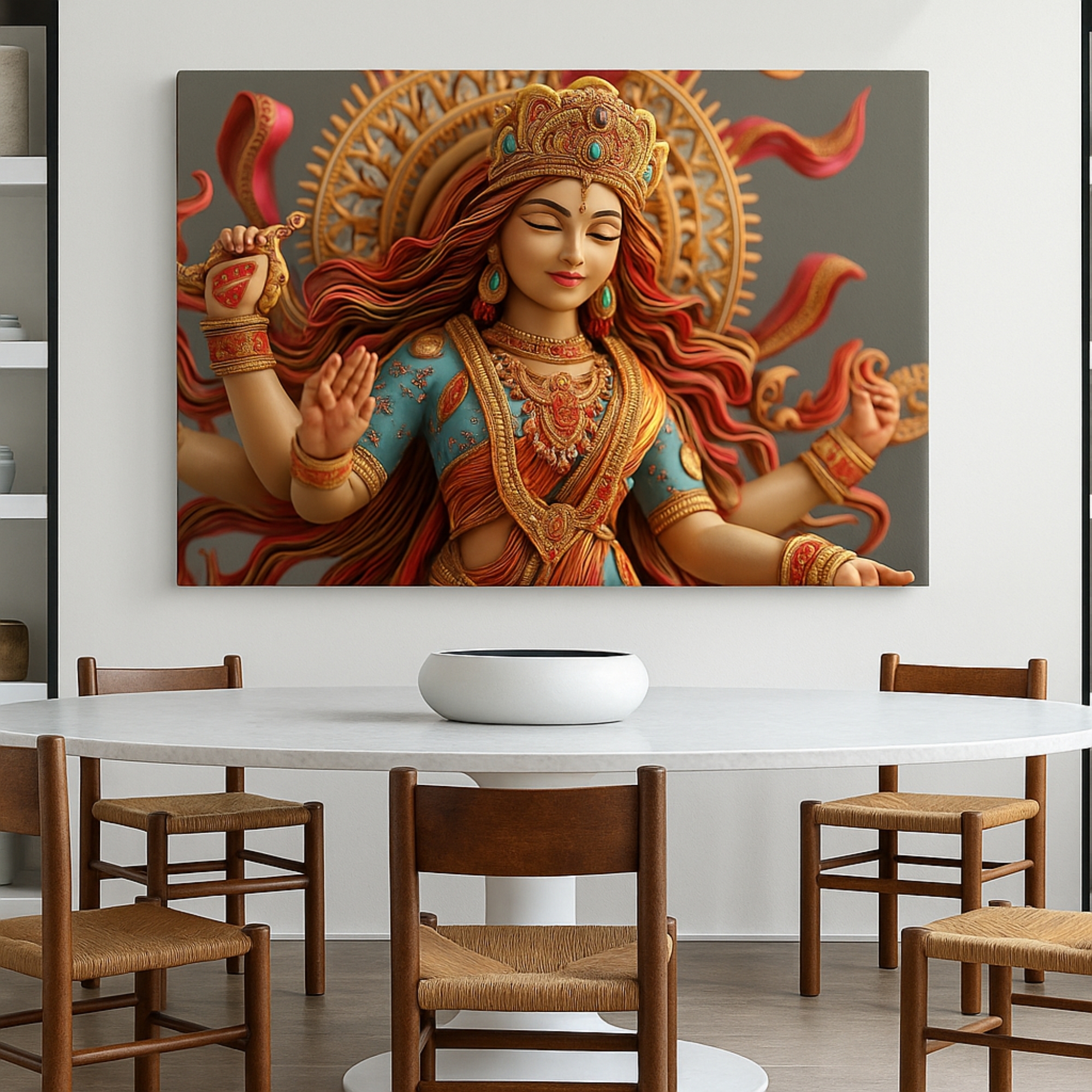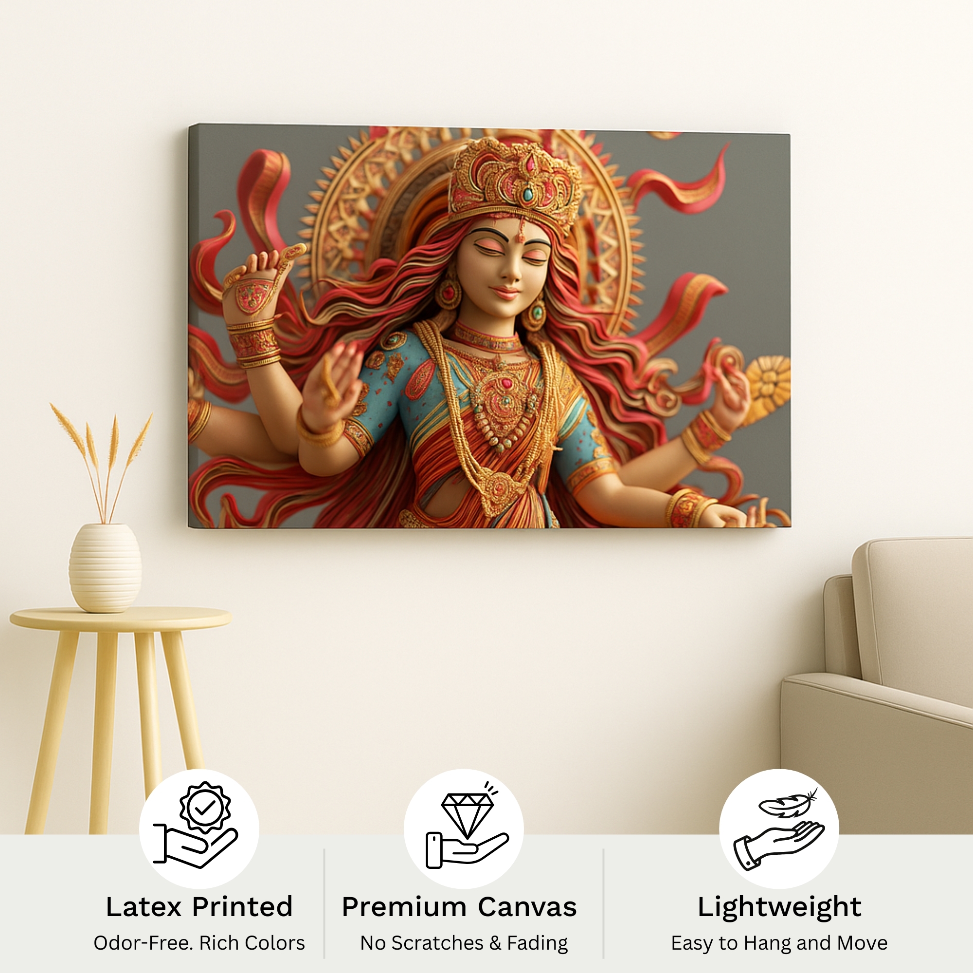 Each canvas print is made in India with artisanal precision, it merges traditional reverence with elegant design, inspiring peace and enlightenment. Each detail embodies cultural grace and refined spirituality.