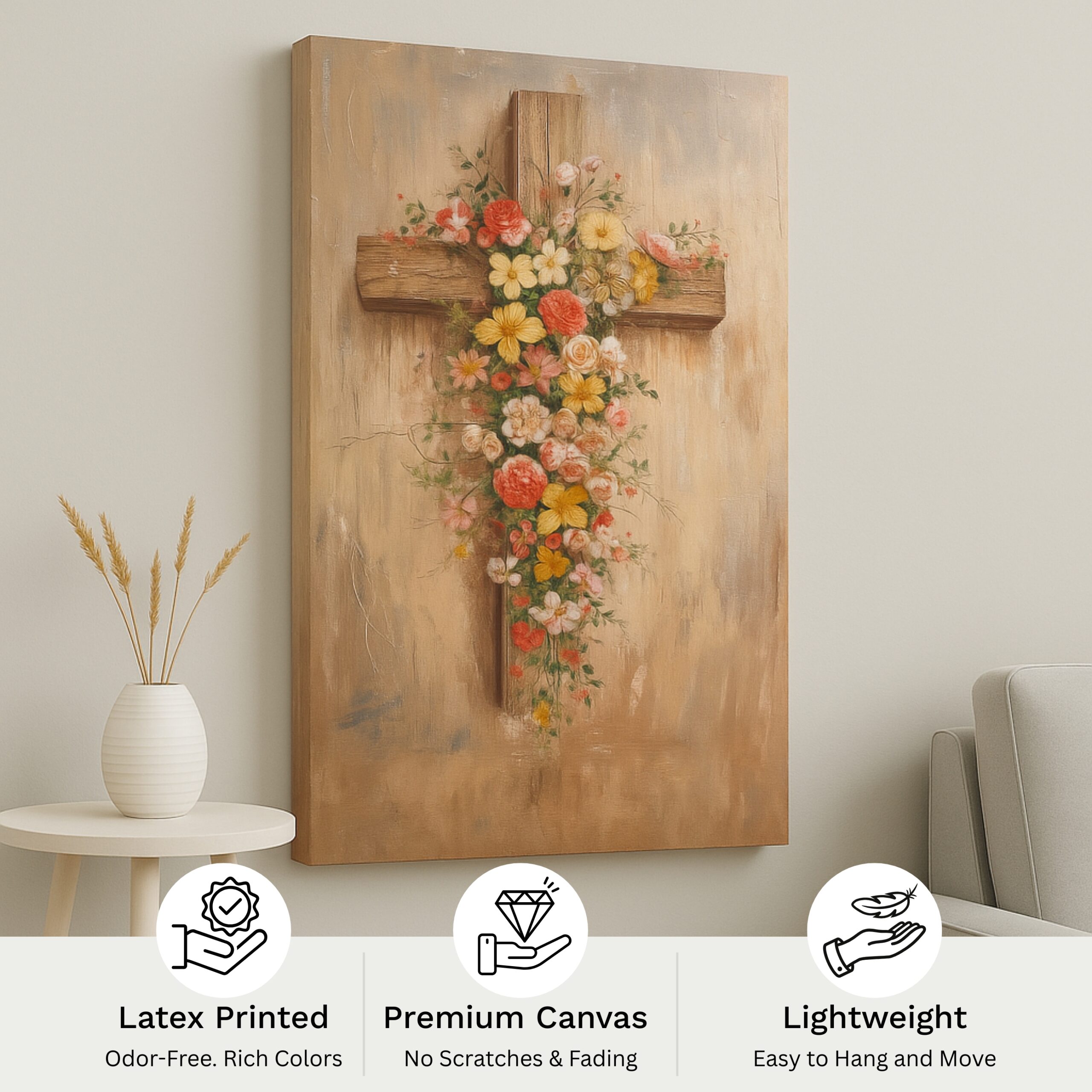 Canvas Print of Floral Benediction – Cross of Faith | Artfy