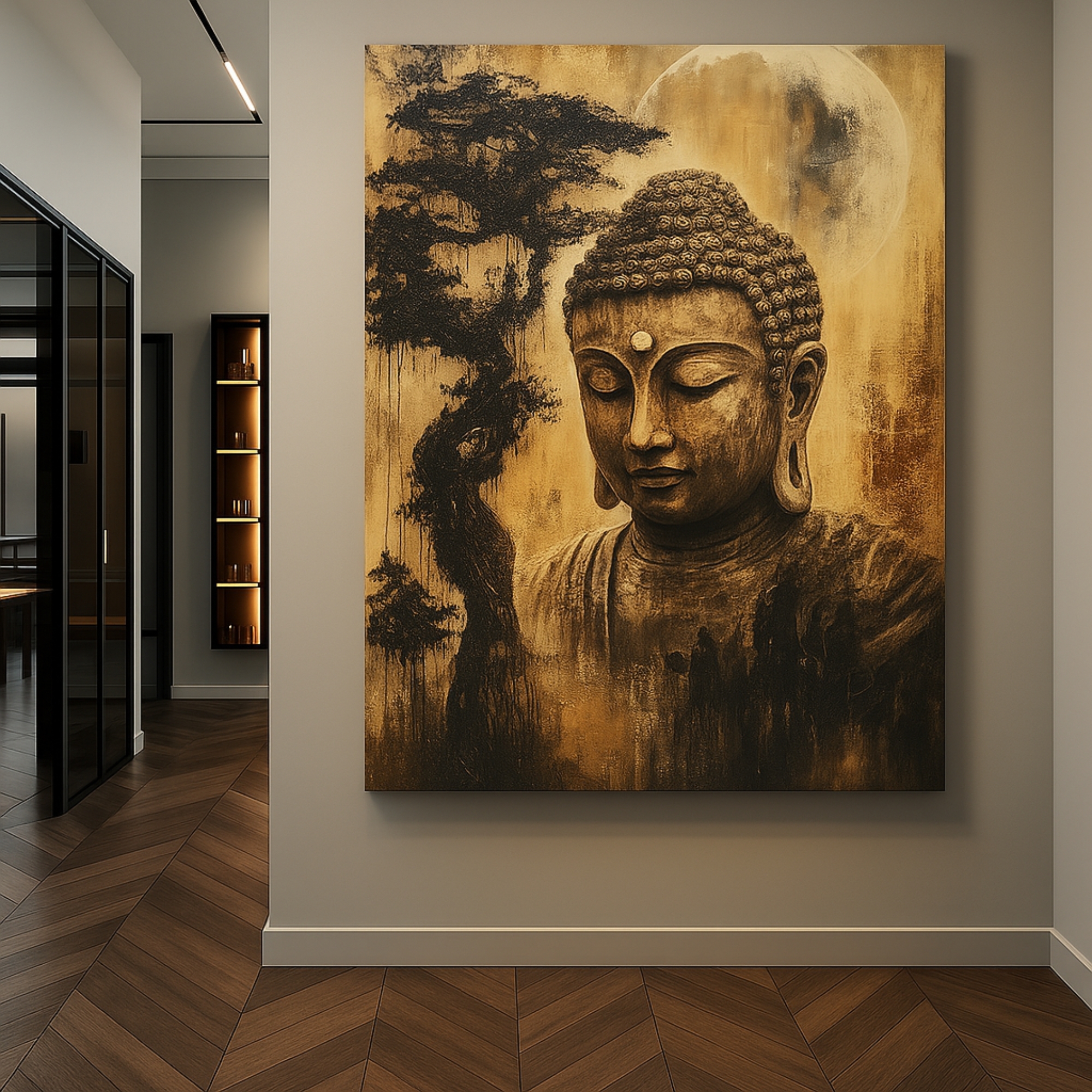 Its earthy-gold palette blends beautifully with both modern and traditional interiors. Place it in a meditation room, living space, or study area to invite serenity and focus. Every detail of this canvas print has been crafted to elevate your walls with spiritual depth and timeless beauty.