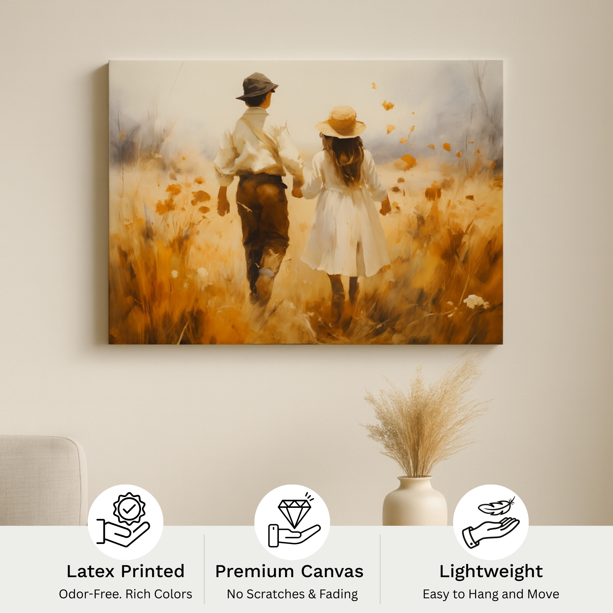 This Canvas Print presents a warm, harmonious scene where gentle golden tones flow into a calm and introspective composition. The Canvas Print expresses peace, balance, and emotional warmth, making it a soothing addition to bedrooms, meditation spaces, and modern living areas. Subtle textures and soft tonal transitions create visual depth while preserving a clean, minimal aesthetic.