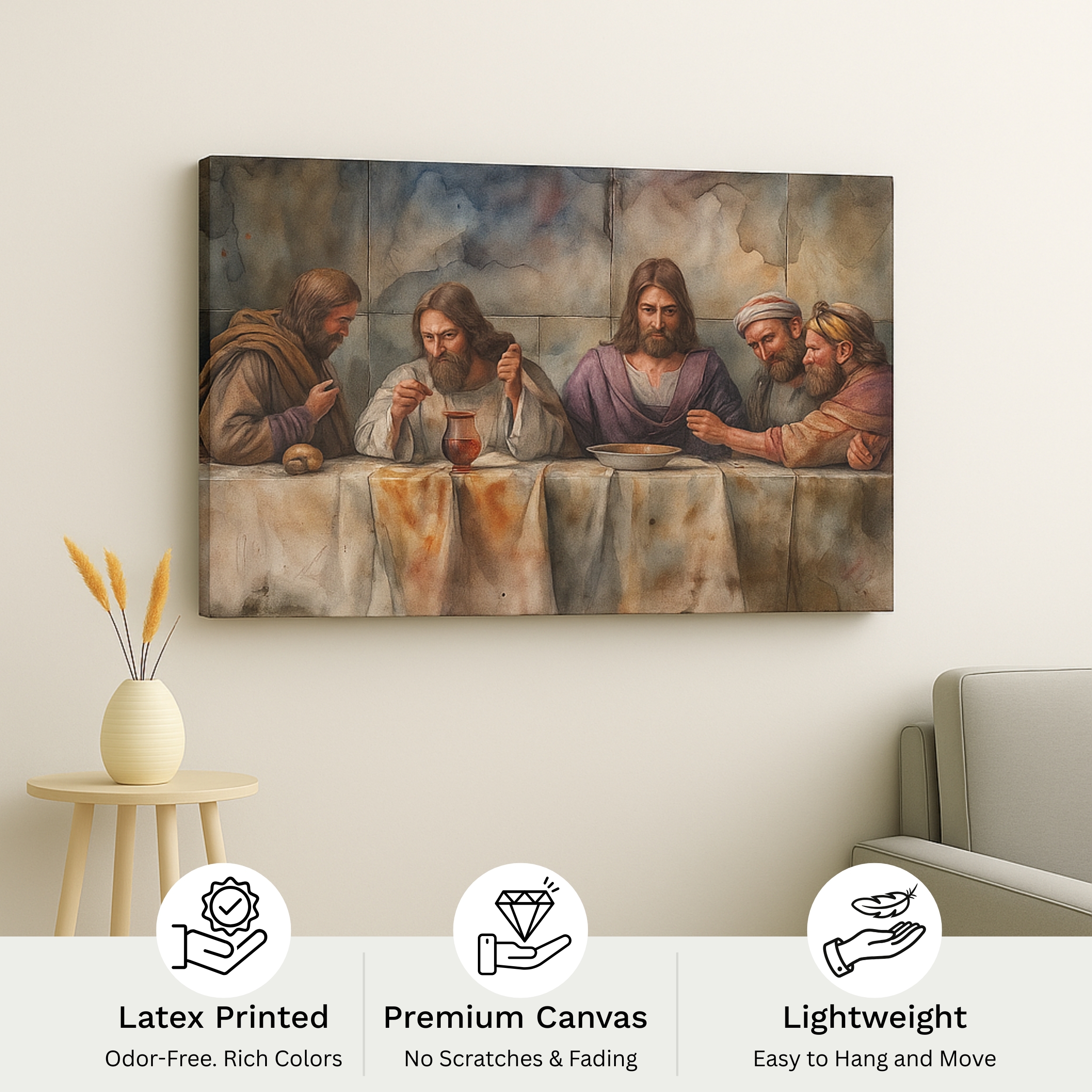 Perfect for homes, church spaces, or collectors, this canvas print honors faith through masterful art. Each Last Supper Sync canvas is crafted in India with precision.