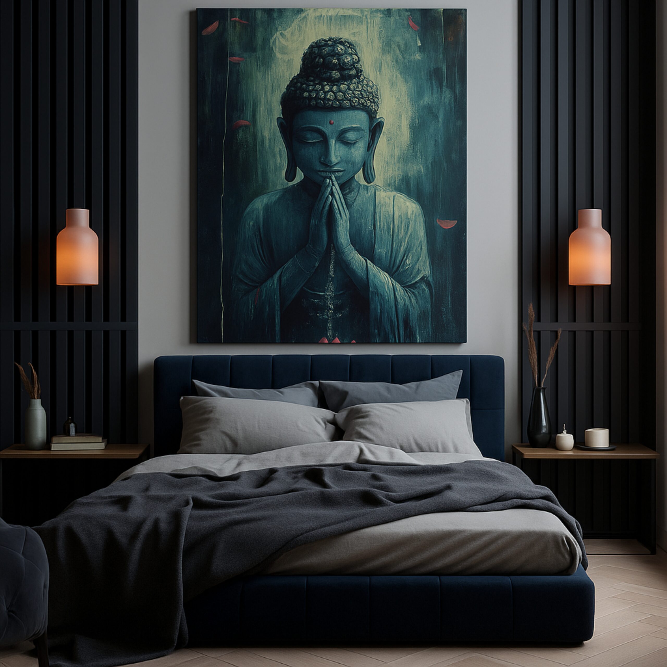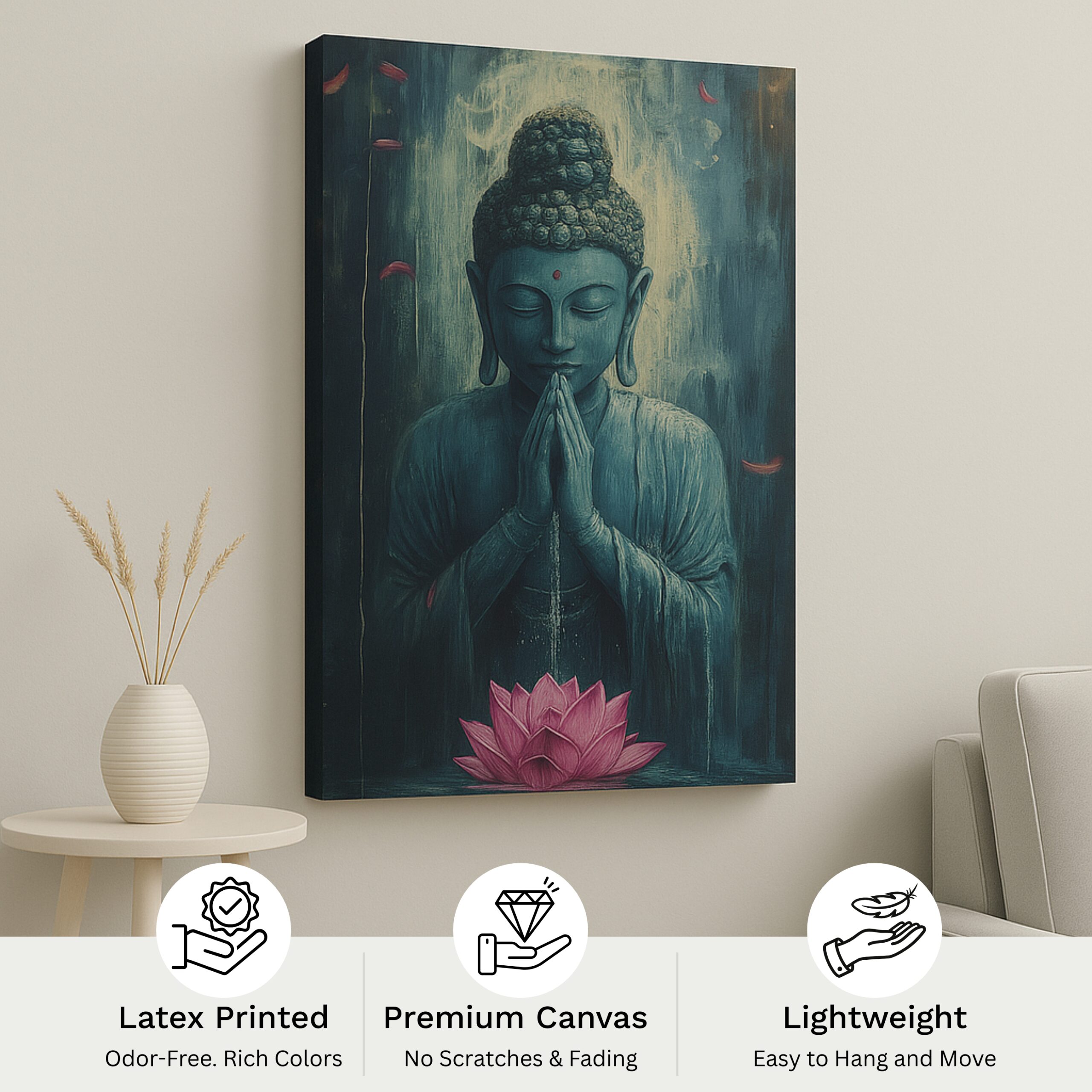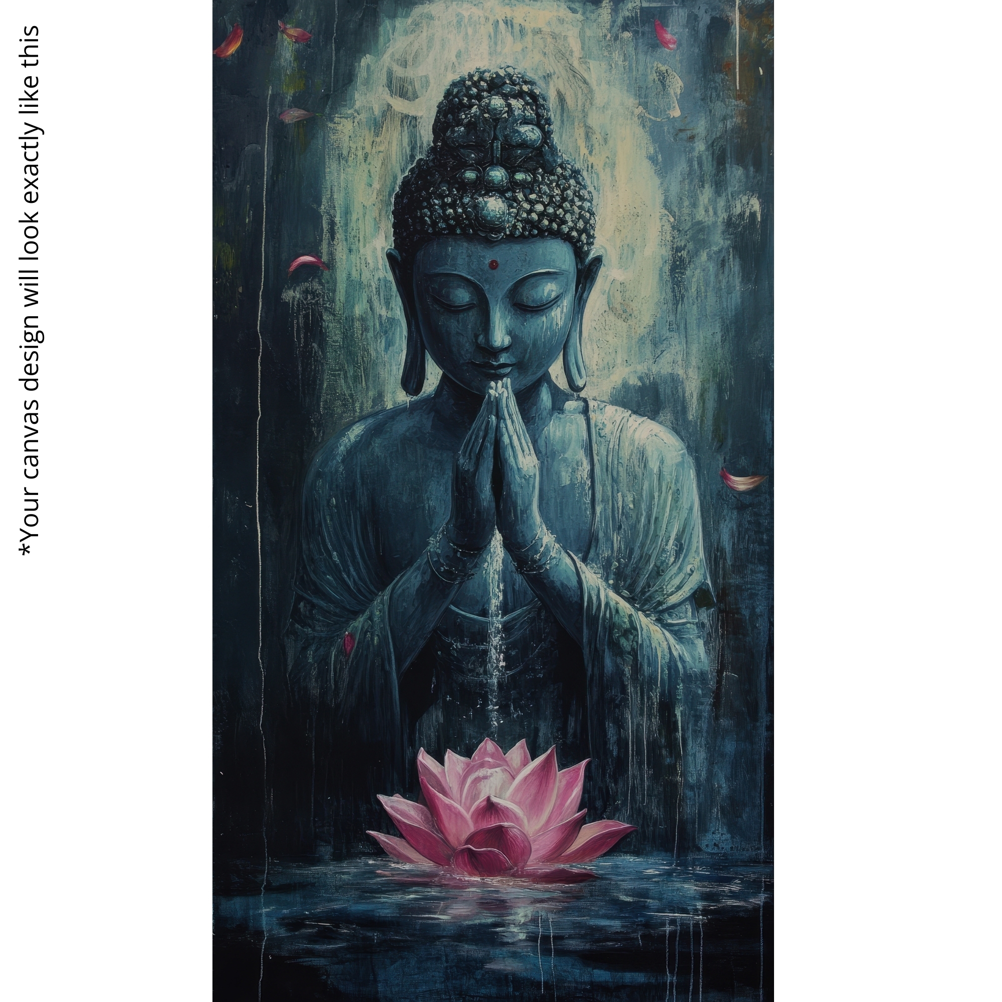 Bring calm, mindfulness, and balance into your space with the Lotus Serenity Buddha Canvas Print. This artwork beautifully portrays Buddha seated amidst blooming lotuses — a timeless symbol of enlightenment and inner peace. The soft pastel hues and tranquil composition make it an ideal addition to modern Indian homes, meditation rooms, or serene living spaces.