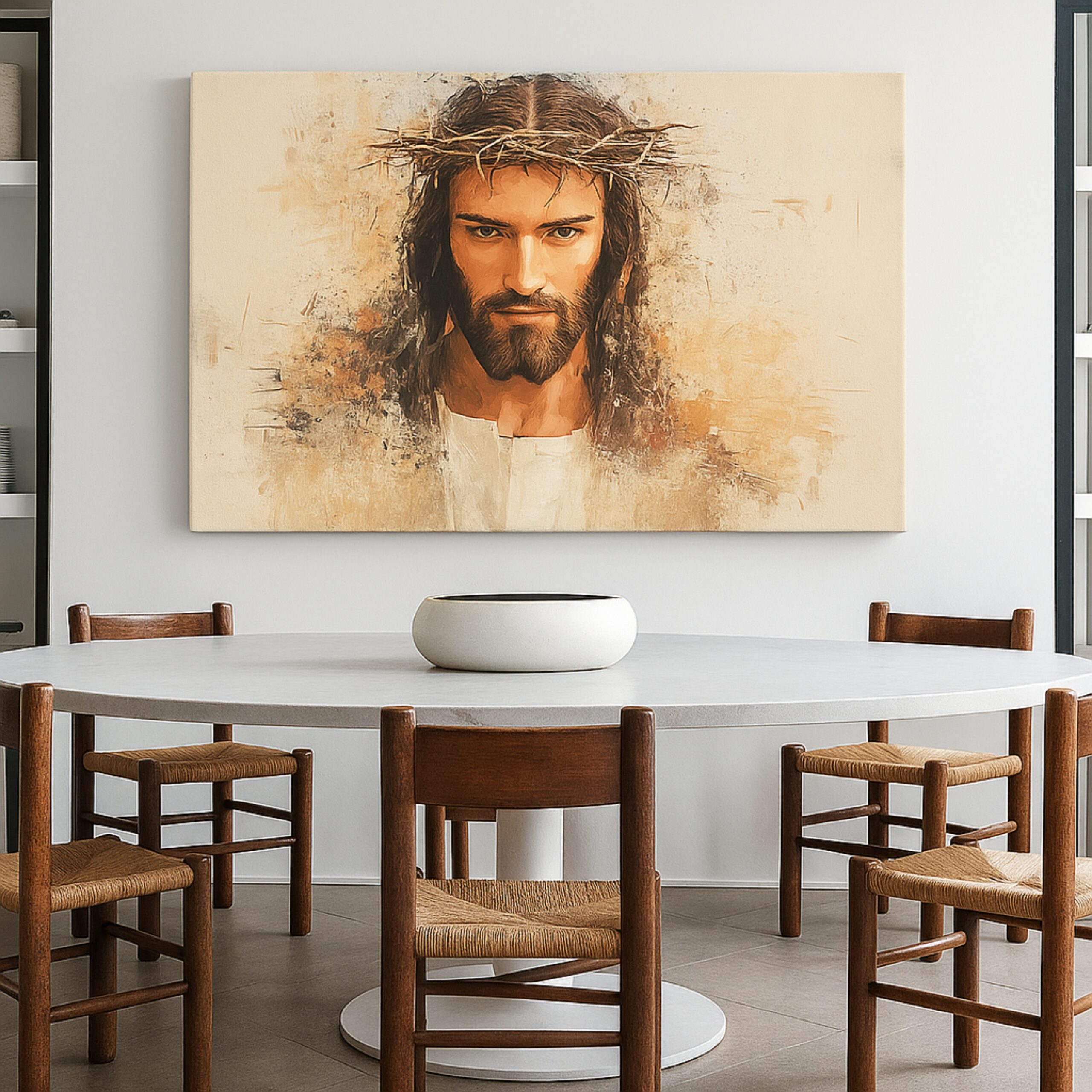 The Messiah Protocol Canvas Print reveals Christ crowned with thorns, portrayed through abstract light and depth. This canvas expresses sacrifice, hope, and spiritual awakening. Subtle texture and shadow create a sense of motion between faith and emotion. Crafted on premium stretched canvas using eco-friendly inks, it preserves every hue and fine detail for years. Smooth edges and a ready-to-hang finish make it effortless to display. This canvas print turns devotion into art, reflecting courage and compassion in a contemporary way.