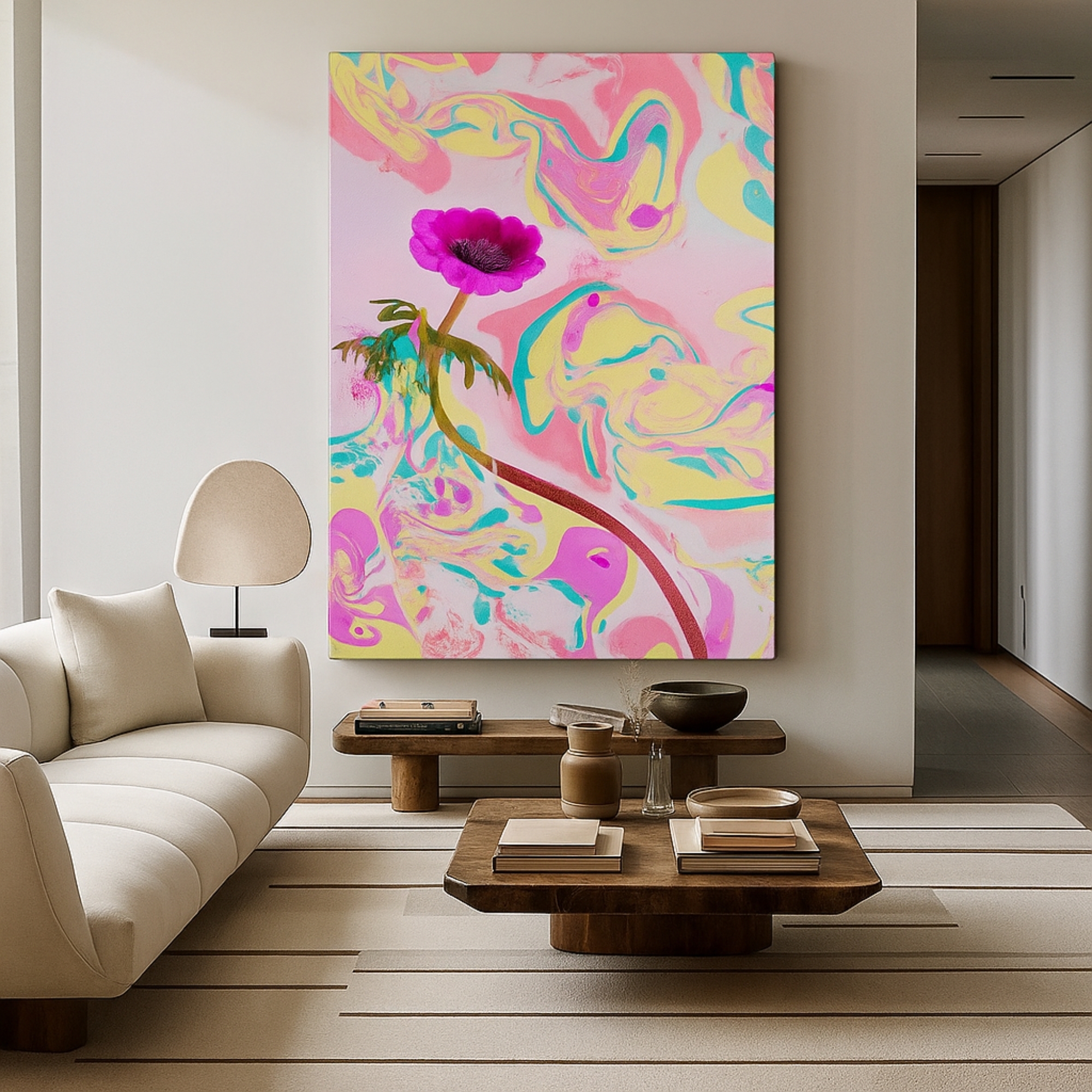 “The Petal Drift Canvas Print blends soft colors, graceful petals, and delicate abstract forms to create a dreamy floral artwork for refined interiors. Perfect for bedrooms, lounges, boutiques, and minimalist Indian décor, this canvas print adds calmness, femininity, and luxury to any wall. Its floating botanical shapes provide a serene contemporary vibe.
