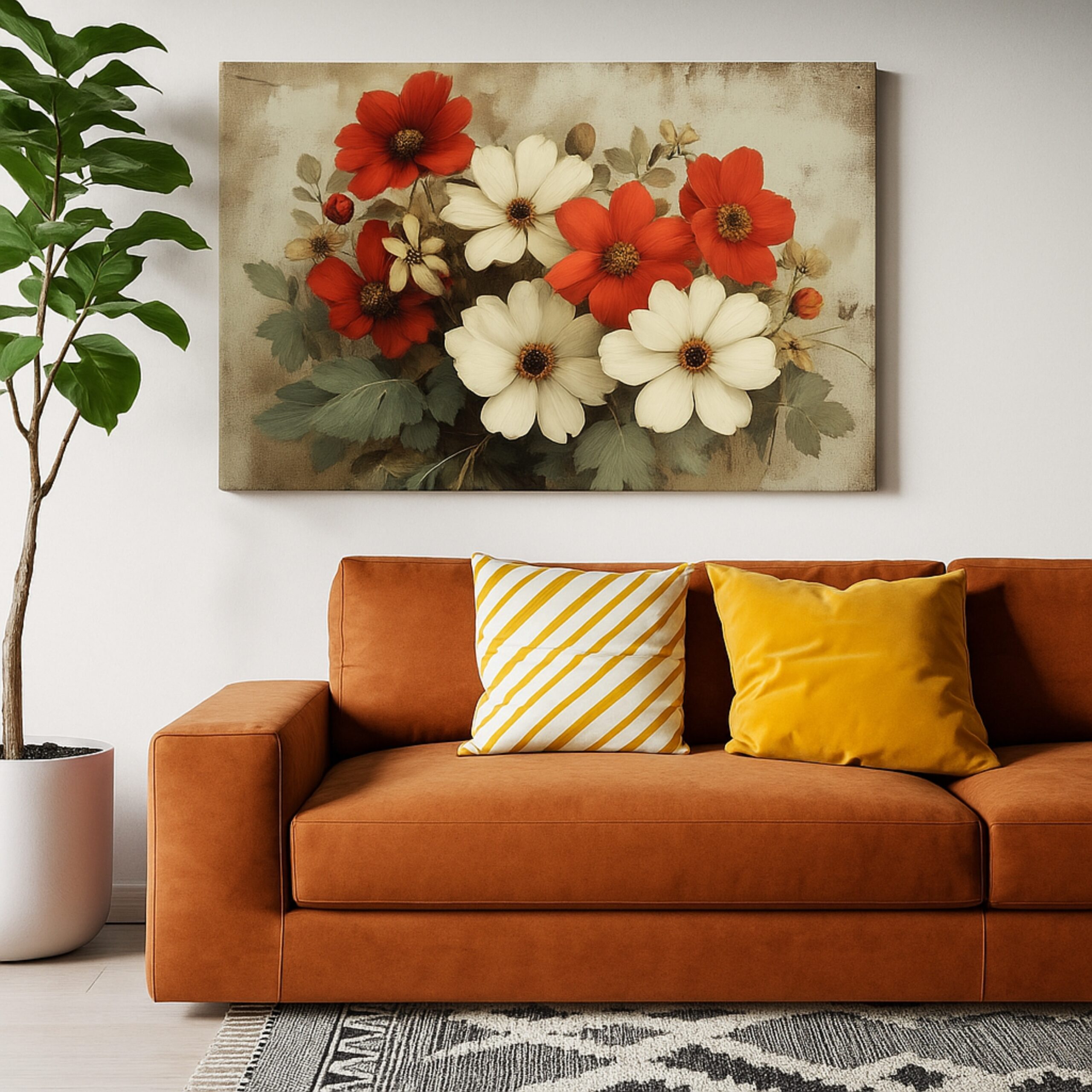 Canvas Print of “Petal Reverie” Canvas Print celebrates the delicate poetry of blossoms unfolding in full bloom. Shades of crimson, cream, and soft pink echo the grace of fleeting seasons and the timeless charm of romance. This floral canvas artwork invites warmth and elegance into living spaces, making it a centerpiece for homes where beauty and feeling intertwine.