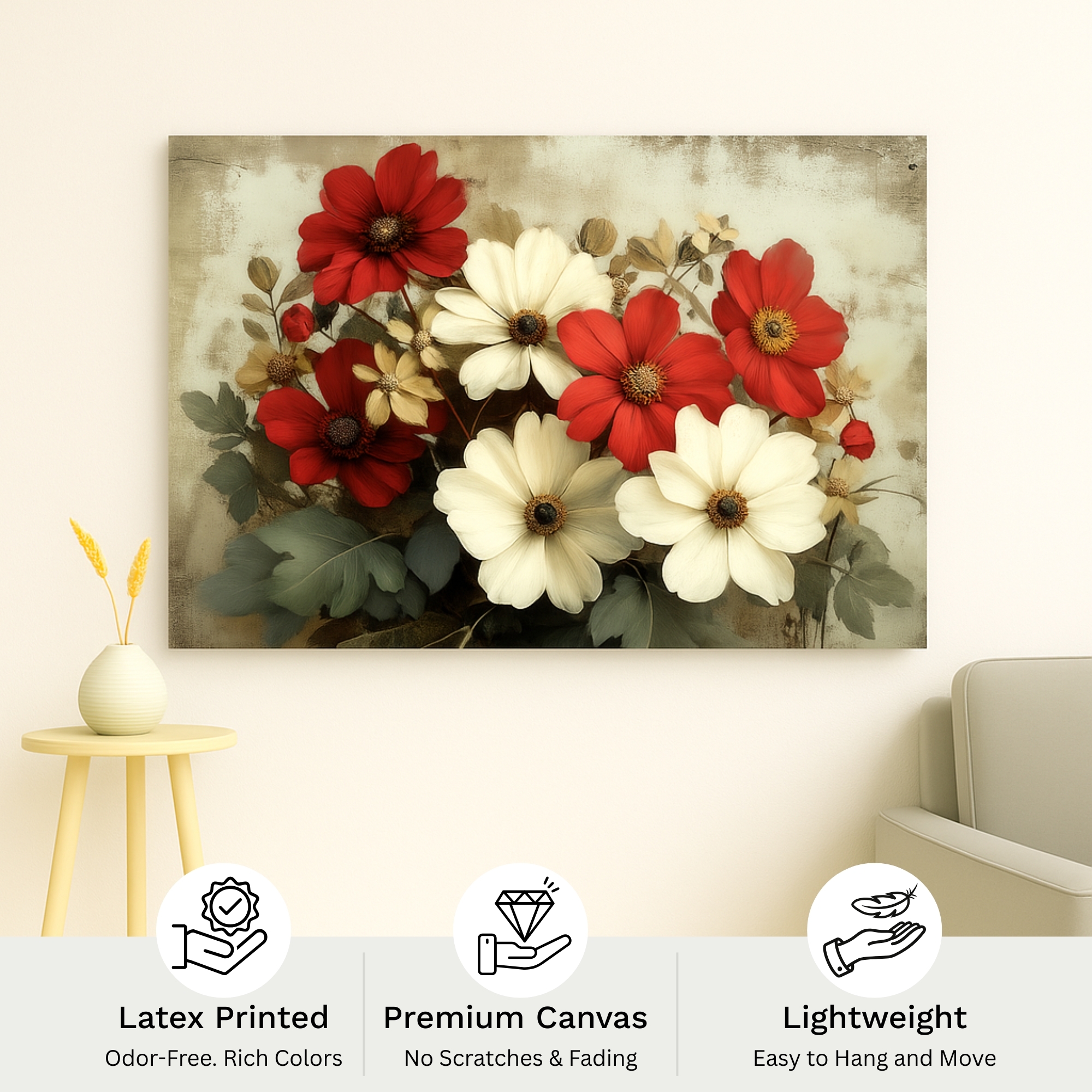 Perfect for bedrooms, lounges, or as a heartfelt gift, this canvas wall art uplifts walls with timeless floral vibrancy. Crafted in India with artisanal care and eco-friendly practices, it is designed for lasting durability and enduring emotion.