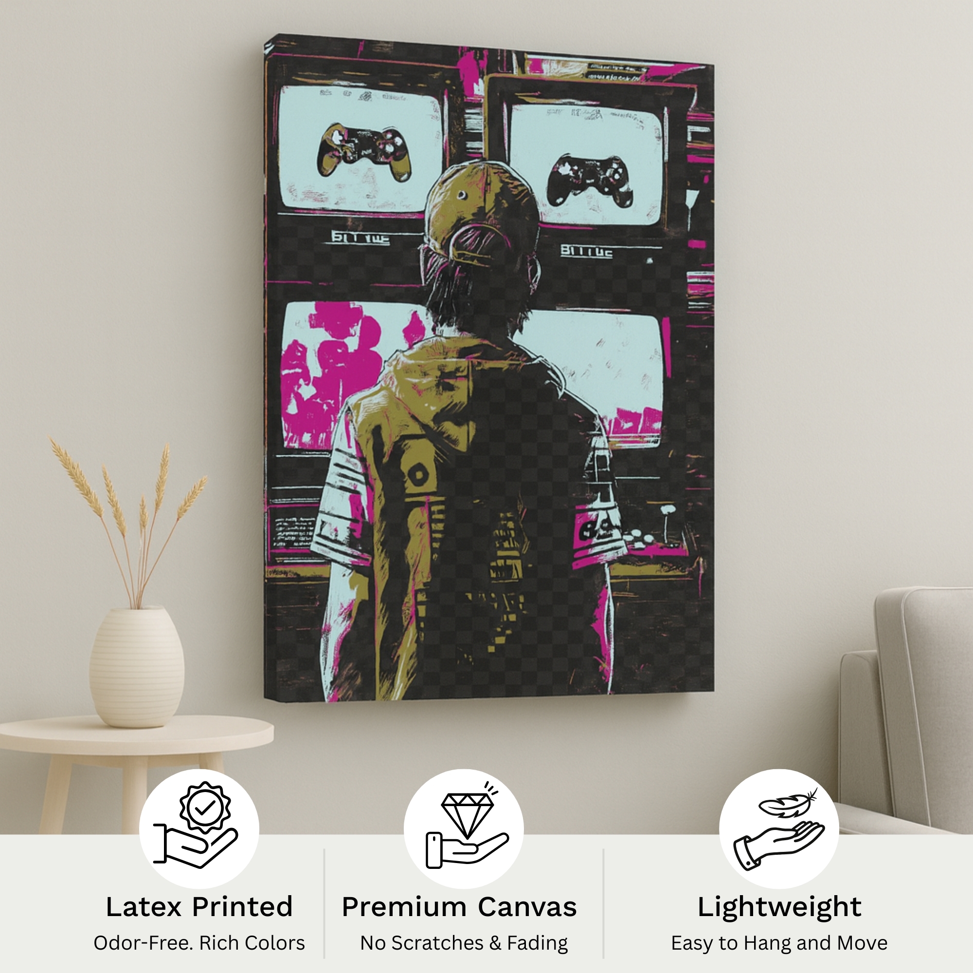Perfect for bedrooms, lounges, and entertainment setups, the Pixel Arcade Dreams Canvas Print uplifts spaces with individuality, creativity, and gaming passion.
