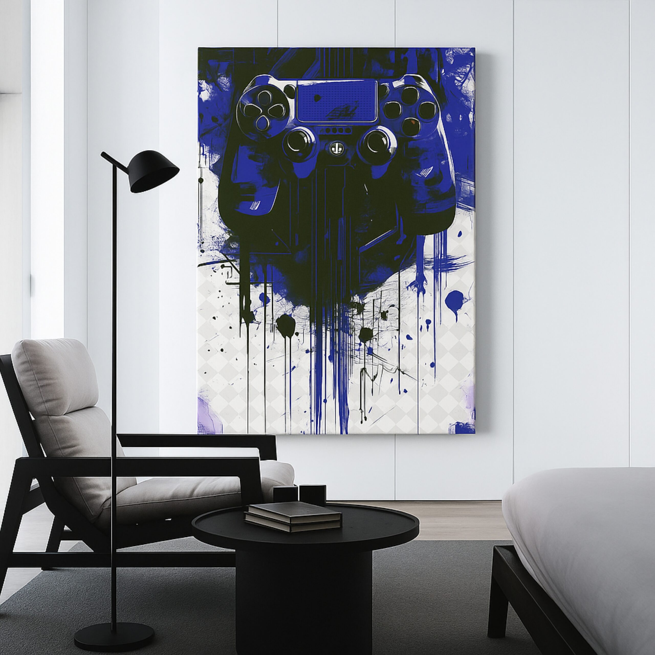 The Pixel Play Canvas Print celebrates the joy and nostalgia of gaming through a bold, modern design. Featuring an oversized game controller surrounded by abstract splatters, this artwork captures both childhood memories and today’s gaming culture. The fusion of structured form and expressive brushwork symbolizes creativity, energy, and the playful spirit of digital worlds.