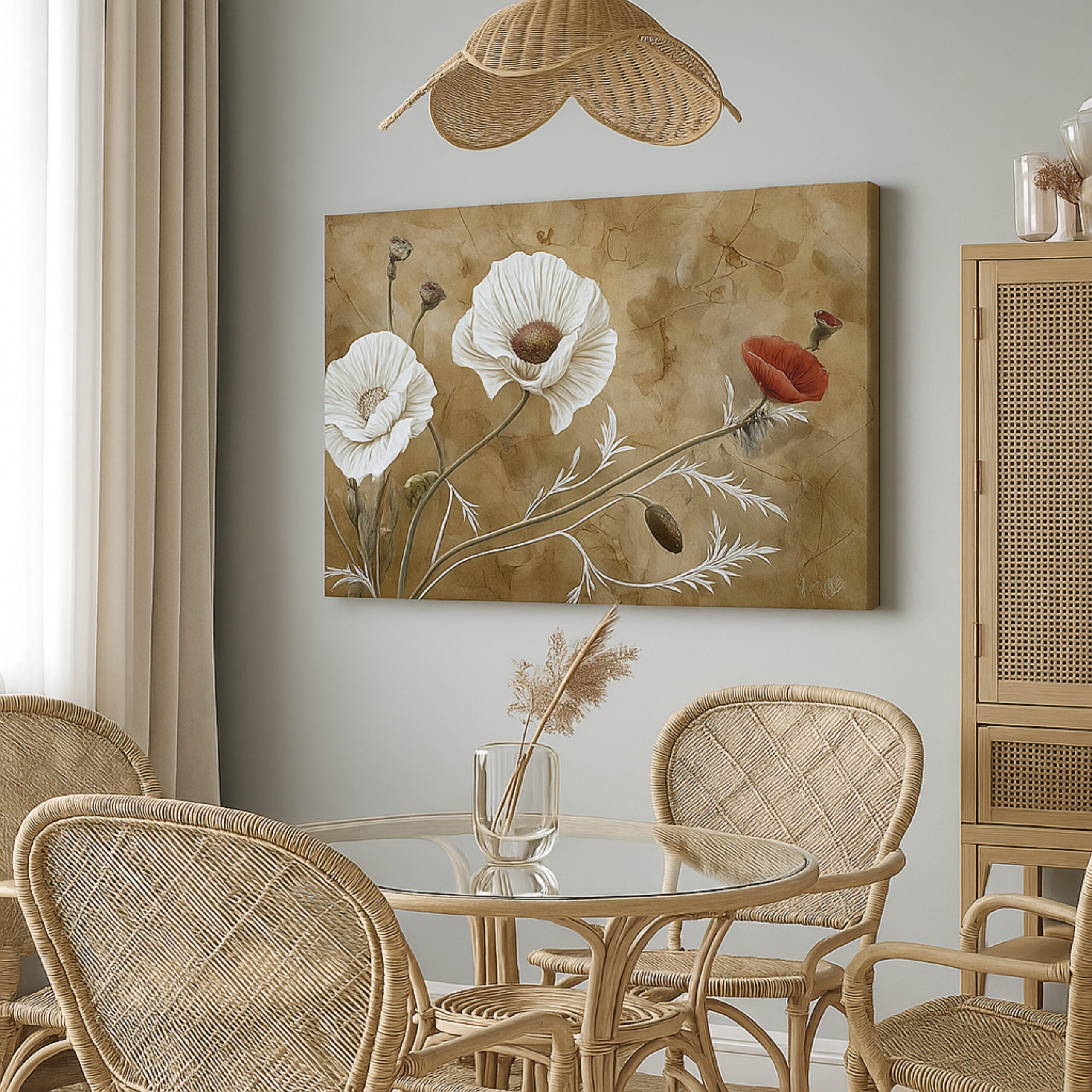 Add this Poppy Reverie to dining spaces, vintage-inspired living rooms, or cozy floral corners. Gift it to décor enthusiasts who admire timeless blossoms and elegant wall art.