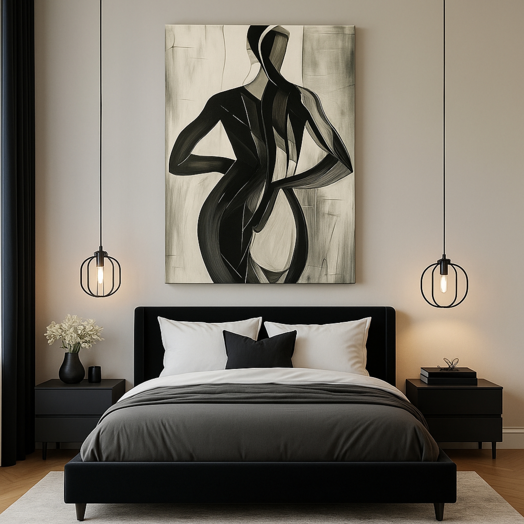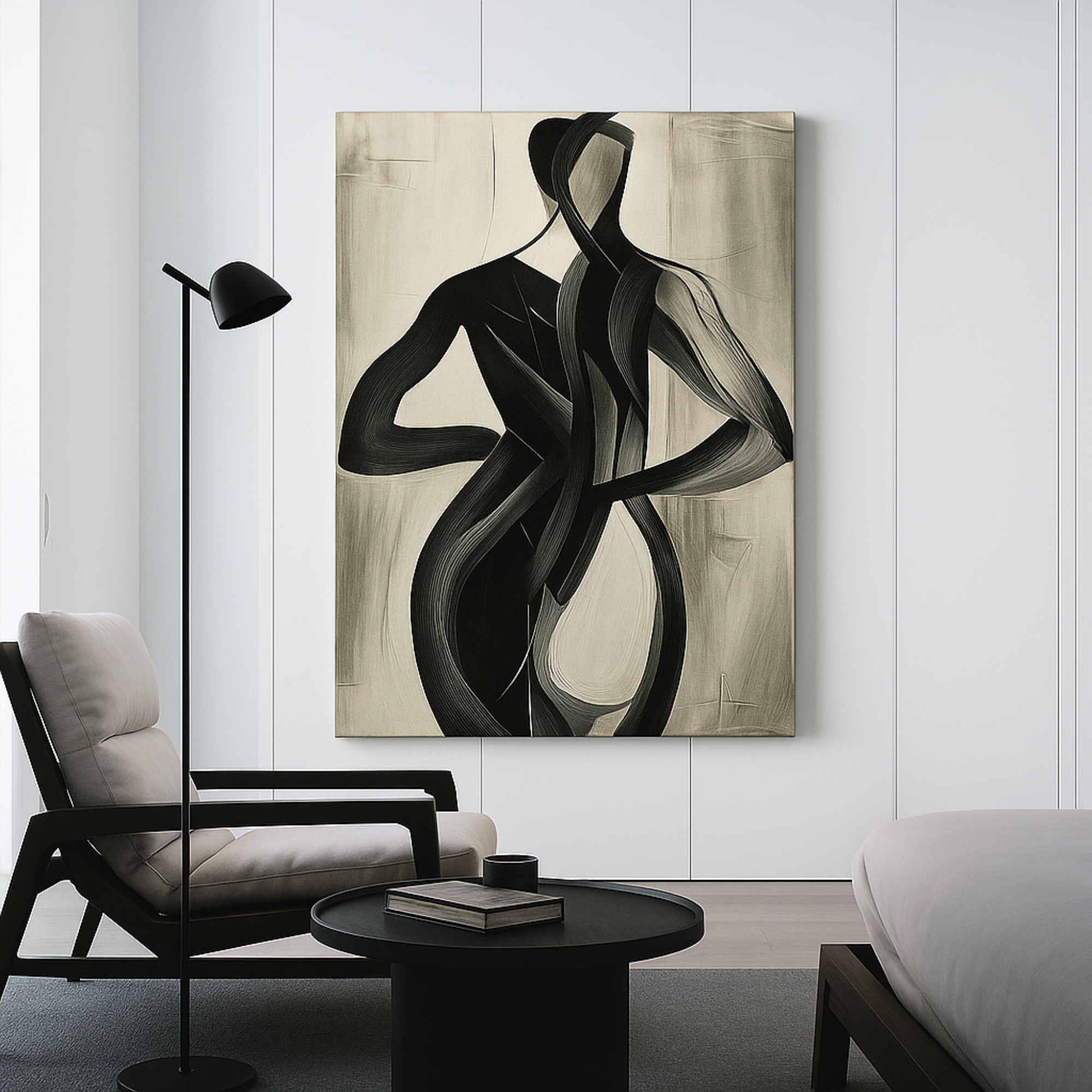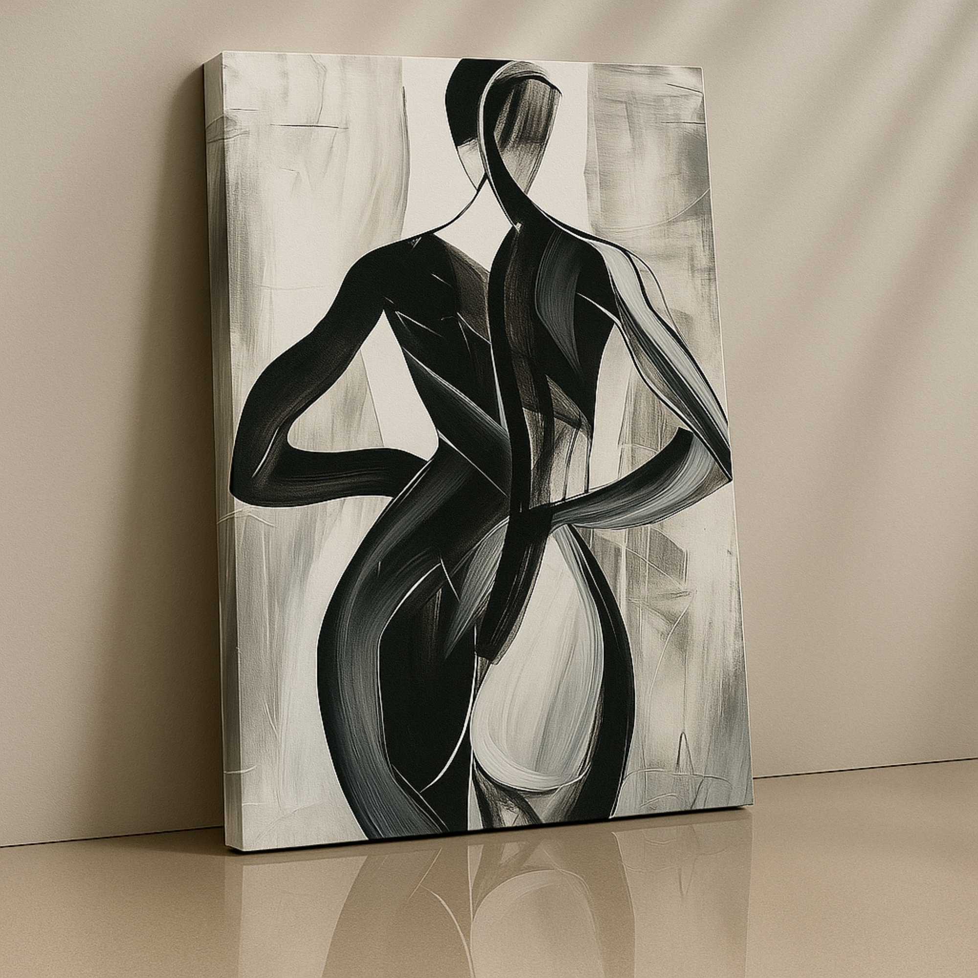 Celebrate strength and elegance with the Abstract Silhouette Minimalistic Art Canvas Print. Bold black strokes form the flowing curves of the human body, capturing raw beauty through expressive minimalism. This striking composition embodies balance and movement, making it a powerful centerpiece for modern interiors.