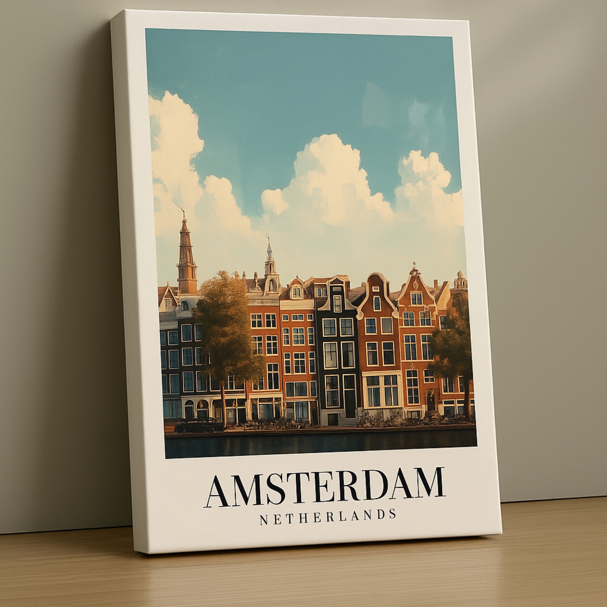 Bring timeless European charm into your home with the Canvas Print of Amsterdam Canal, a serene cityscape featuring classic Dutch gables, bicycles, and reflective waterways. Warm brick tones meet shimmering canals, creating a cozy urban scene that captures the spirit of Amsterdam’s slow-city romance. Perfect for bedrooms, studies, and living rooms, this artwork offers a blend of nostalgia and sophistication that elevates modern interiors.