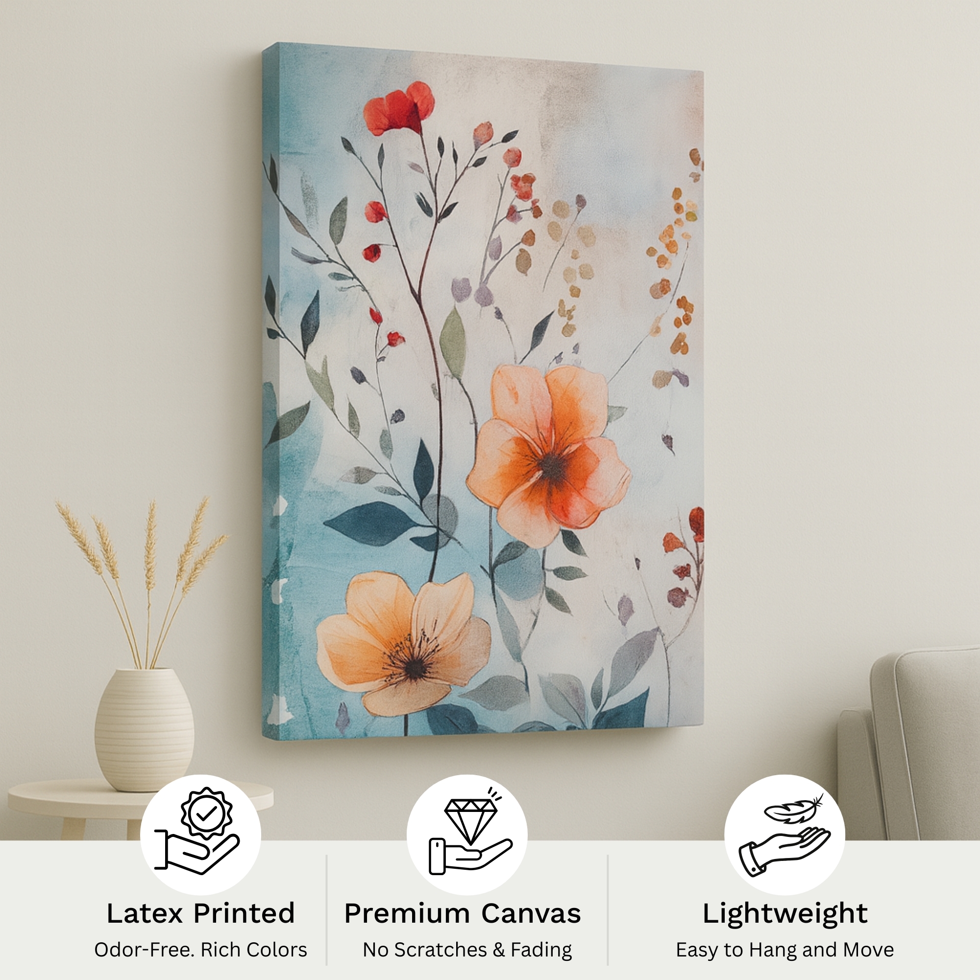 Refresh your décor with the Aquatic Bloom Dance Canvas Print. This artwork blends floral elements with flowing aquatic tones. As a result, it creates a soothing and refreshing visual rhythm. The color transitions add movement and calm energy.