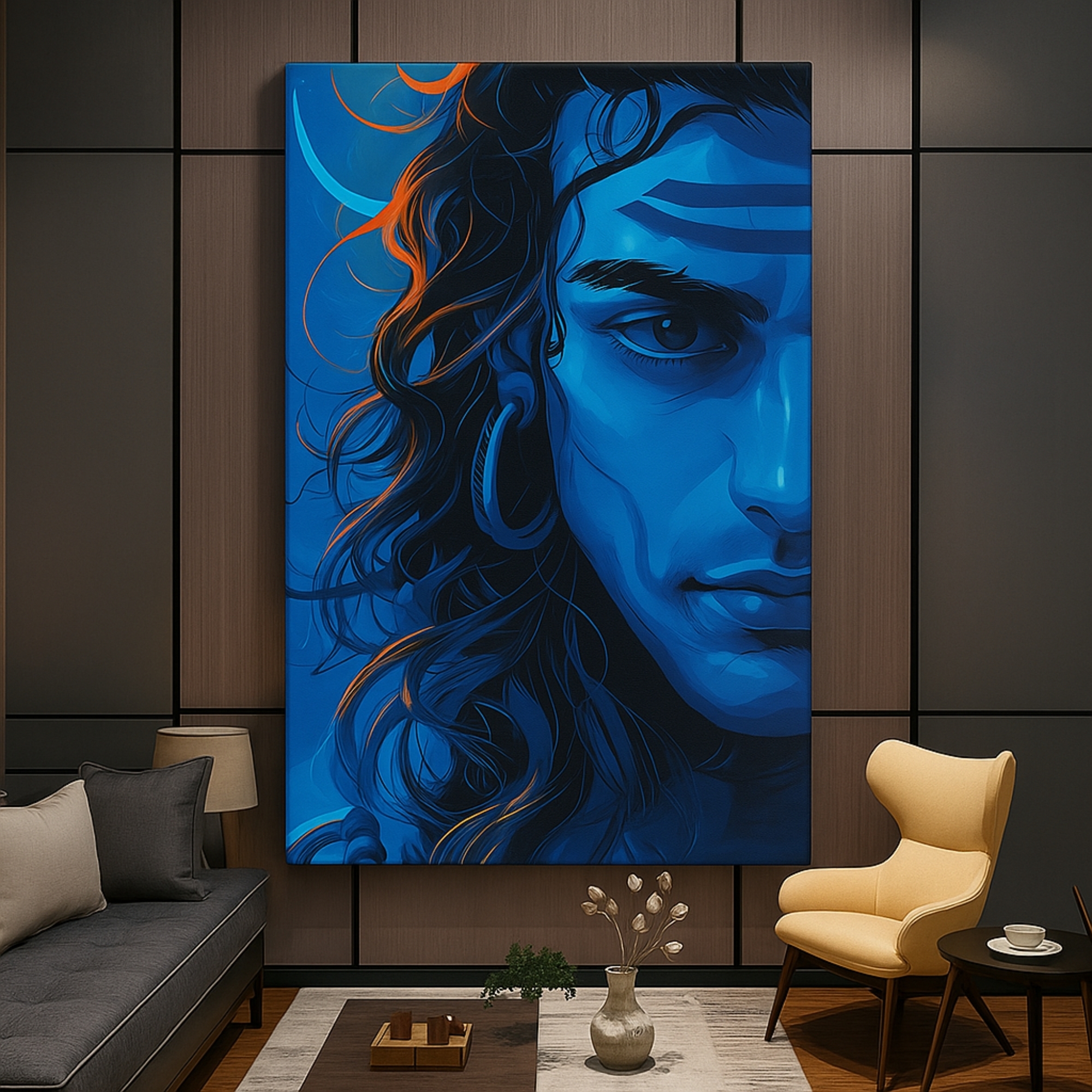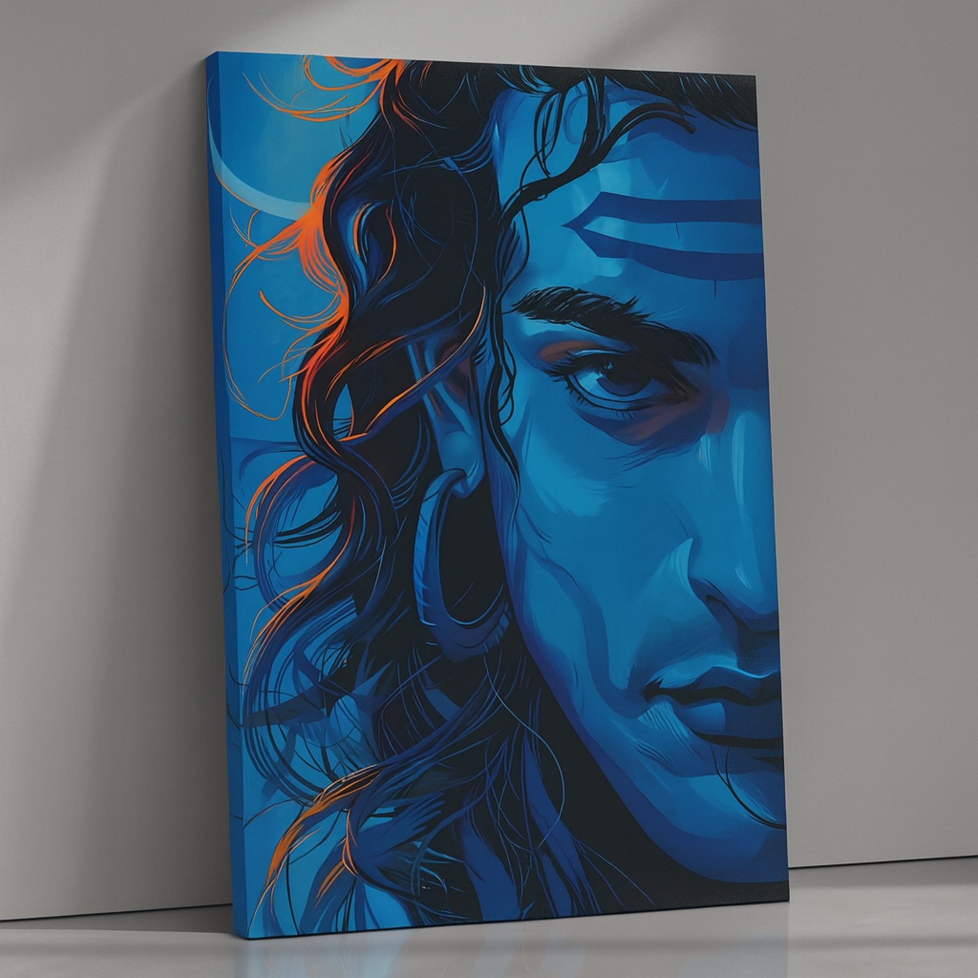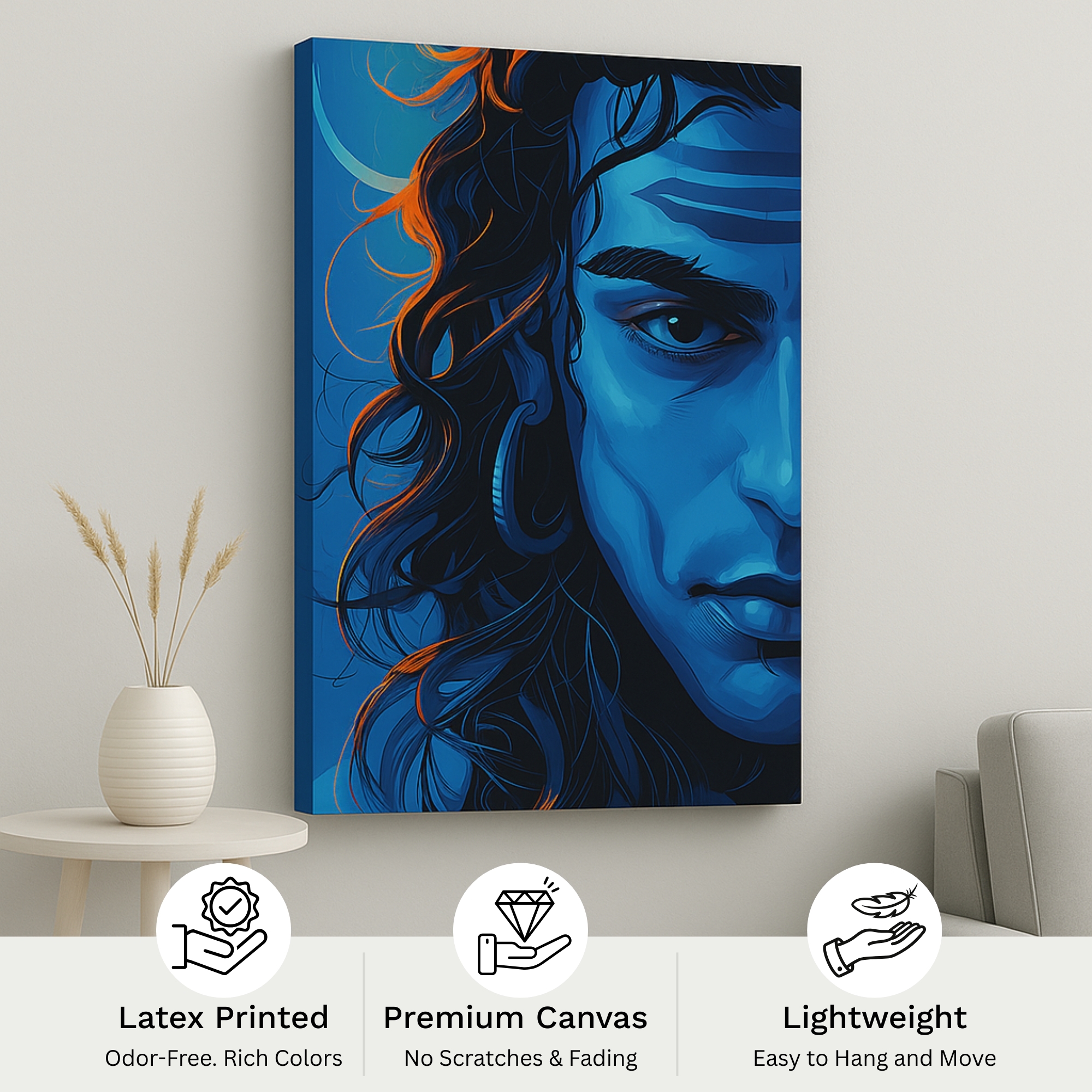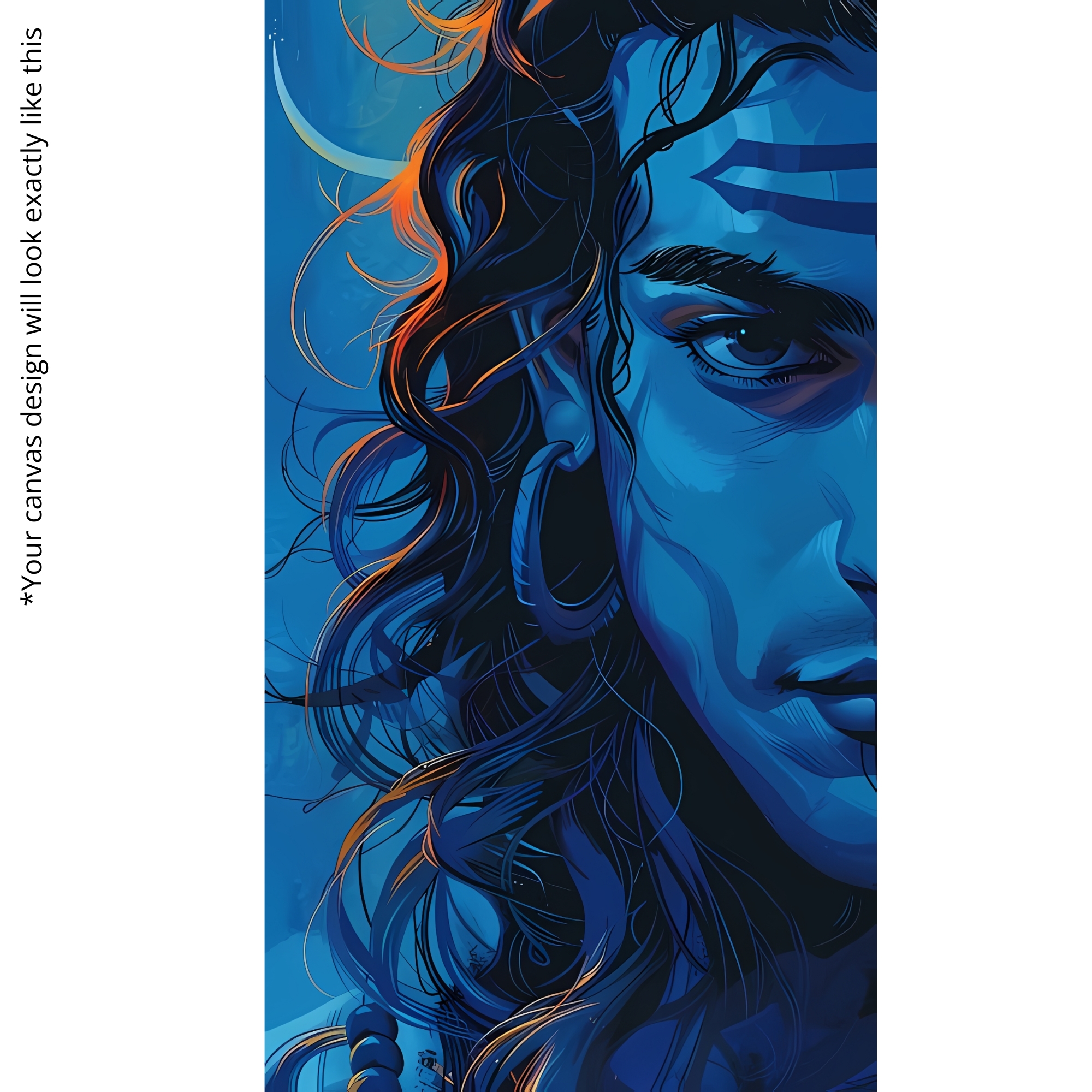 Celestial Gaze Shiva Canvas Print offers a minimalist yet profound portrayal of Lord Shiva in cosmic contemplation. With subtle divine details and serene tones, this artwork symbolizes inner strength, stillness, and divine connection. Its simplicity radiates elegance, making it a versatile choice for puja rooms, meditation halls, or modern spiritual homes.