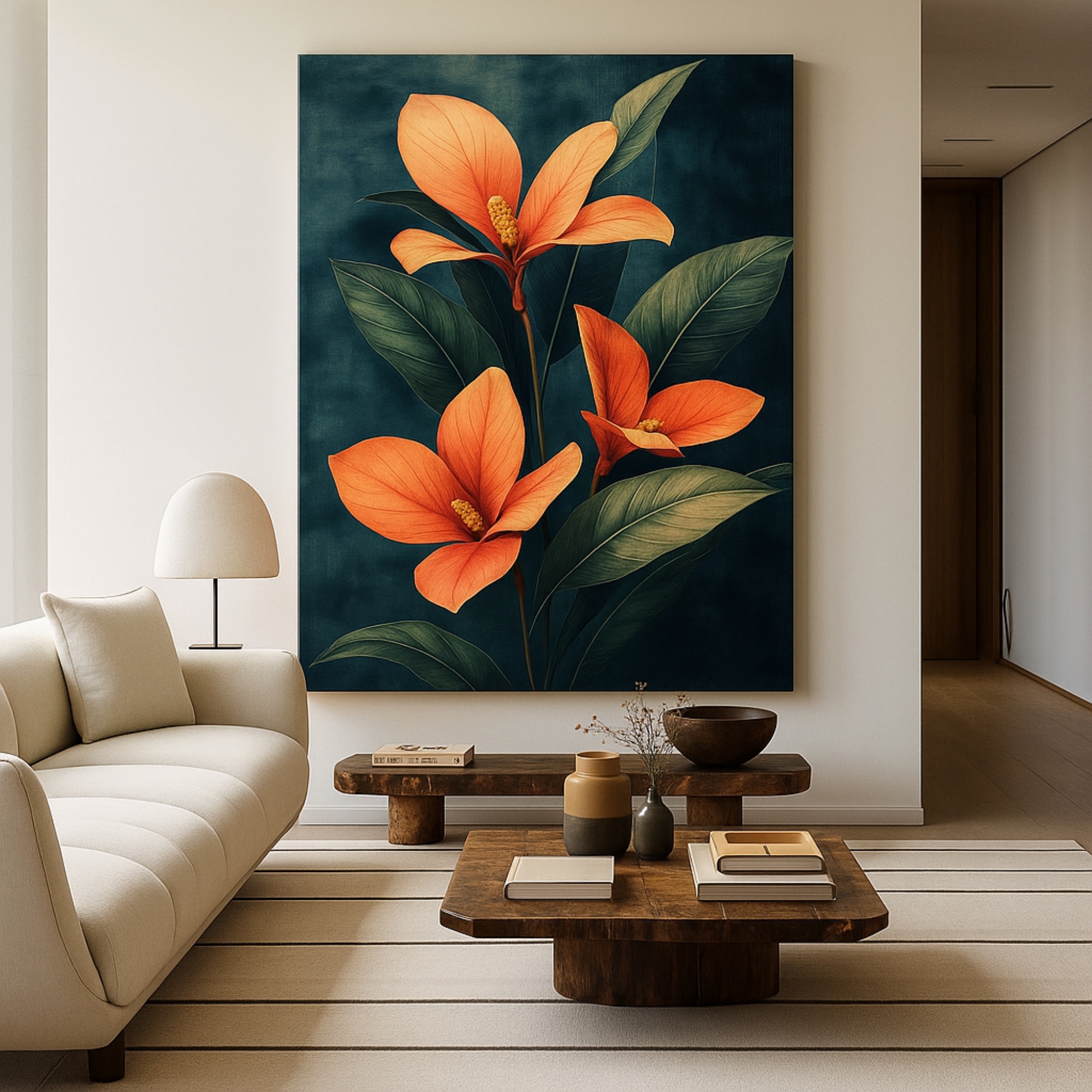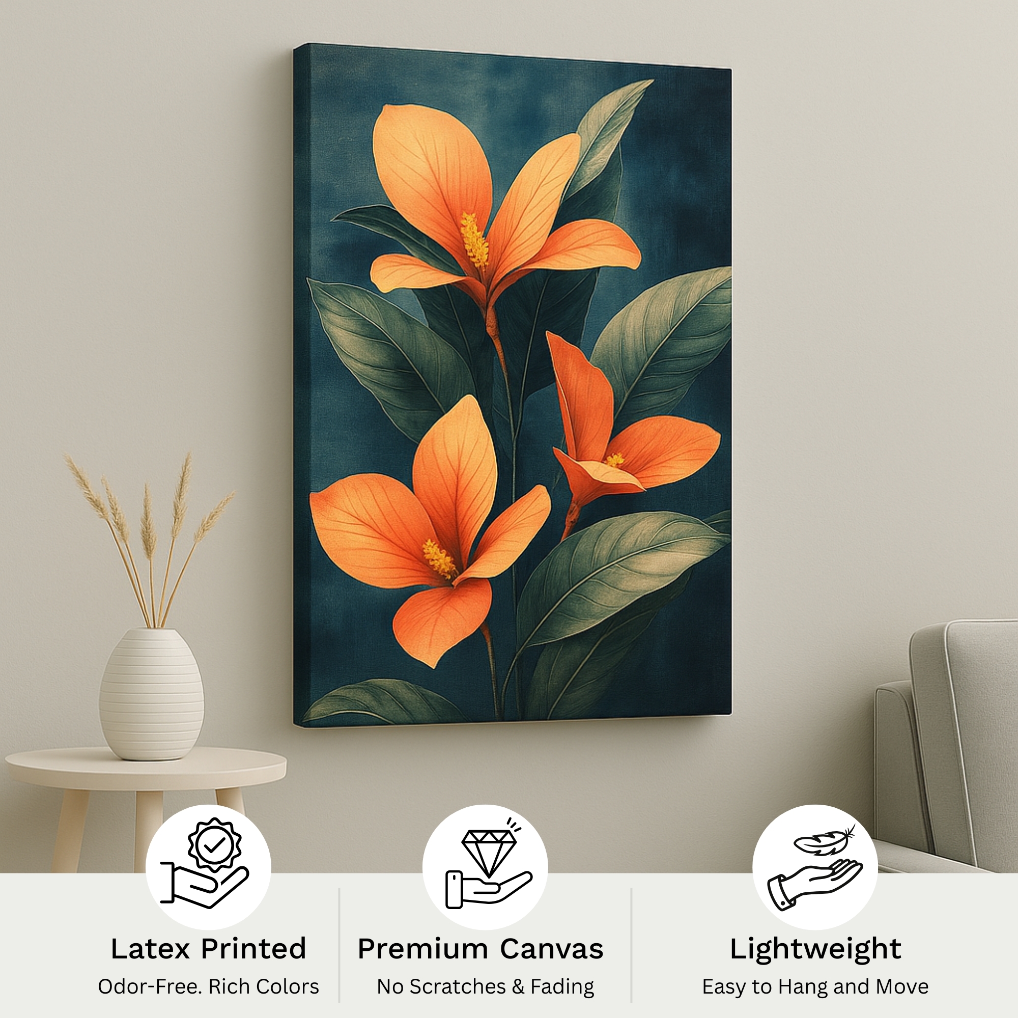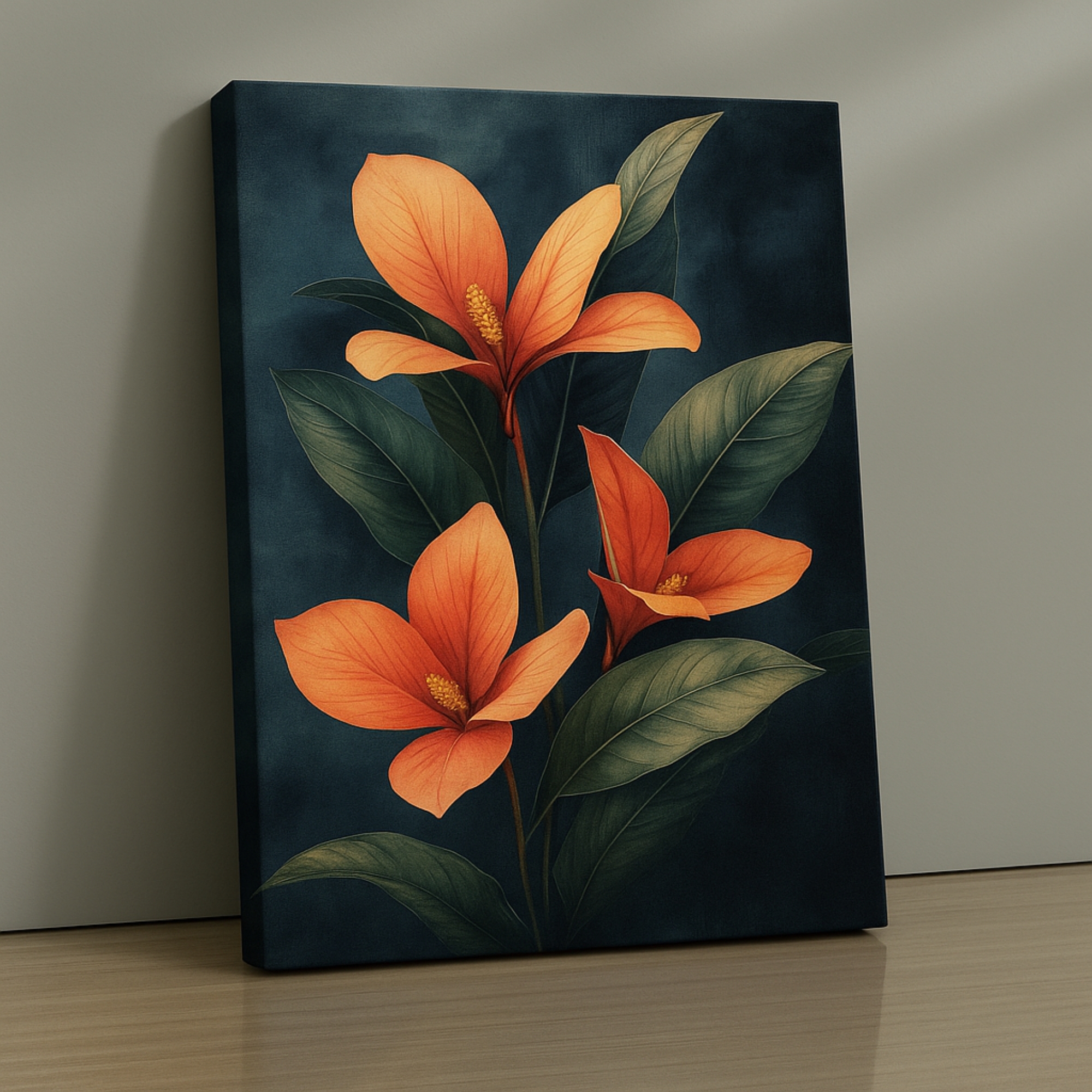 Introduce timeless depth into your space with the Ember Petal Elegance Canvas Print. This artwork features glowing orange petals set against a deep, moody background. As a result, it creates contrast and refined visual drama. The bold florals feel elegant without overpowering the room.