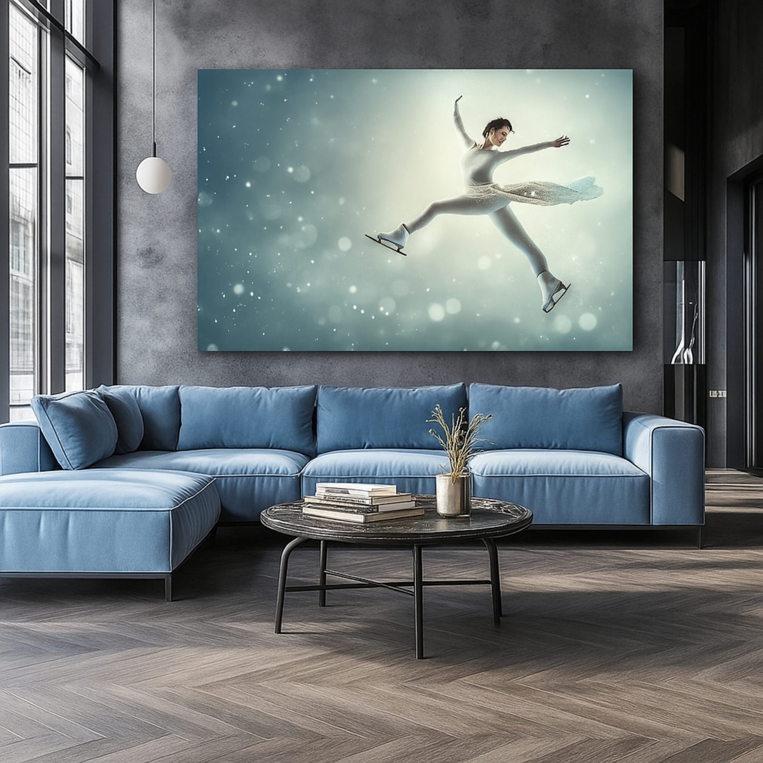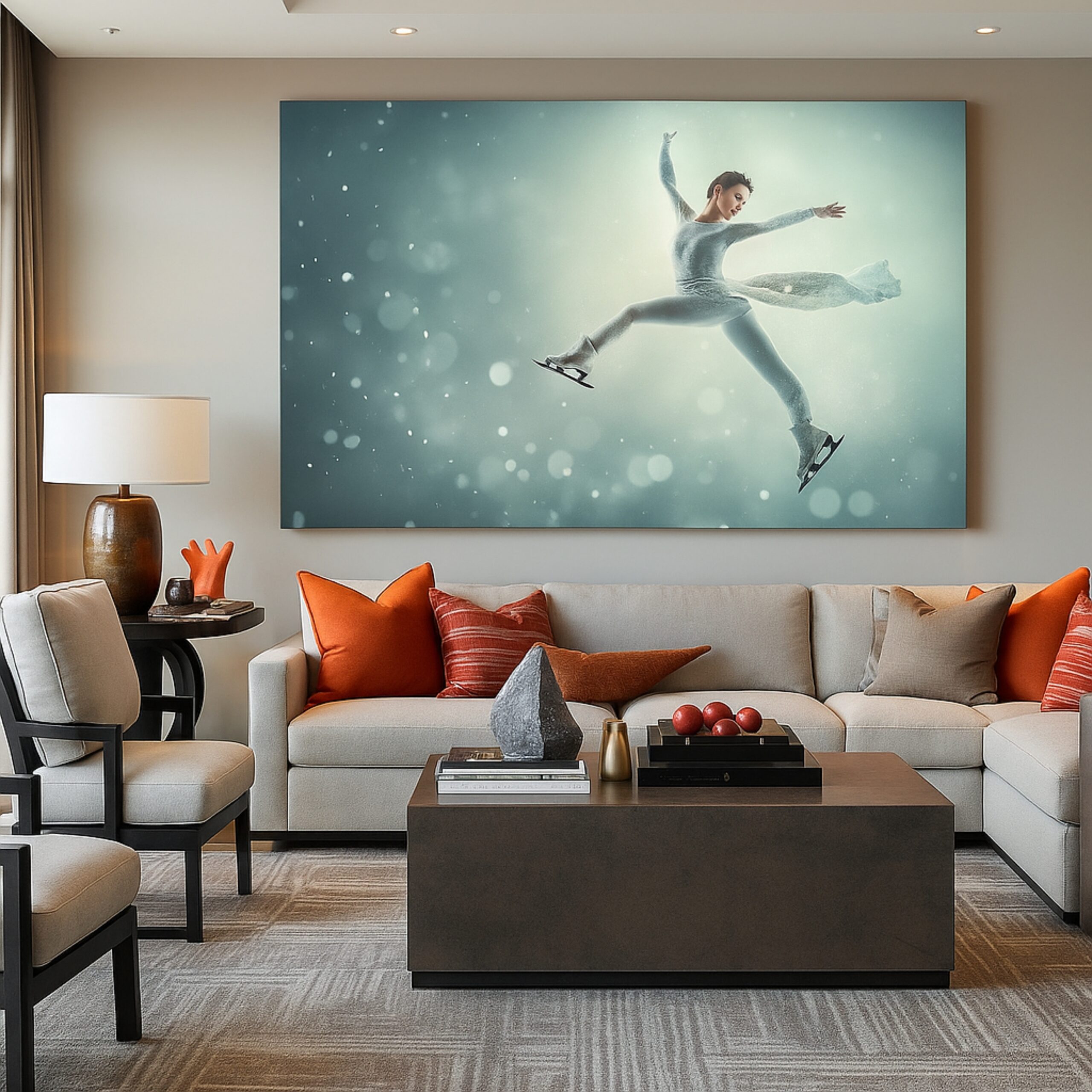 Frost Sync captures the elegance of motion and the poetry of winter. Featuring a graceful figure skater mid-leap across a glistening ice surface, this canvas print embodies ambition, discipline, and beauty. With snowfall, cool tones, and dynamic energy, it is a celebration of artistry and resilience. More than décor, it inspires strength and creativity across all seasons.