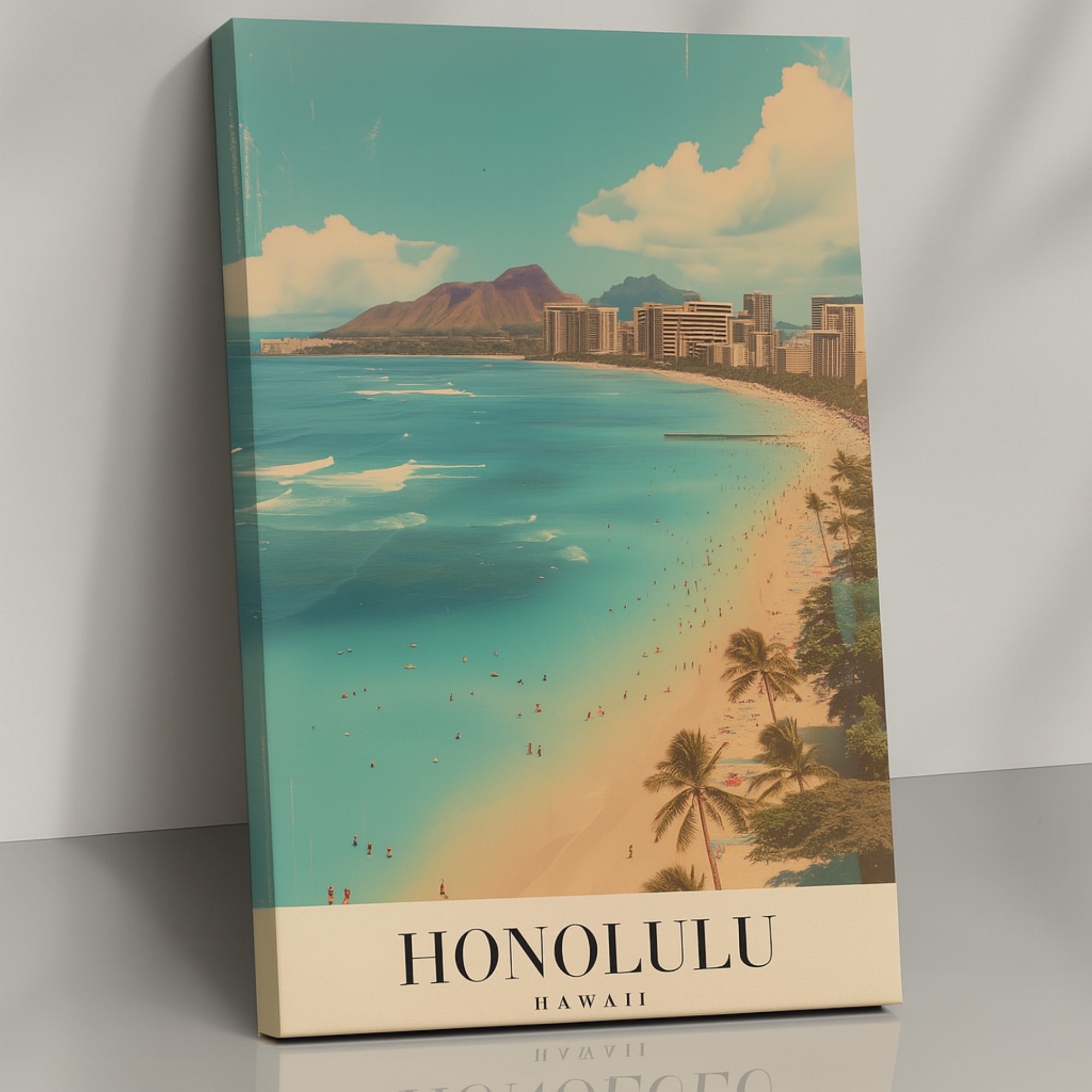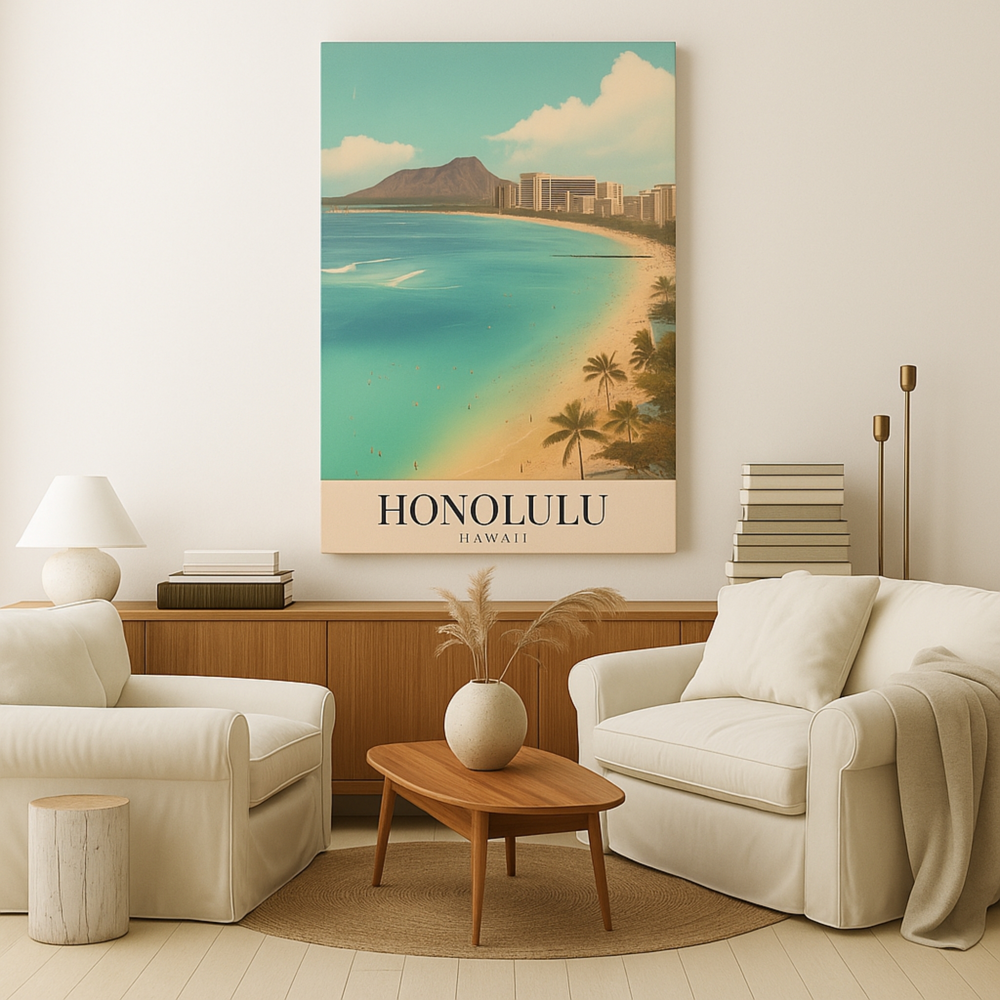 Embrace the tropical spirit with the Canvas Print of Honolulu Hawaii, a vibrant artwork that captures ocean horizons, lush palms, and breezy island charm. With its vivid colors and tranquil mood, this piece transports you to a year-round getaway, filling your home with the relaxing essence of Hawaii. Exotic yet soothing, it’s the perfect addition to living rooms, bedrooms, vacation homes, or any space that craves coastal calm and a touch of paradise.
