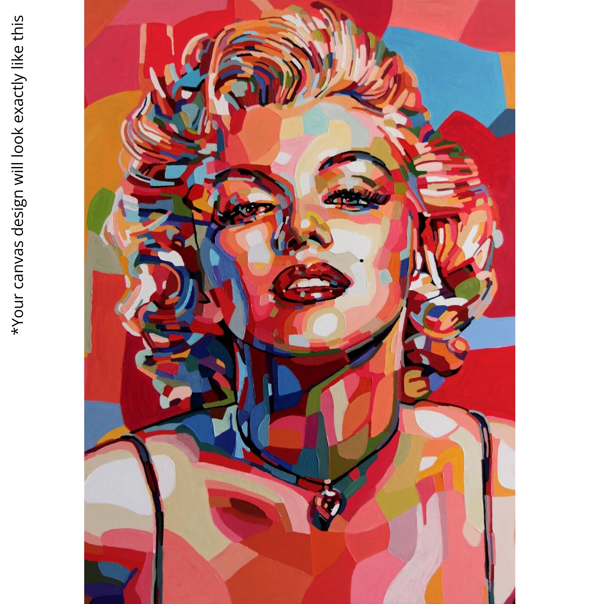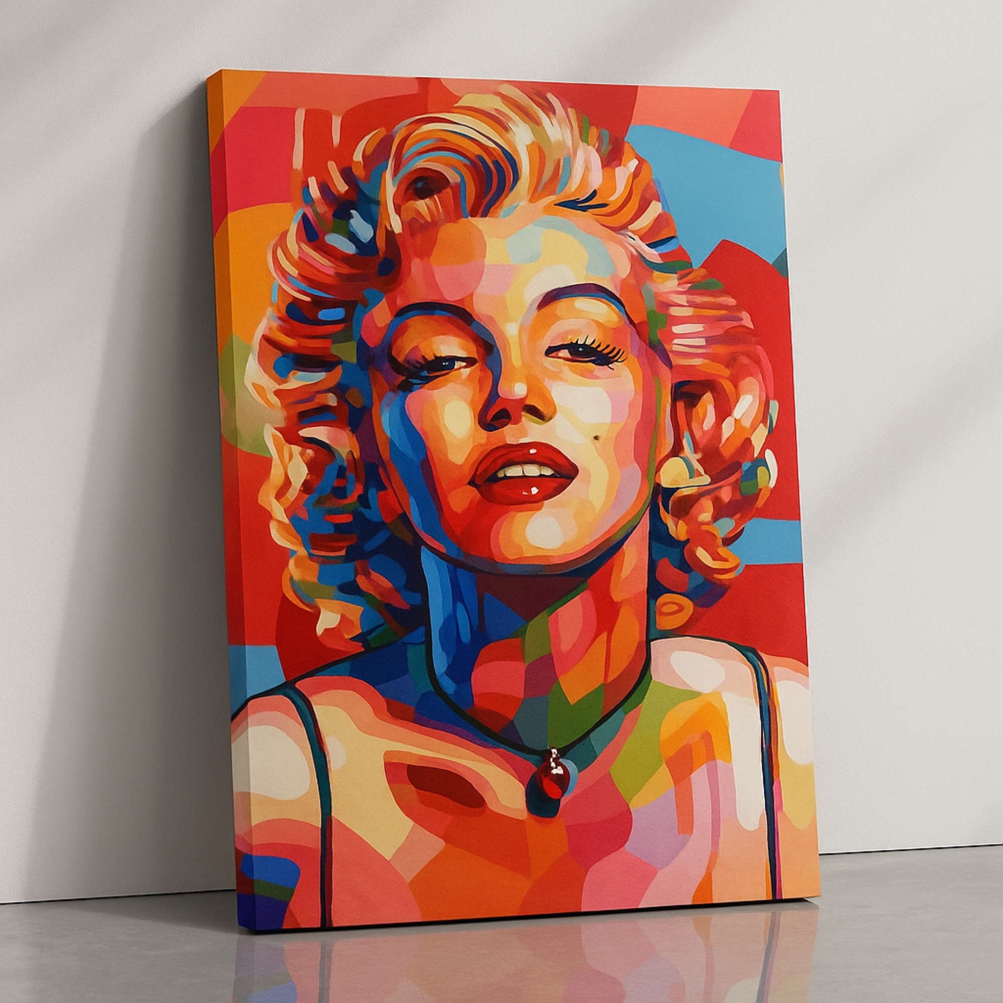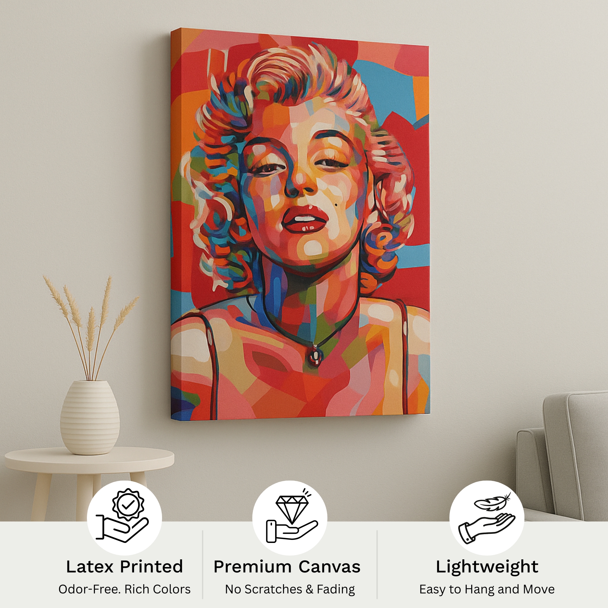Marilyn Monroe in vivid color block pop art style. Premium stretched canvas, eco-friendly inks, ready to hang.