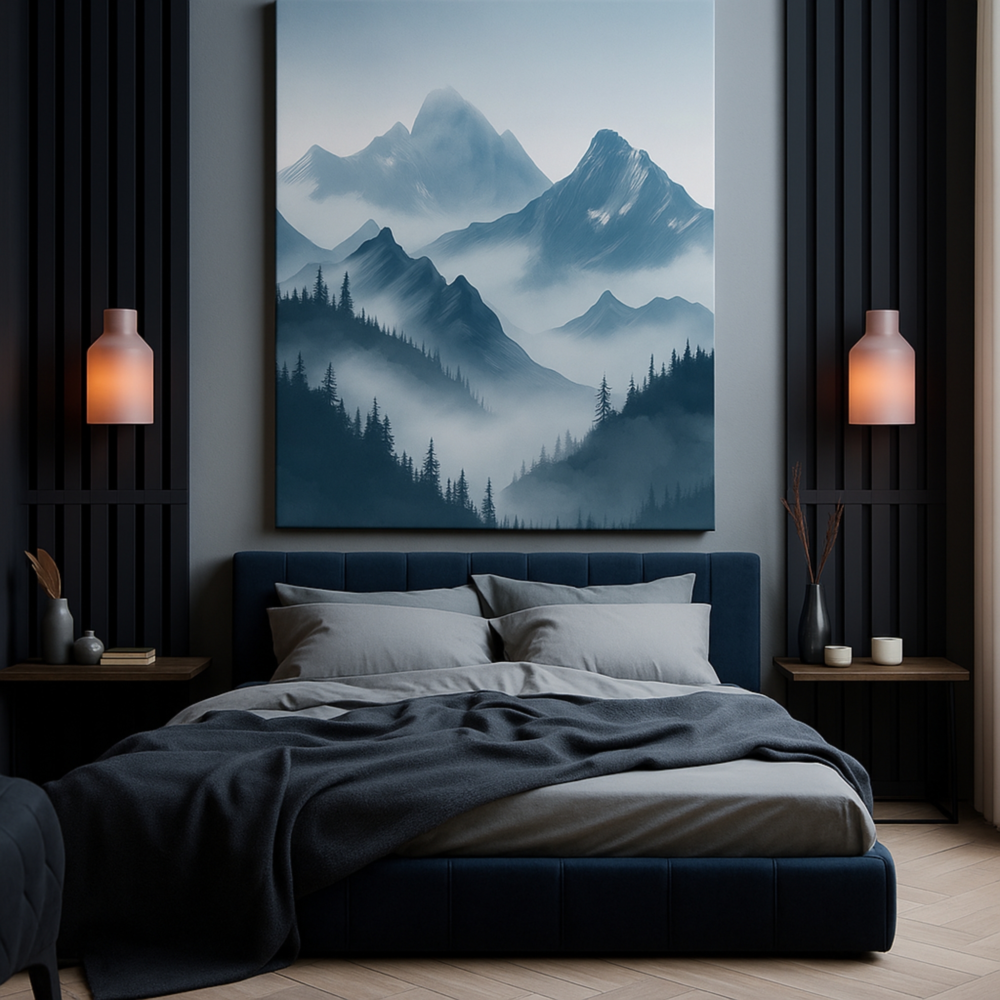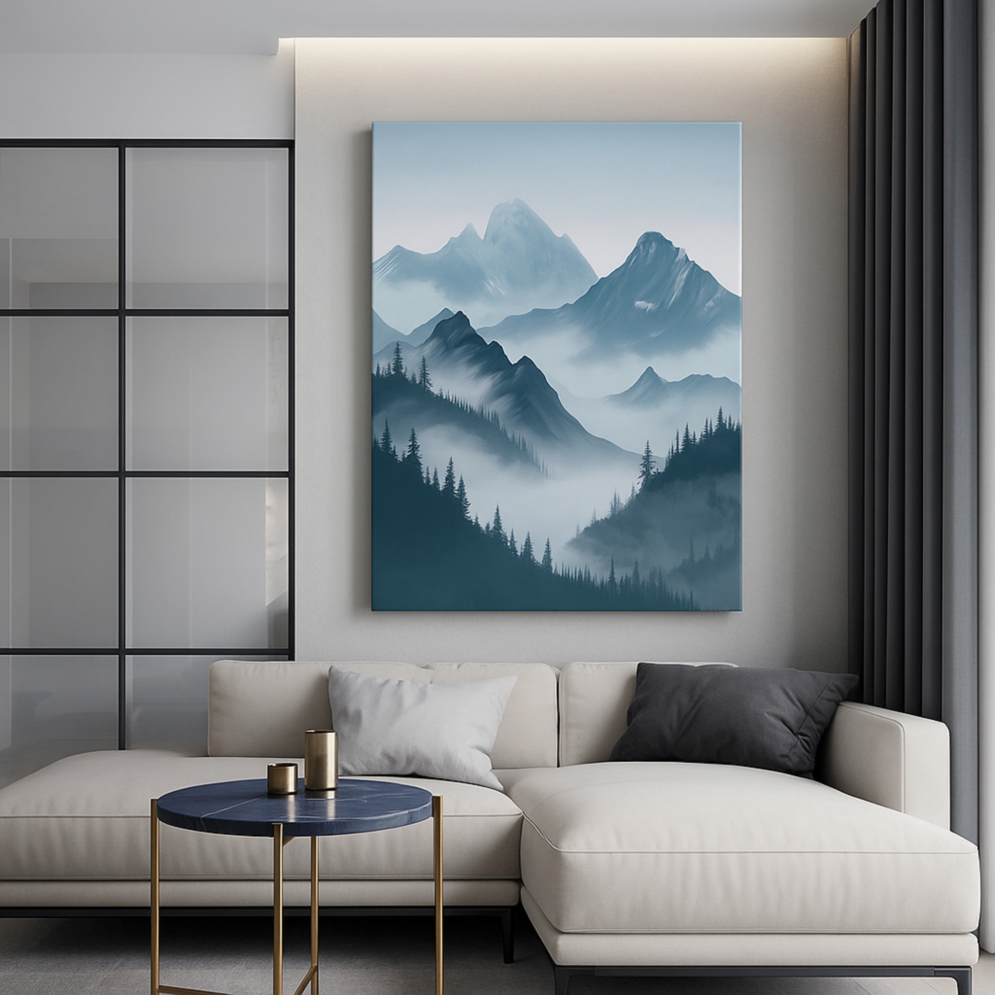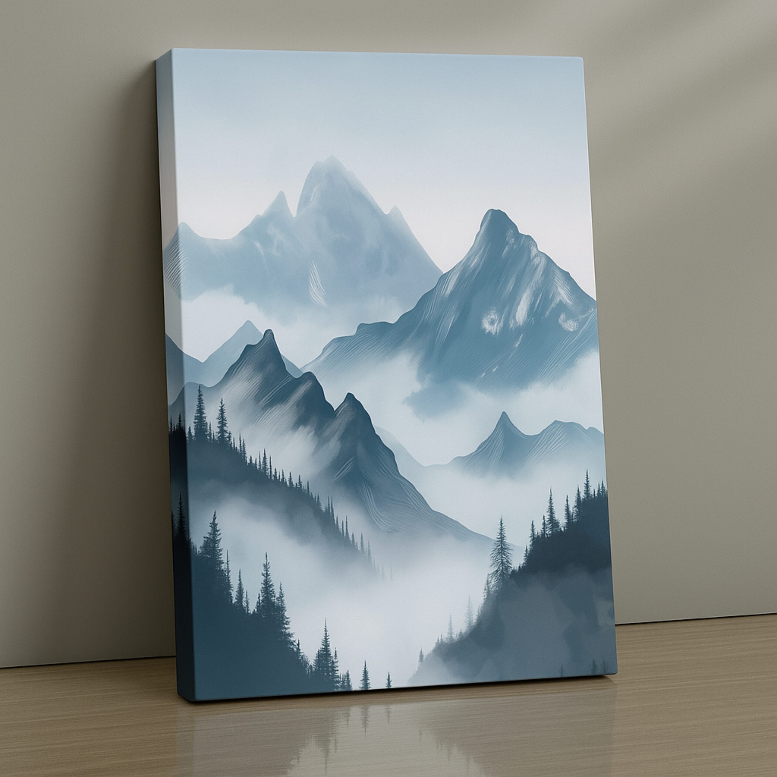 Immerse yourself in the mystery of the Mistbound Peaks Canvas Print. Towering mountains rise through layers of ethereal mist, creating a breathtaking dreamlike view that balances adventure with serenity. This artwork captures the majesty of nature and the calming spirit of mist-cloaked horizons.