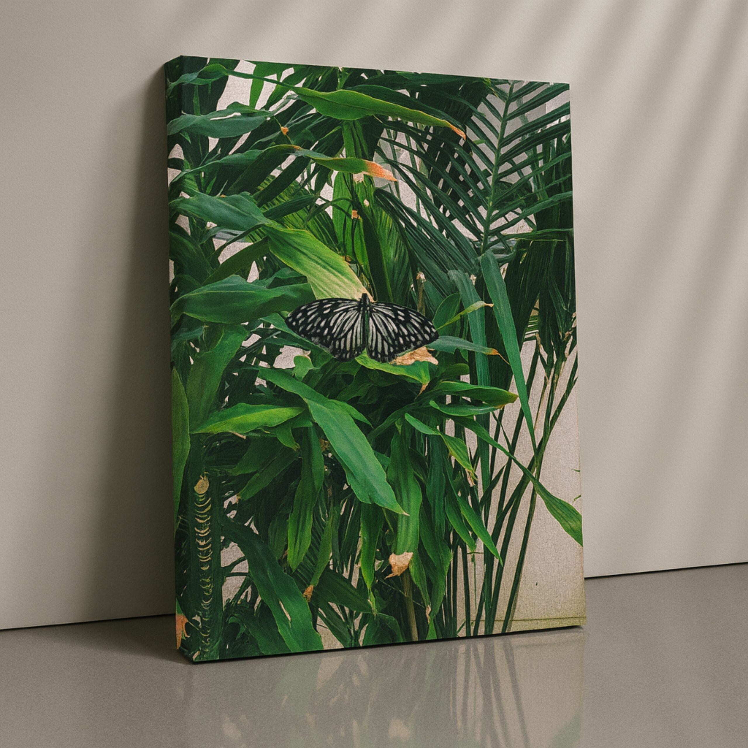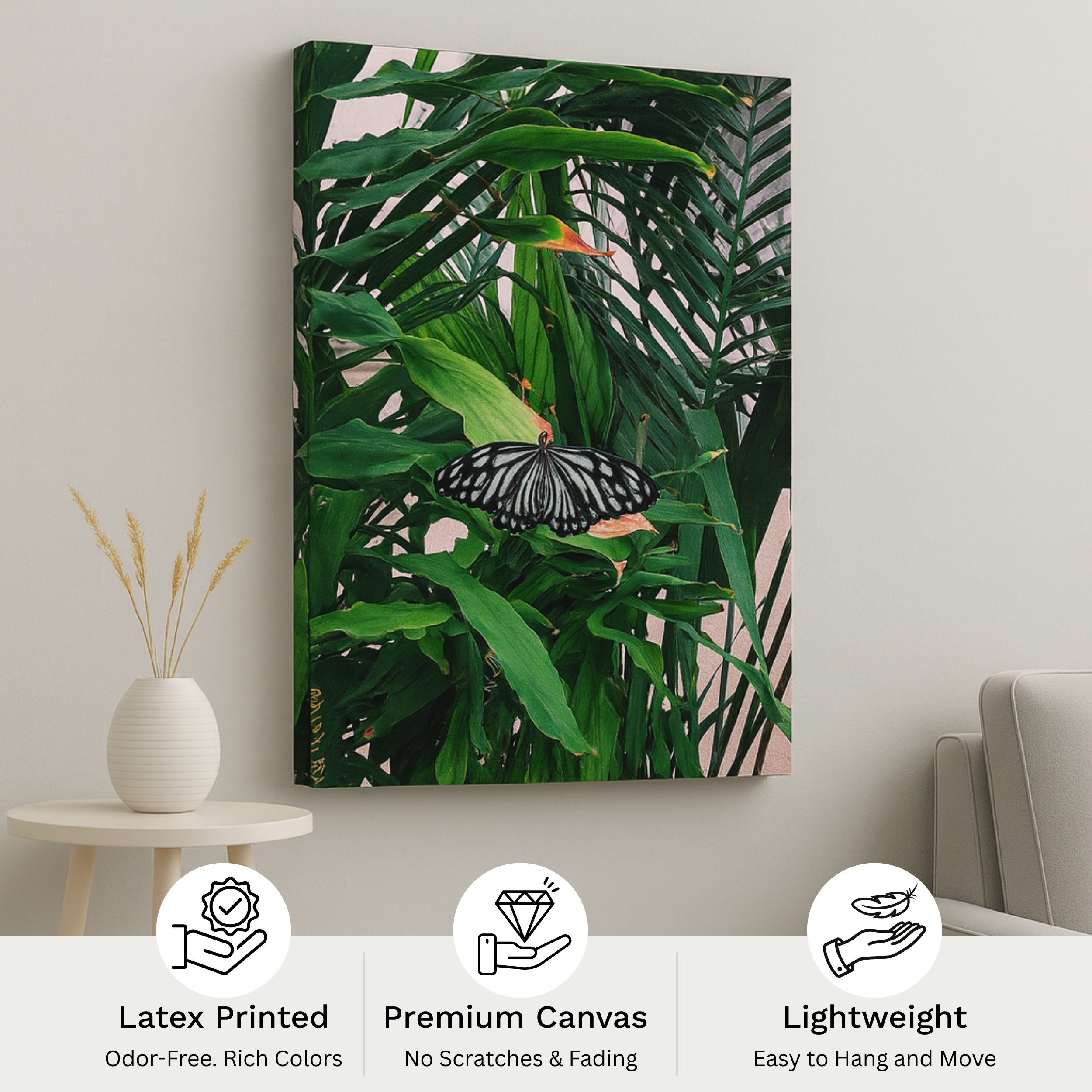 Embrace calm with the Canvas Print of Monarch’s Rest. A butterfly among greenery, symbolizing serenity and renewal. Hand-stretched and ready.
