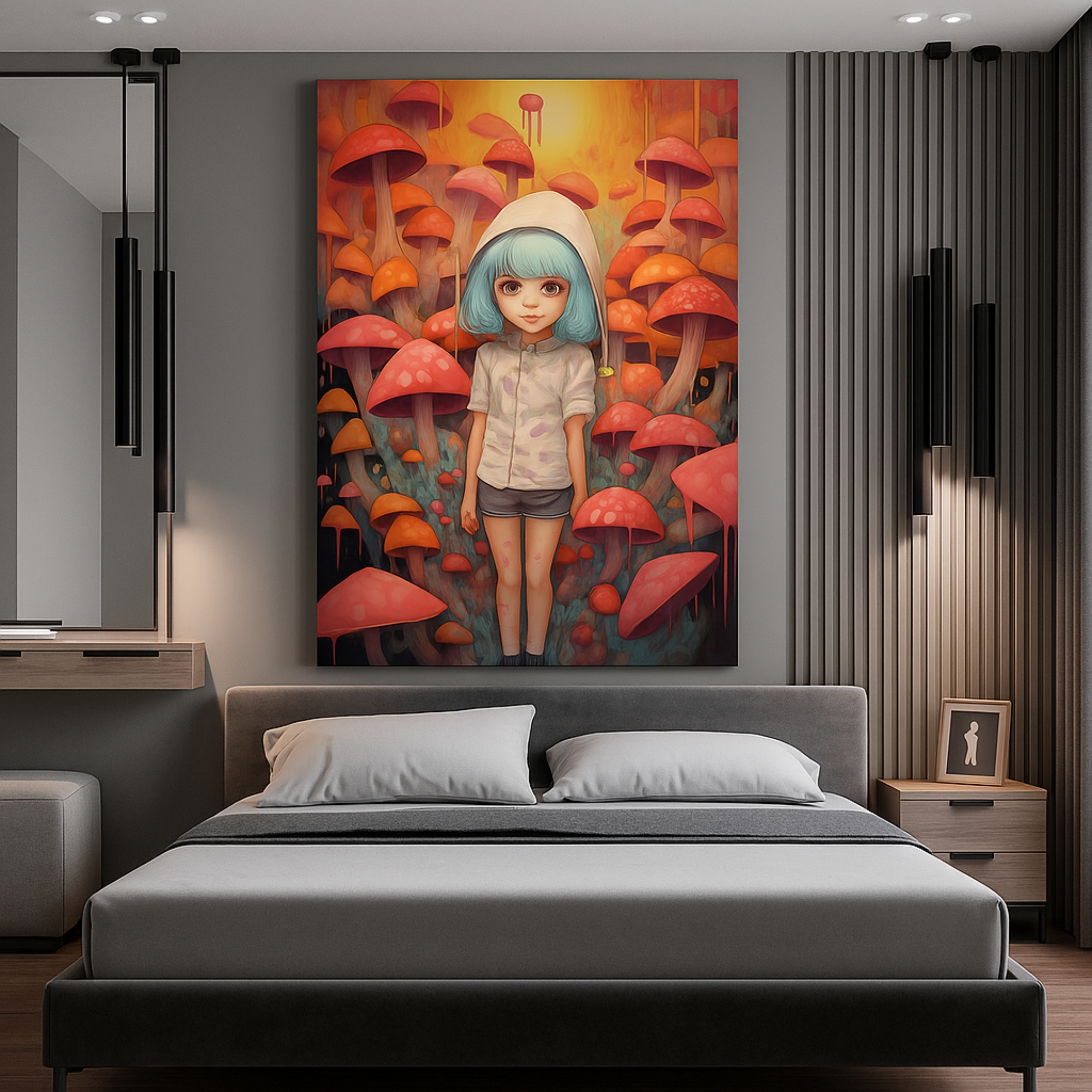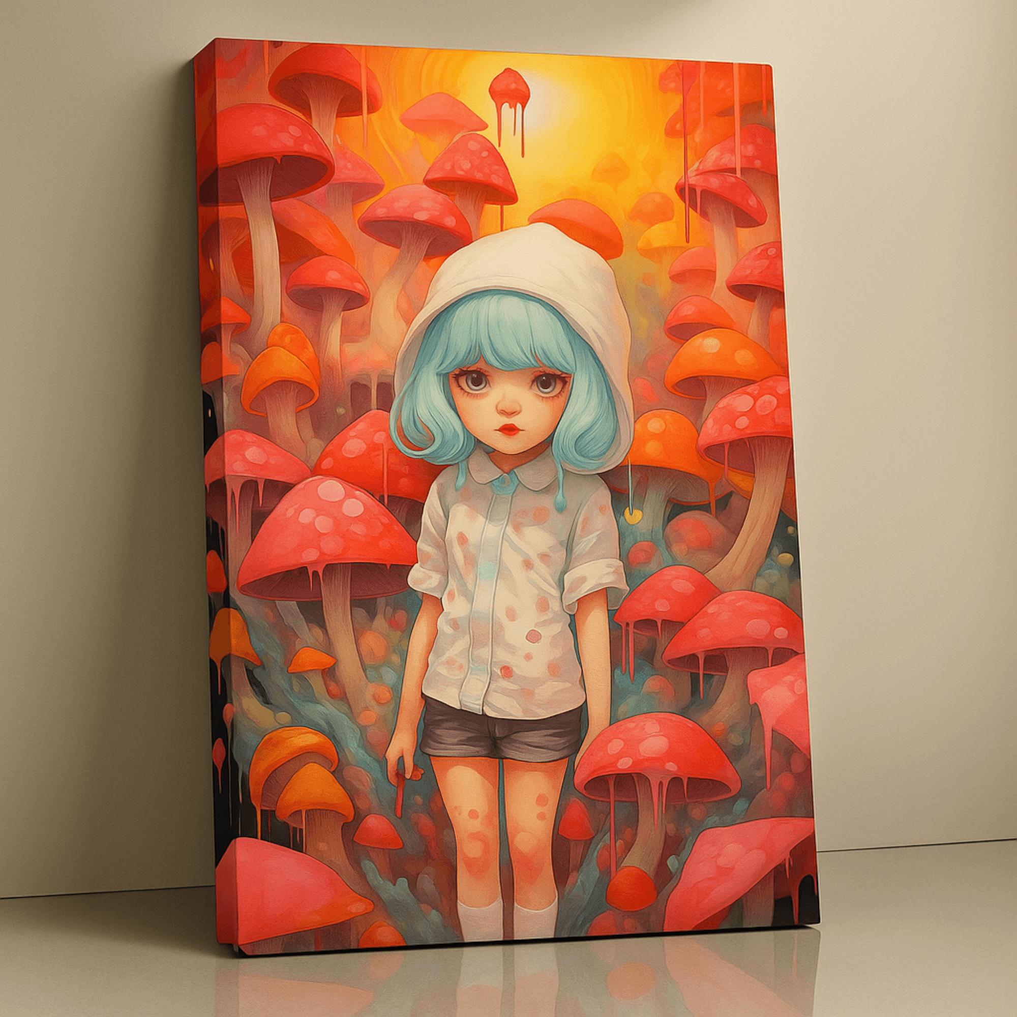 Enter whimsy with Mushroom Girl Canvas Print – a fantasy surreal artwork glowing with mushrooms. Premium stretched canvas, durable and ready to hang.