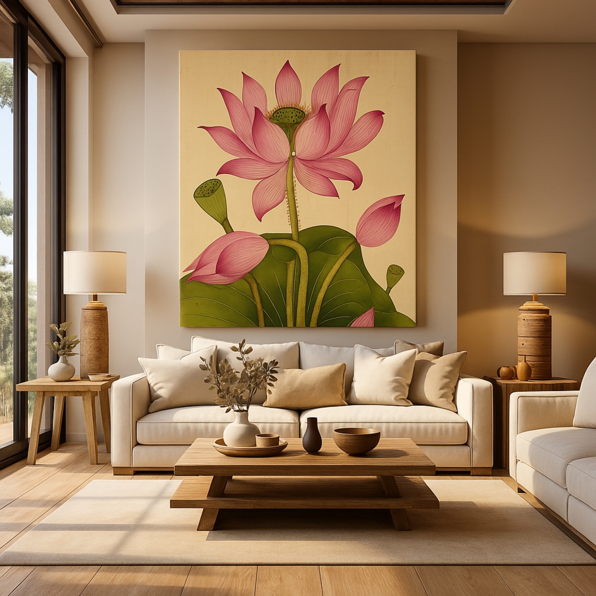 Moreover, this canvas artwork blends cultural elegance with modern presentation. It fits naturally in peaceful interiors and sacred spaces. The lotus design adds meaning and beauty.