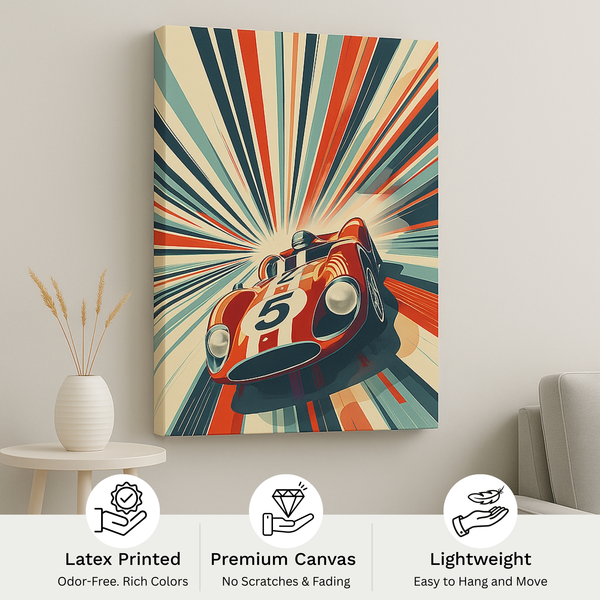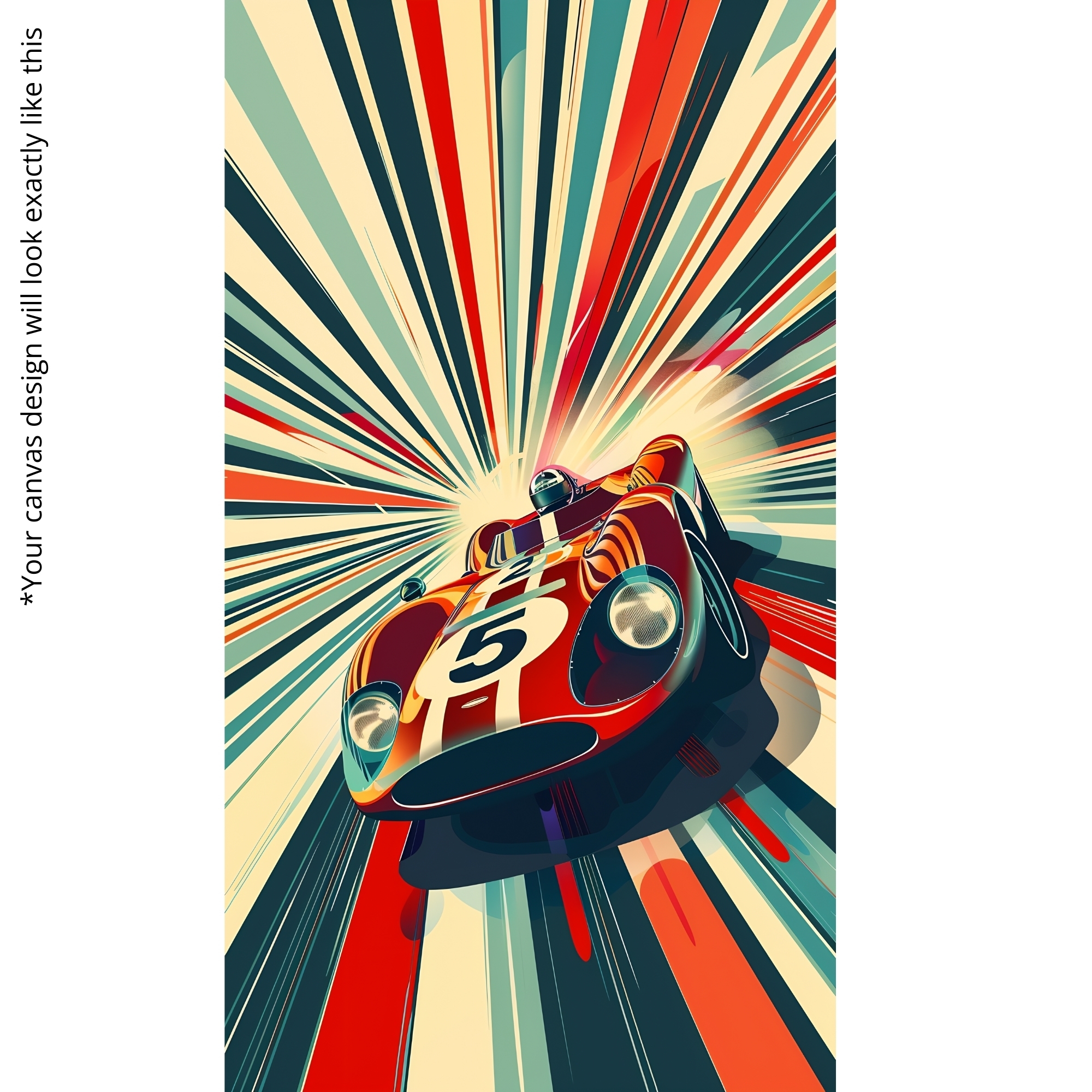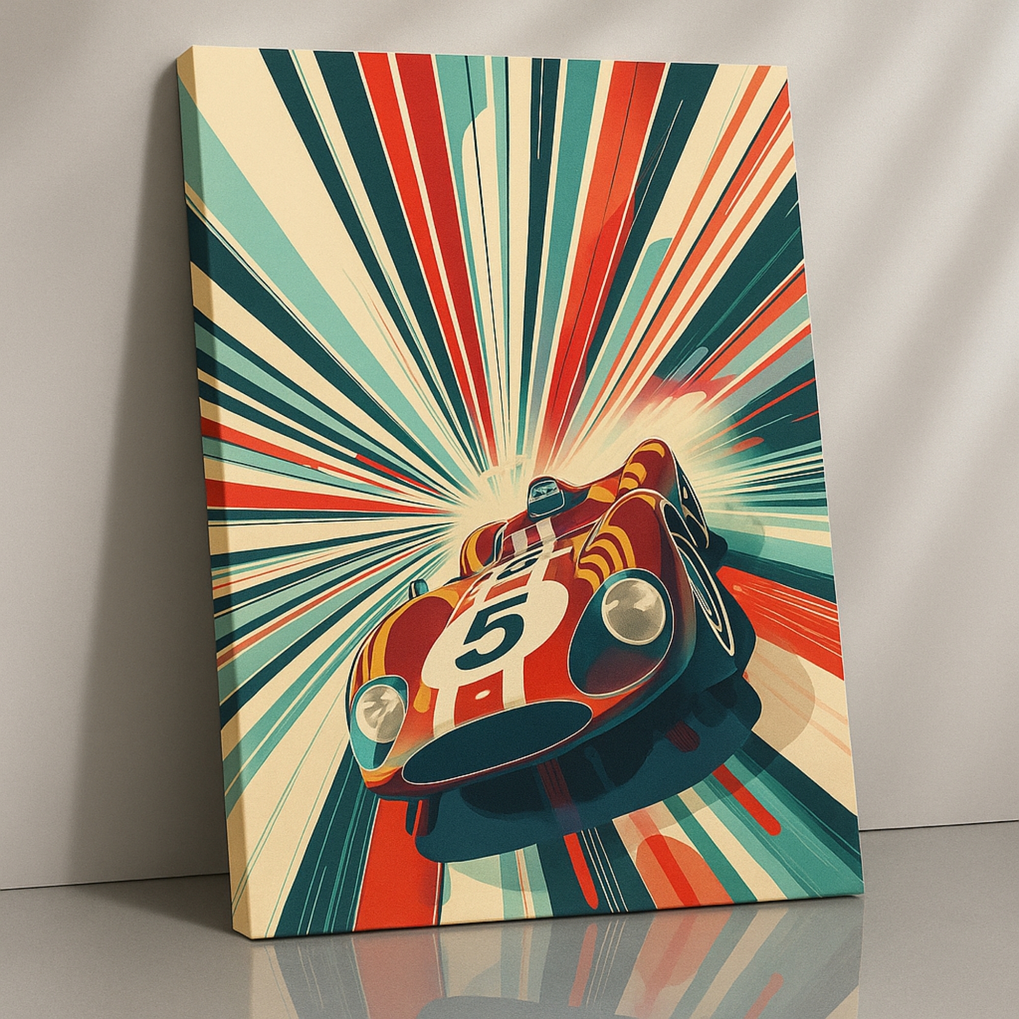 Perfect for vintage racing fans and automotive collectors. Pair with pop art canvas prints for a nostalgic wall gallery.