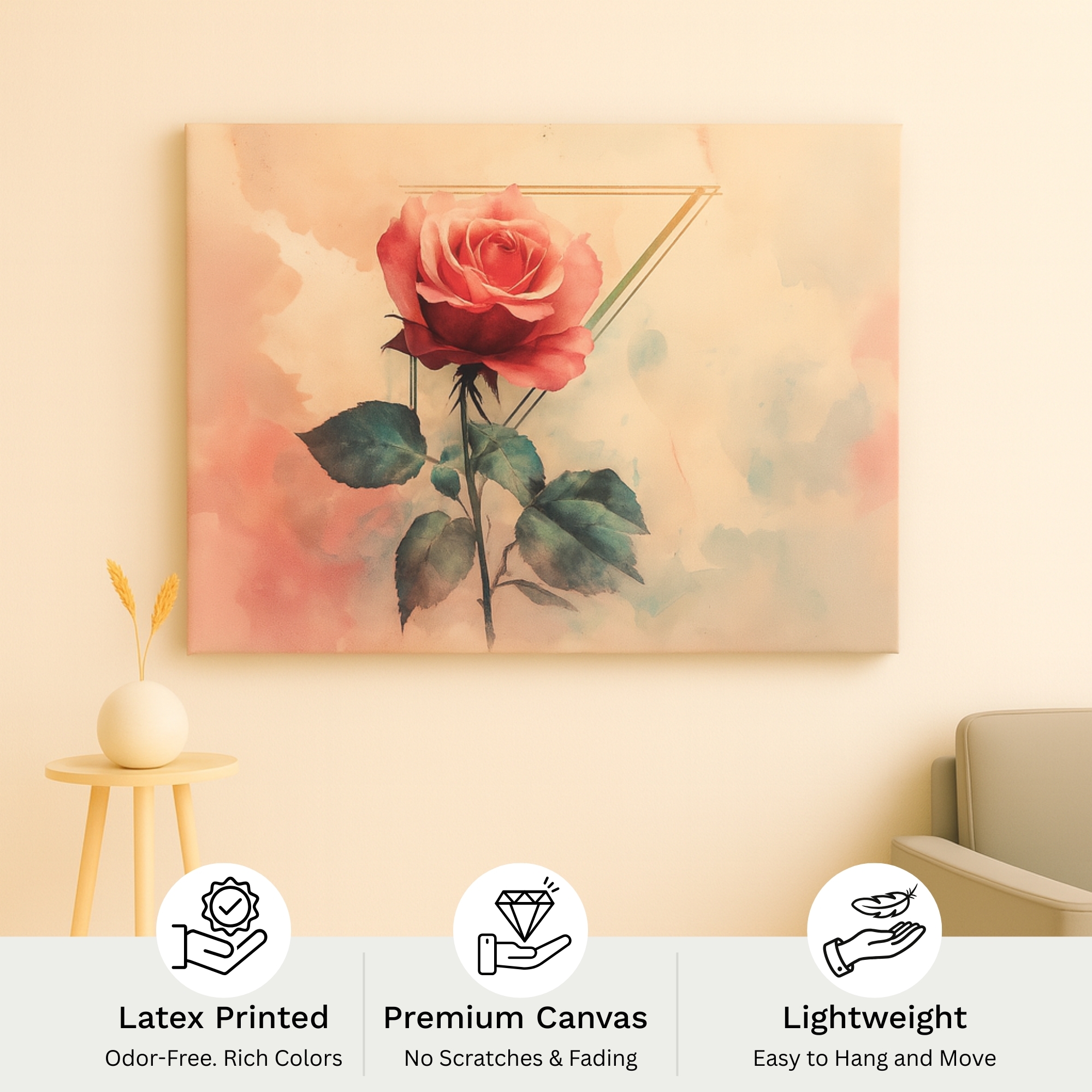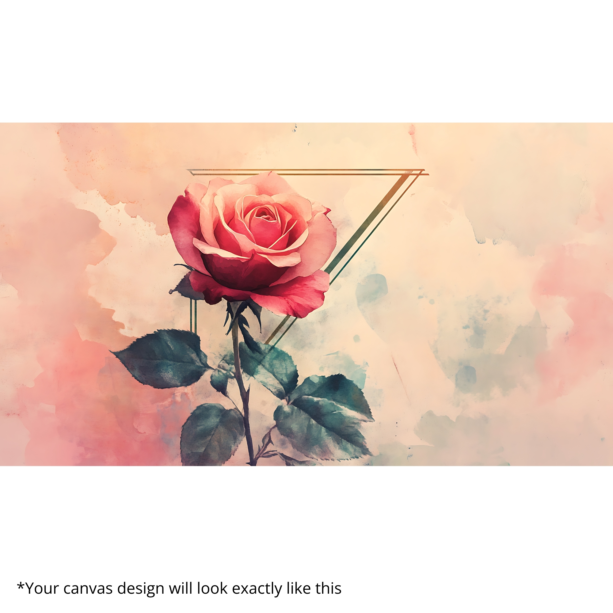 Modern rose Canvas Print with pastel watercolor background and geometric detailing.