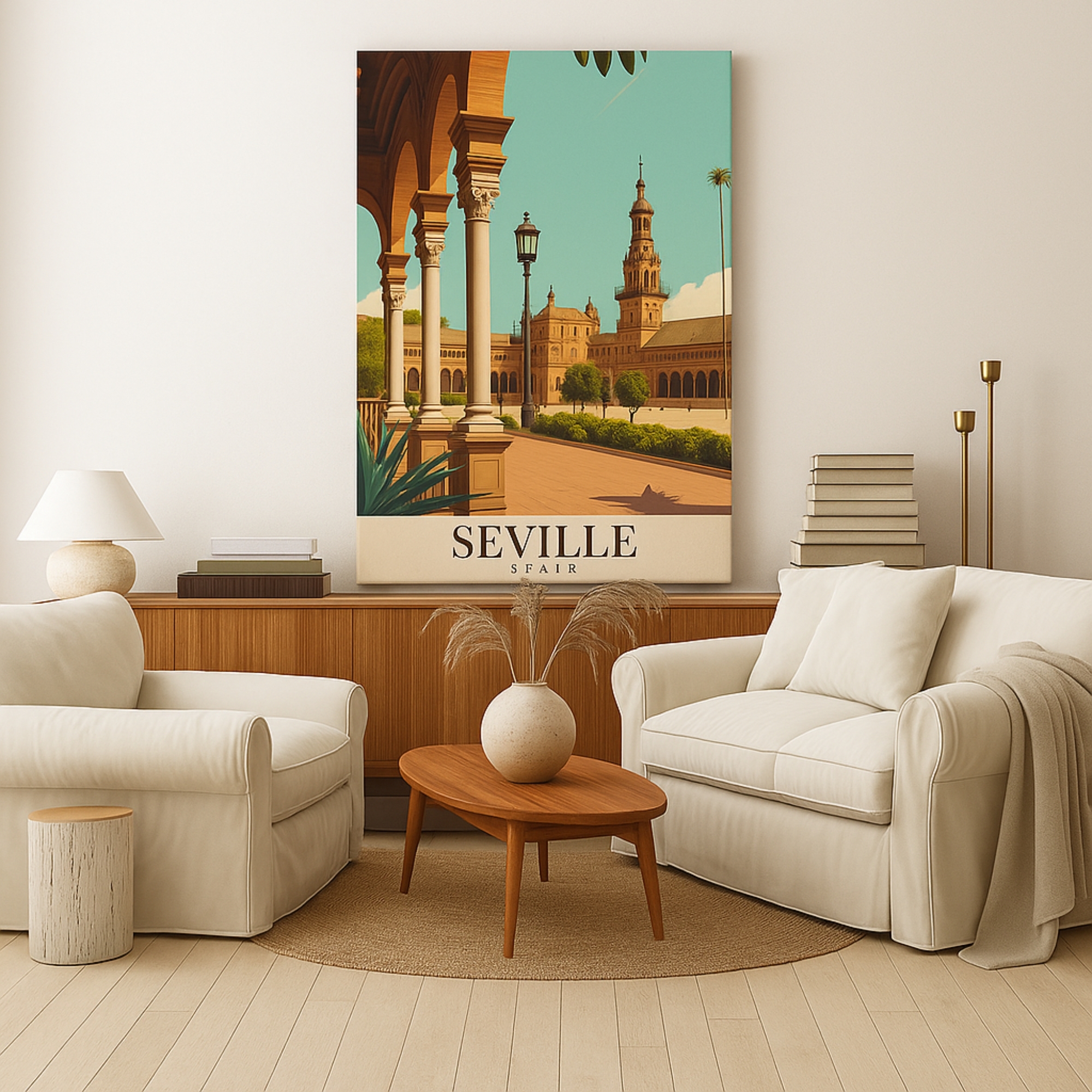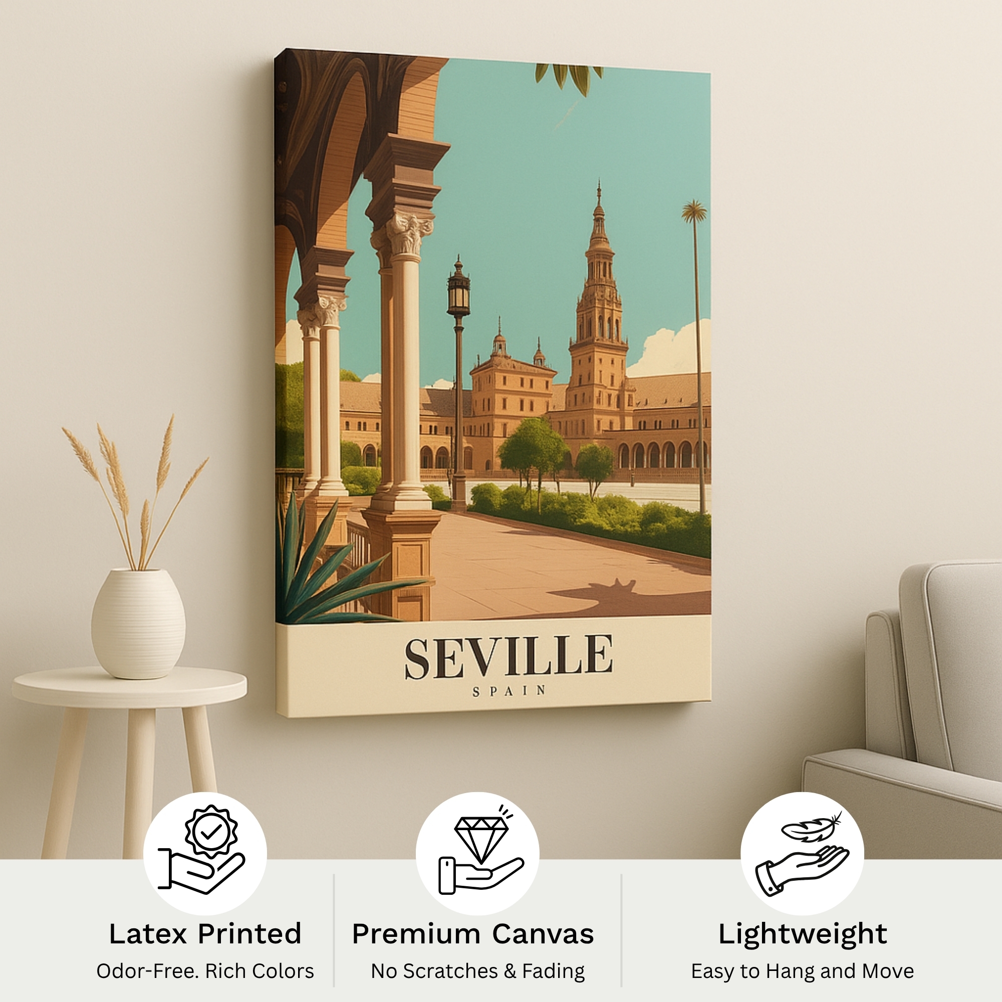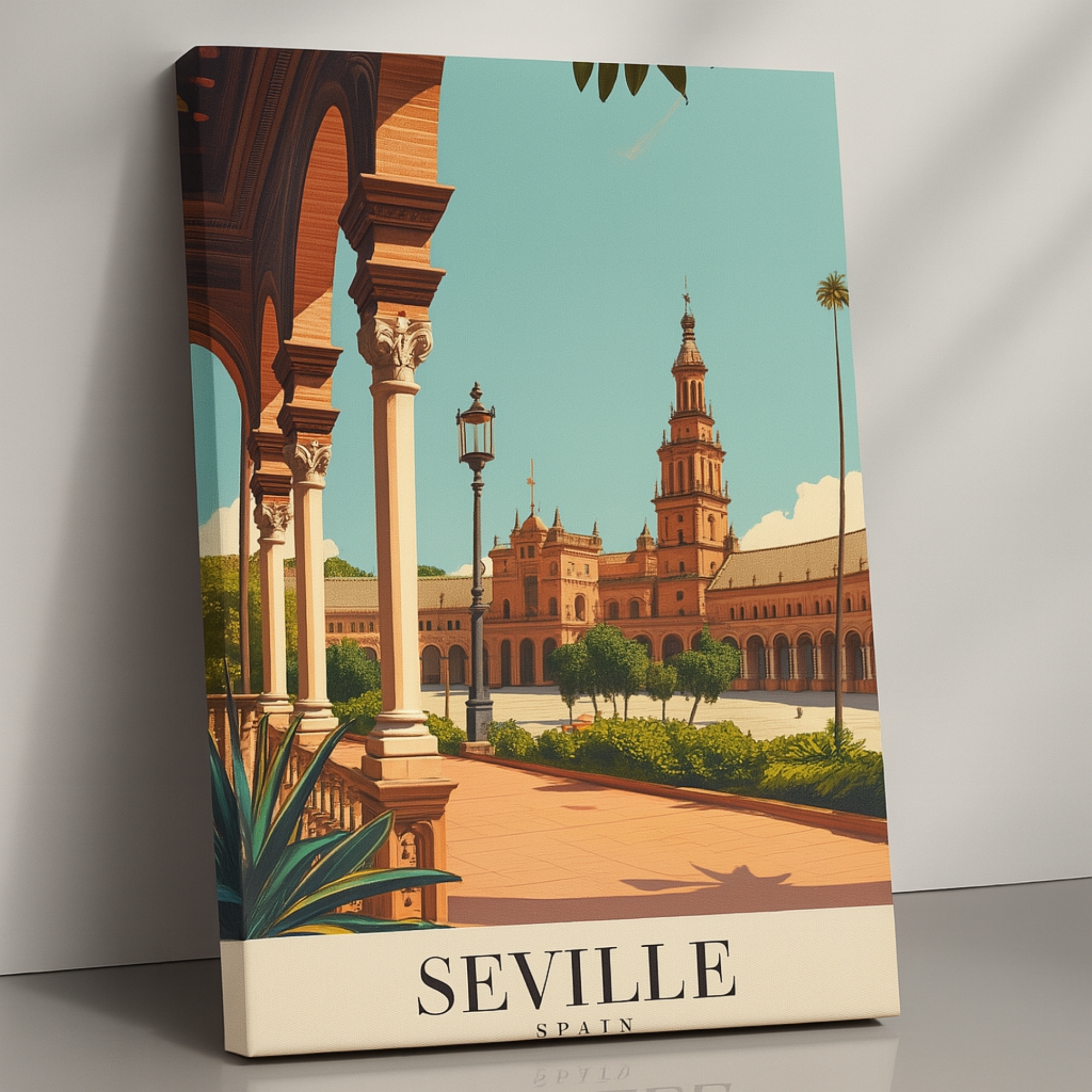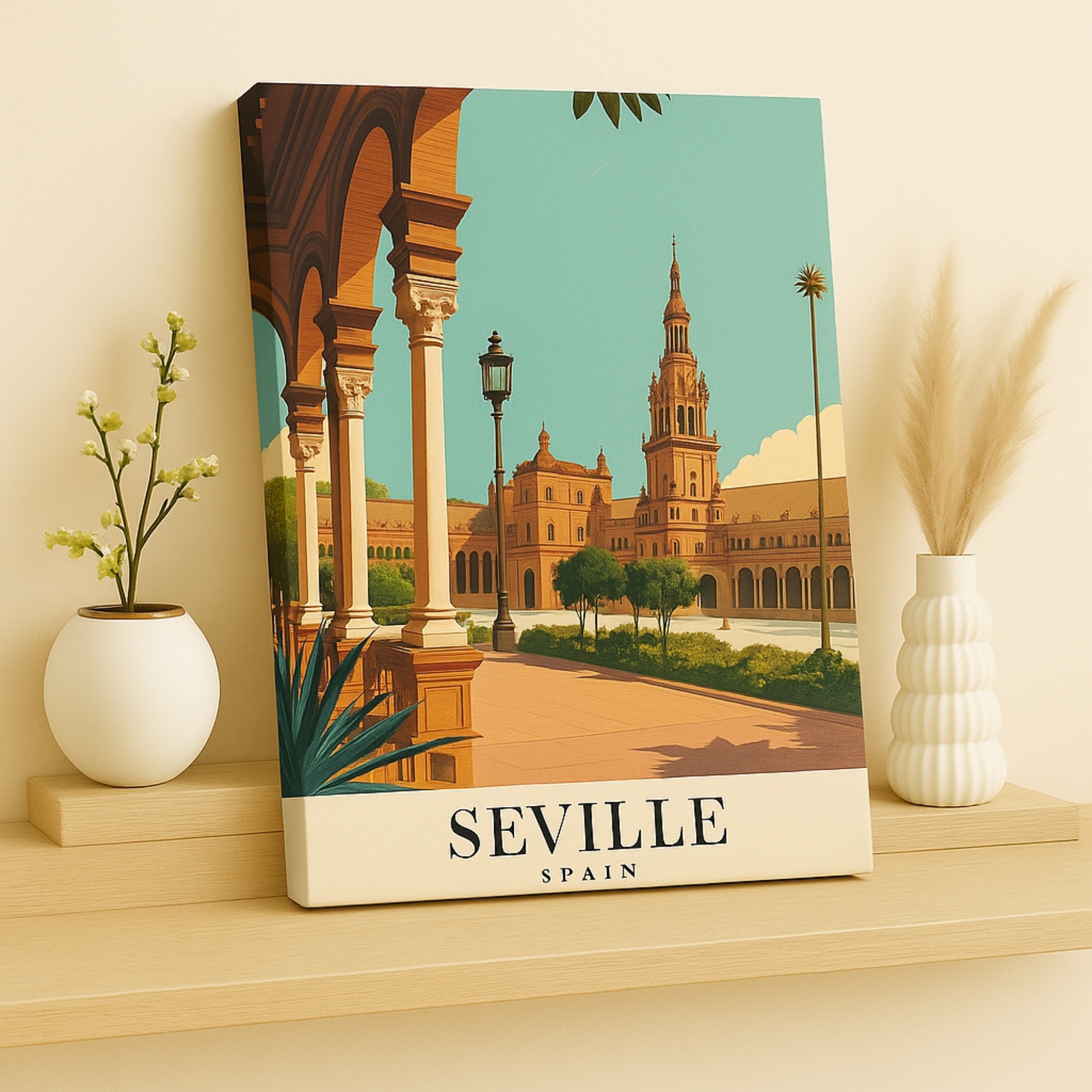 Celebrate Andalusian elegance with the Canvas Print of Seville Spain, a cultural masterpiece that highlights Moorish arches, intricate tilework, and sunlit courtyards. This artwork radiates warmth and sophistication, infusing interiors with the spirit of Southern Spain. Rich patterns and glowing tones make it an artful centerpiece for hallways, salons, eclectic living rooms, or any space that embraces cultural charm.