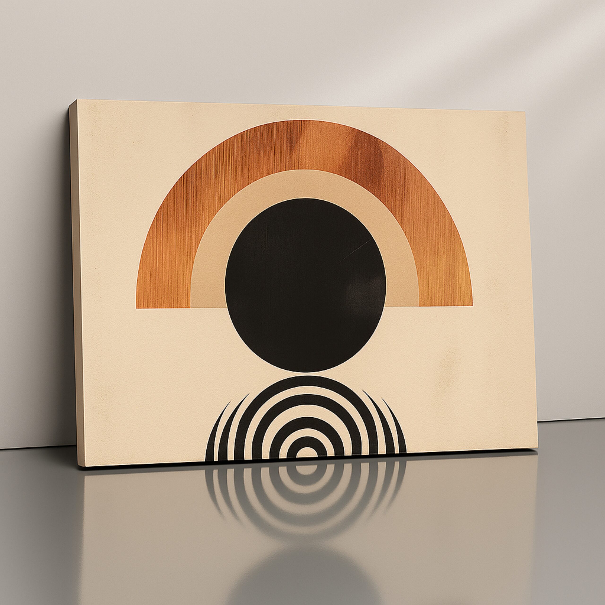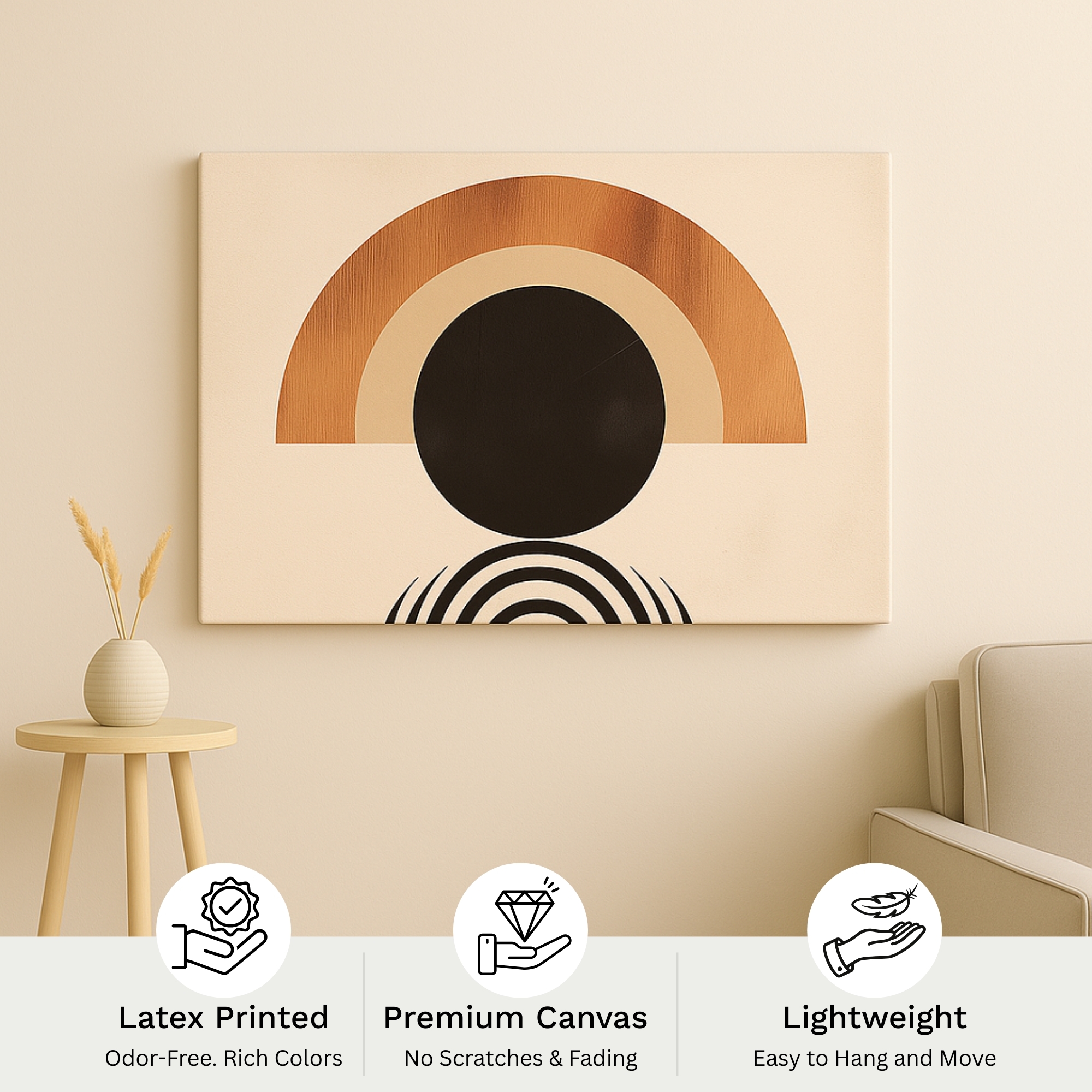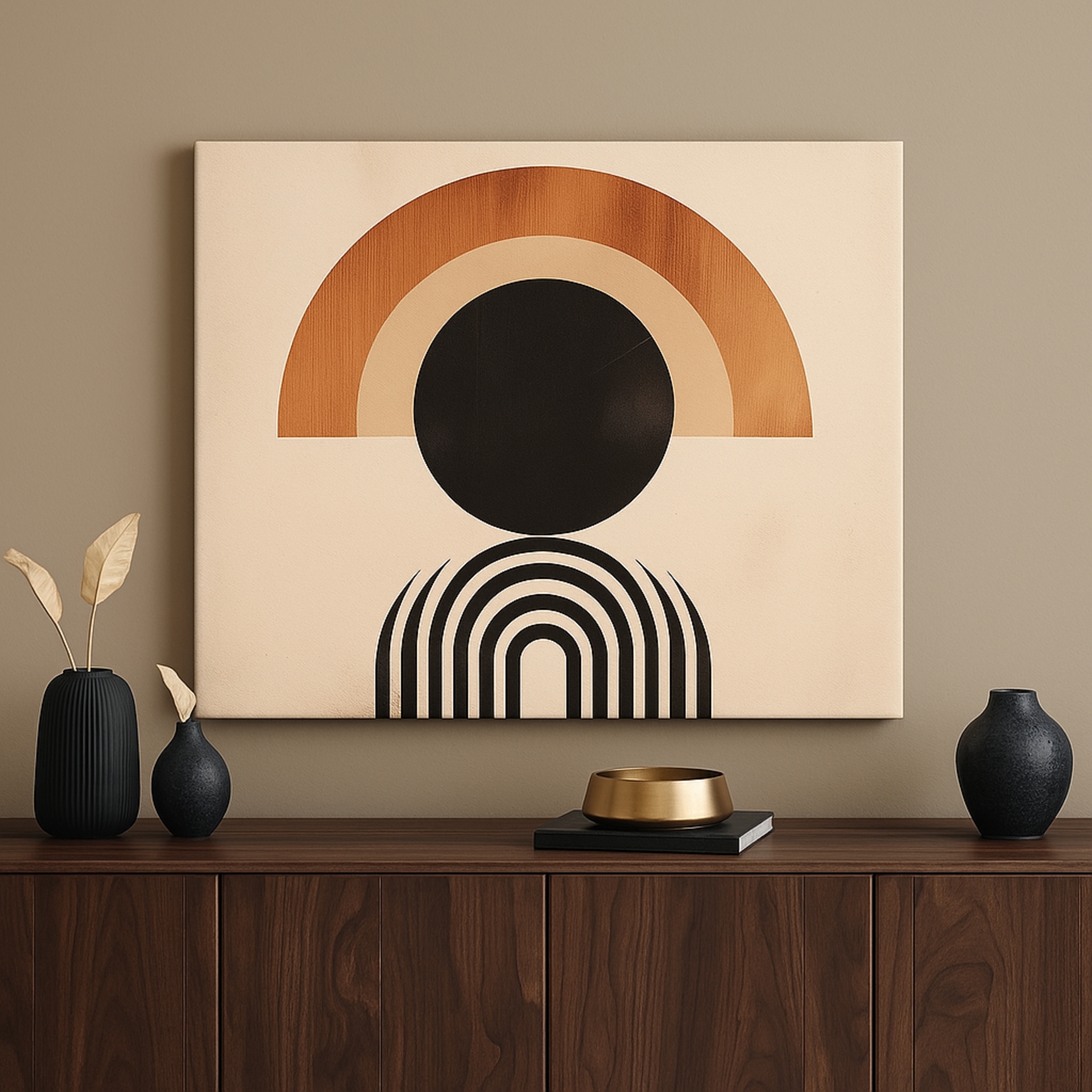 Minimalist sun-inspired abstract canvas with bold arcs. Premium cotton canvas, fade-resistant inks, hand-stretched, ready to hang.