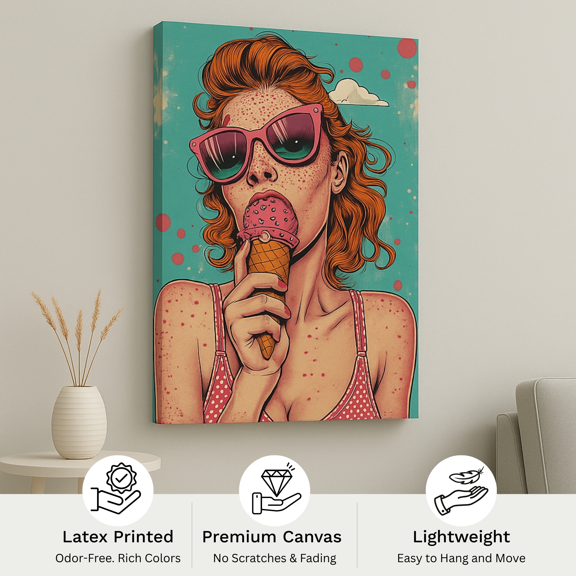 Perfect for retro collectors, playful homes, or summer-inspired interiors. Pair with pop art canvas prints for a themed gallery wall.