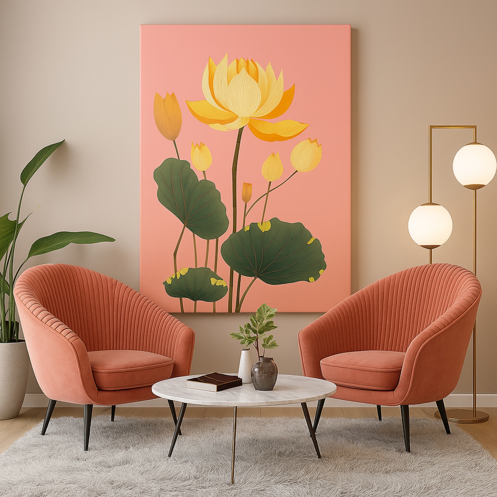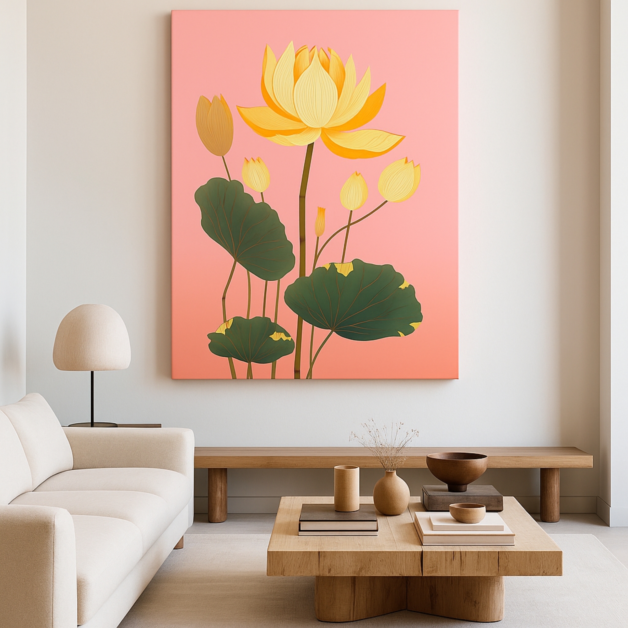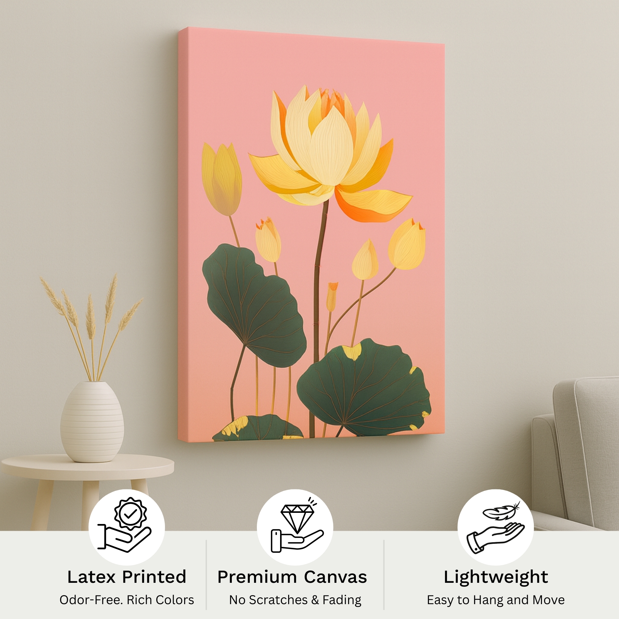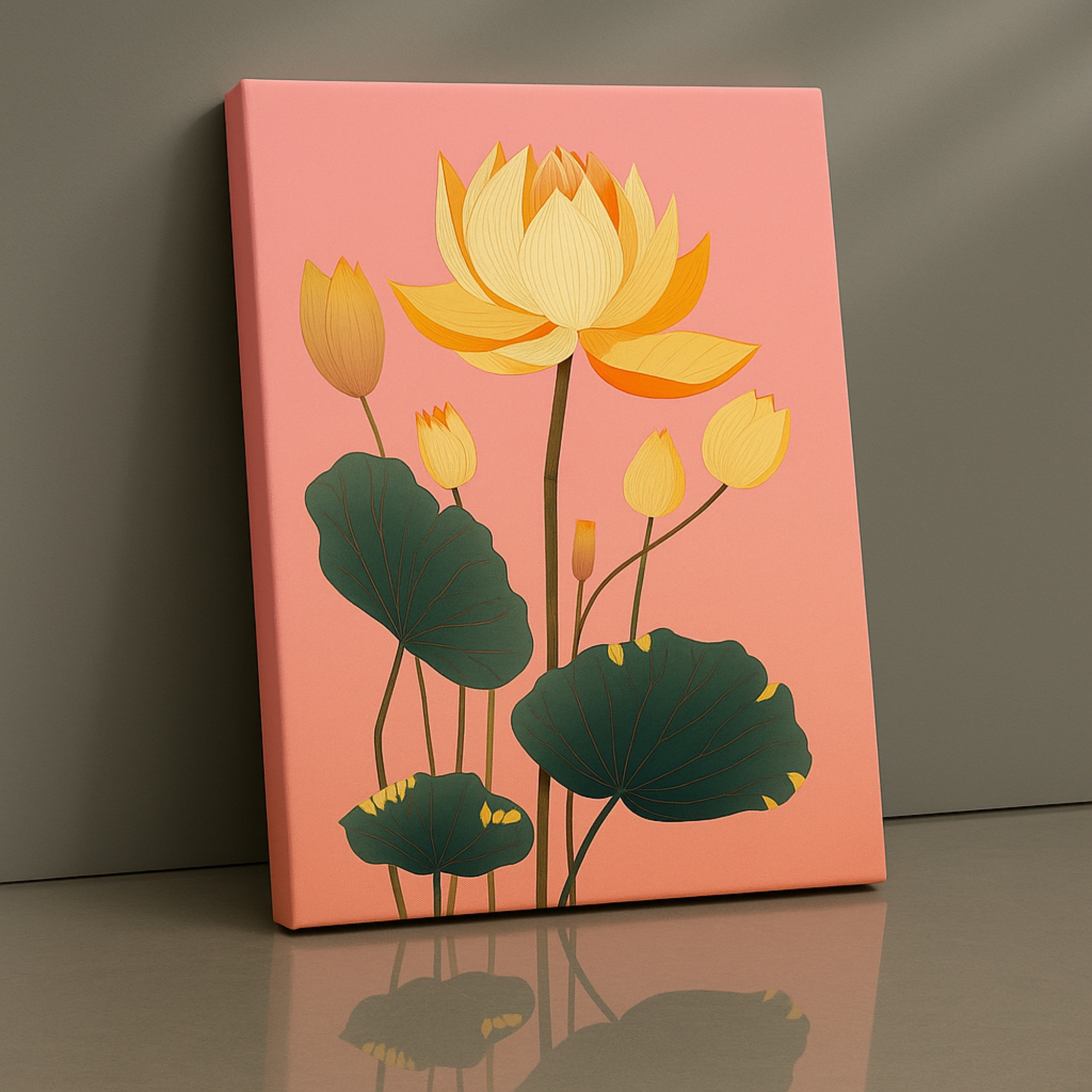 Brighten your space with the Sunrise Lotus Bloom Canvas Print. This artwork features a radiant lotus glowing in warm sunrise hues. As a result, it symbolizes peace, renewal, and positive energy. The balanced composition feels uplifting and serene.