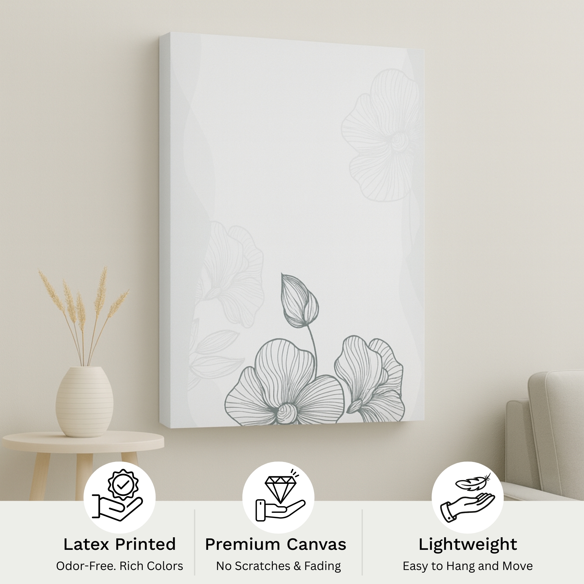 Bring refined simplicity into your home with the Whispered Line Blooms Canvas Print. This artwork features delicate floral outlines paired with soft, neutral accents. As a result, it creates a calm and uncluttered visual flow. The line art style feels modern and airy.