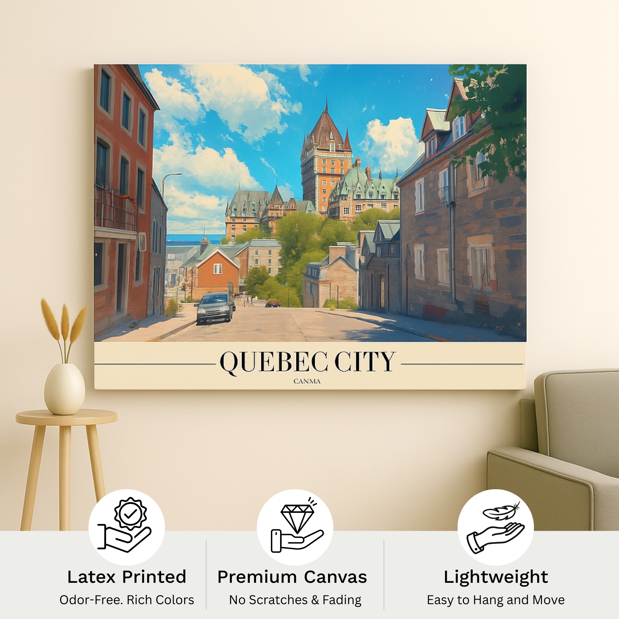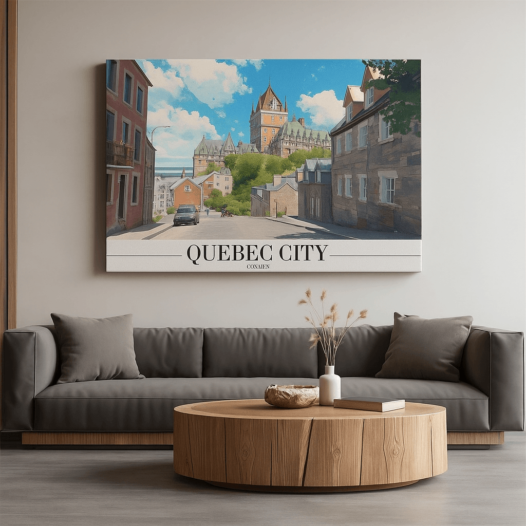 This Canvas Print inspired by Quebec City captures the old-world charm of one of North America’s most historic destinations. Cobblestone streets, classic stone buildings, and European-influenced architecture come together to create a warm and inviting cityscape. The artwork brings a sense of heritage and timeless elegance to interiors, making it ideal for living rooms, reading corners, offices, and travel-inspired spaces.. This Canvas Print is hand-stretched over a sturdy frame and arrives ready to hang, ensuring effortless installation and long-lasting beauty.