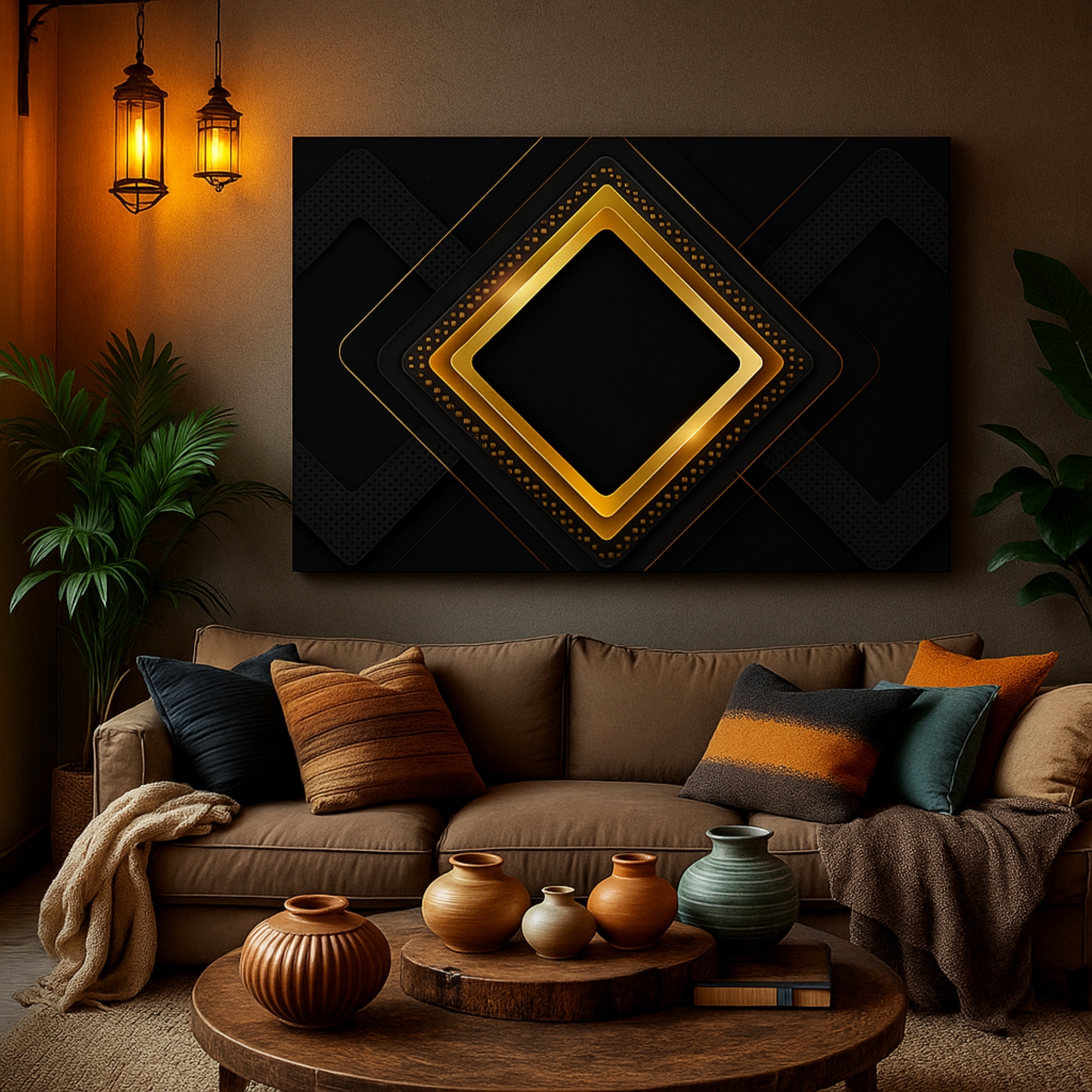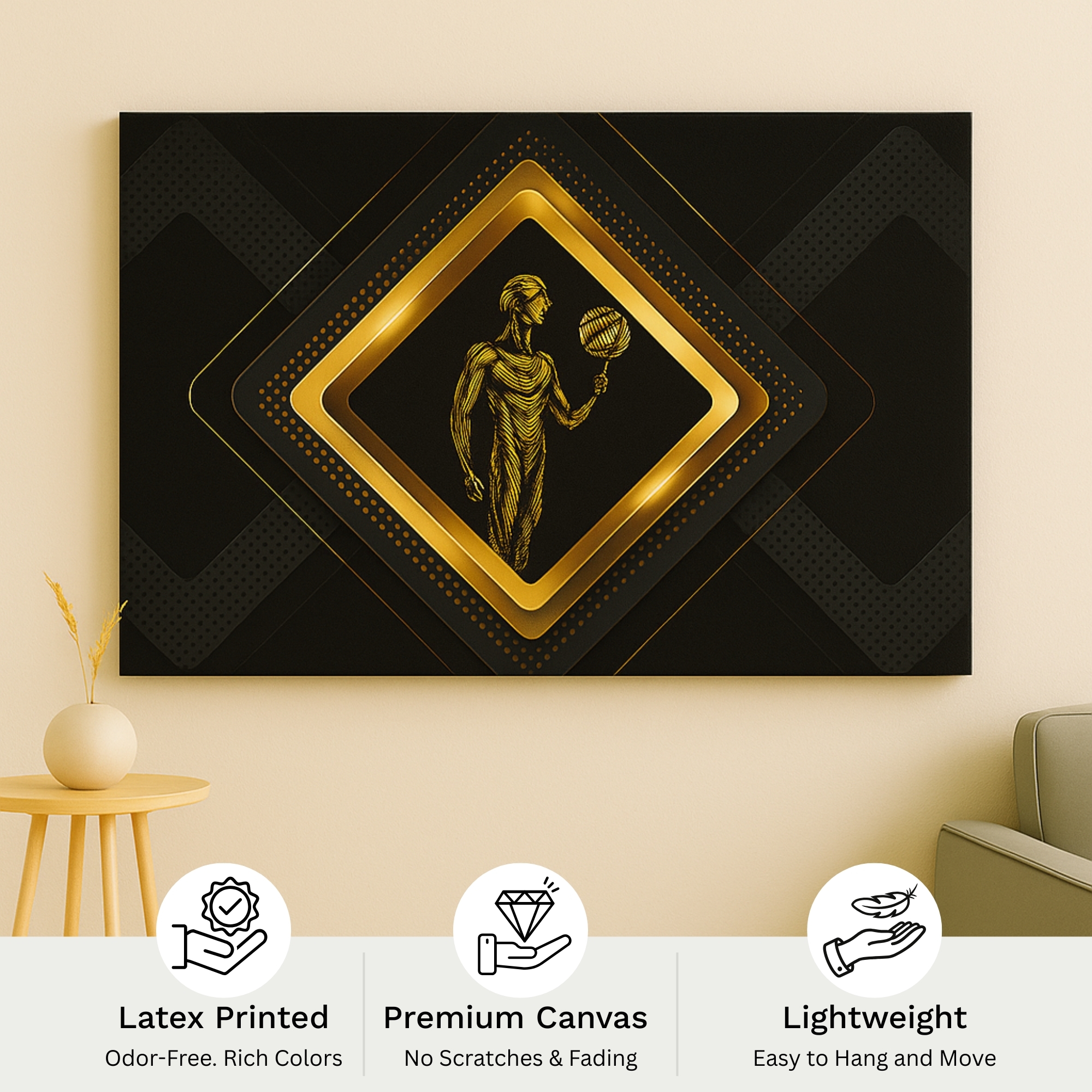 An ideal choice for those who appreciate symmetry, elegance, and modern luxury design.This canvas art is ideal for statement walls, cultural décor themes, and interiors that embrace bold, detailed craftsmanship.
