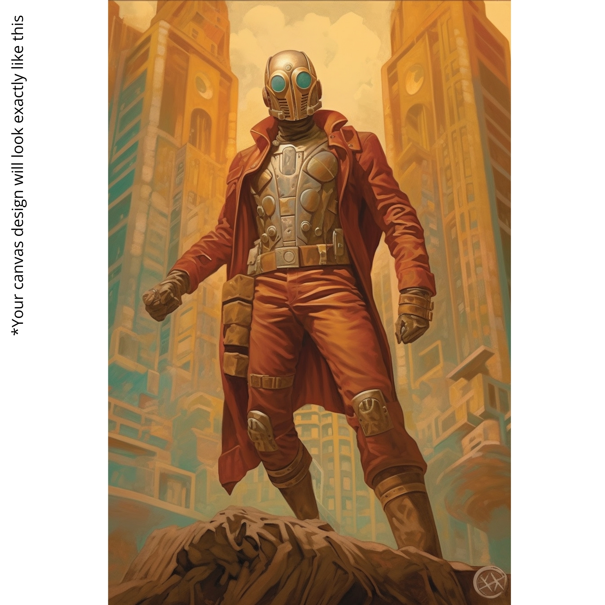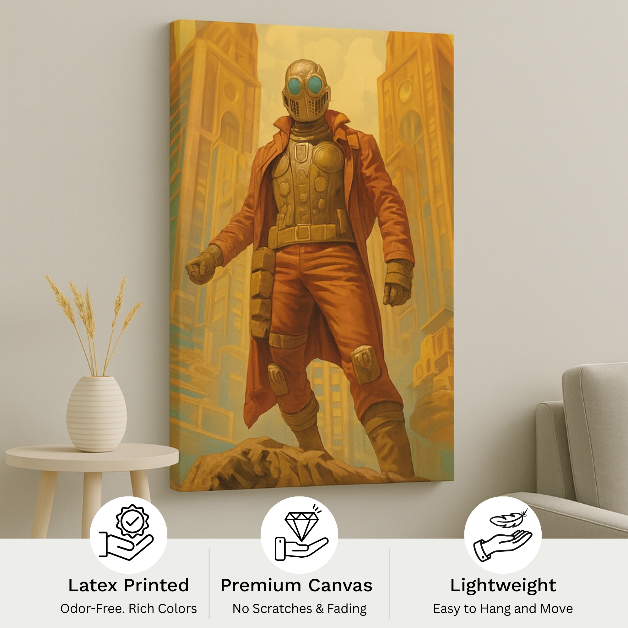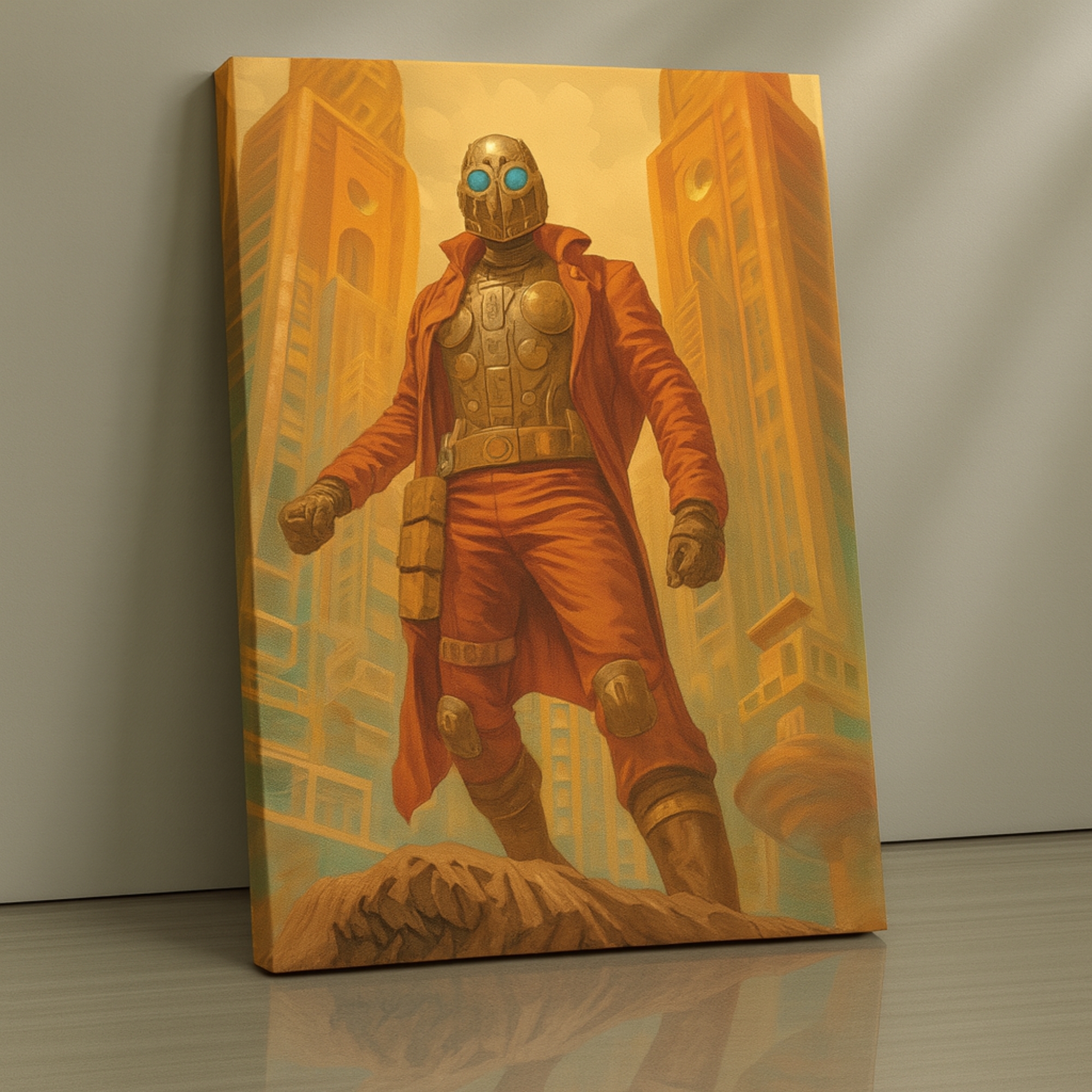 The Rusted Sentinel Canvas Print portrays a battle-worn mechanized guardian standing firm in a desolate industrial wasteland. Steampunk metal plating, distressed surfaces, oxidized joints, and glowing optical elements combine to create a gritty, cinematic dystopian atmosphere. This canvas print is perfect for sci-fi enthusiasts, mech lovers, futuristic gaming setups, or industrial loft décor seeking bold, rugged artwork with storytelling depth.