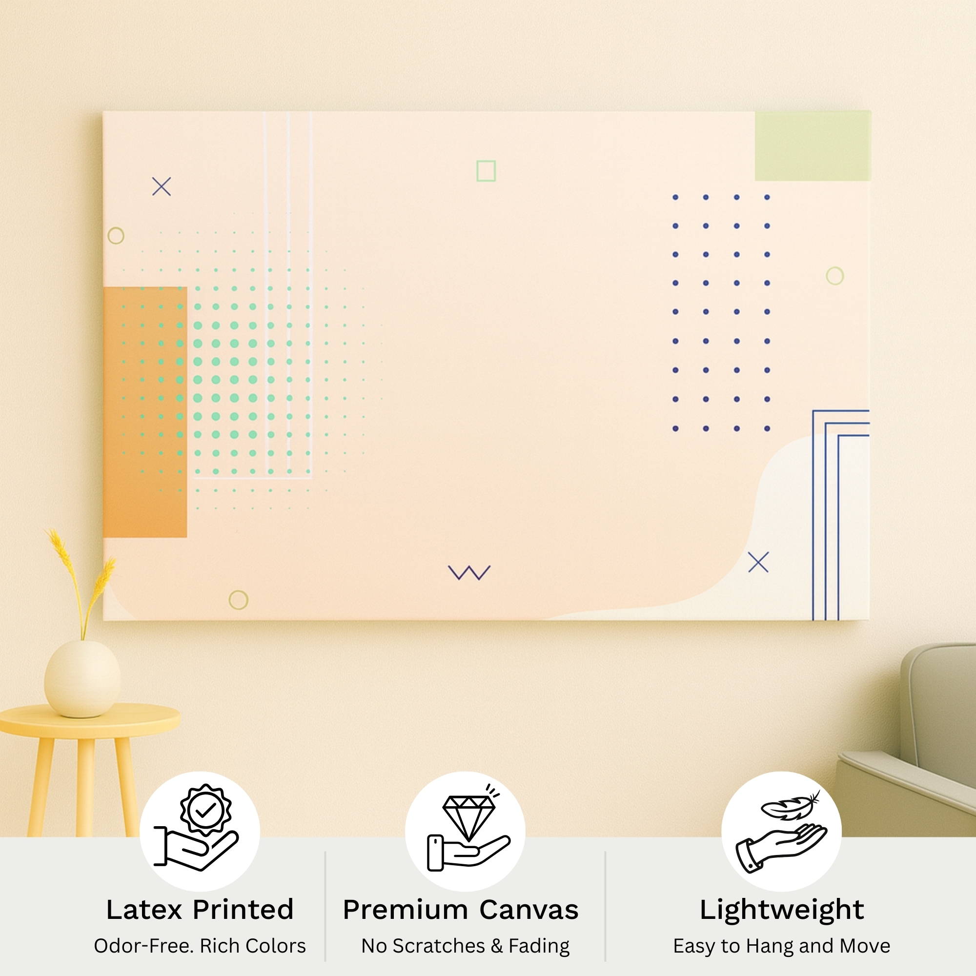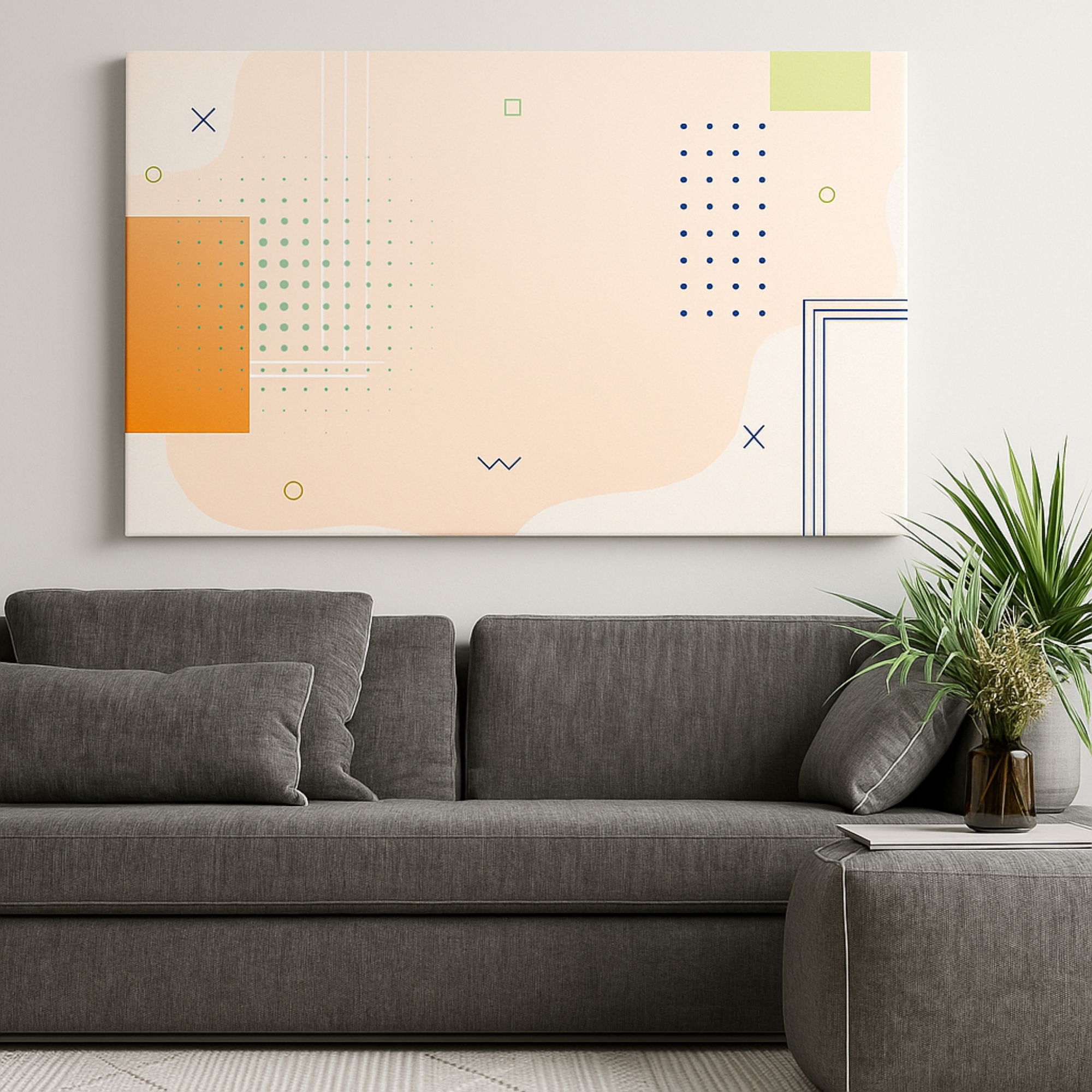 The Soft Geometry canvas print showcases smooth pastel shapes, gentle edges, and soft color harmony ideal for clean, modern interiors. Perfect for brightening living rooms, nurseries, creative corners, and home offices, this canvas delivers warmth, balance, and high-end aesthetic appeal. Playful Echoes fits beautifully with pastel décor, Scandinavian themes, and modern abstract styling.