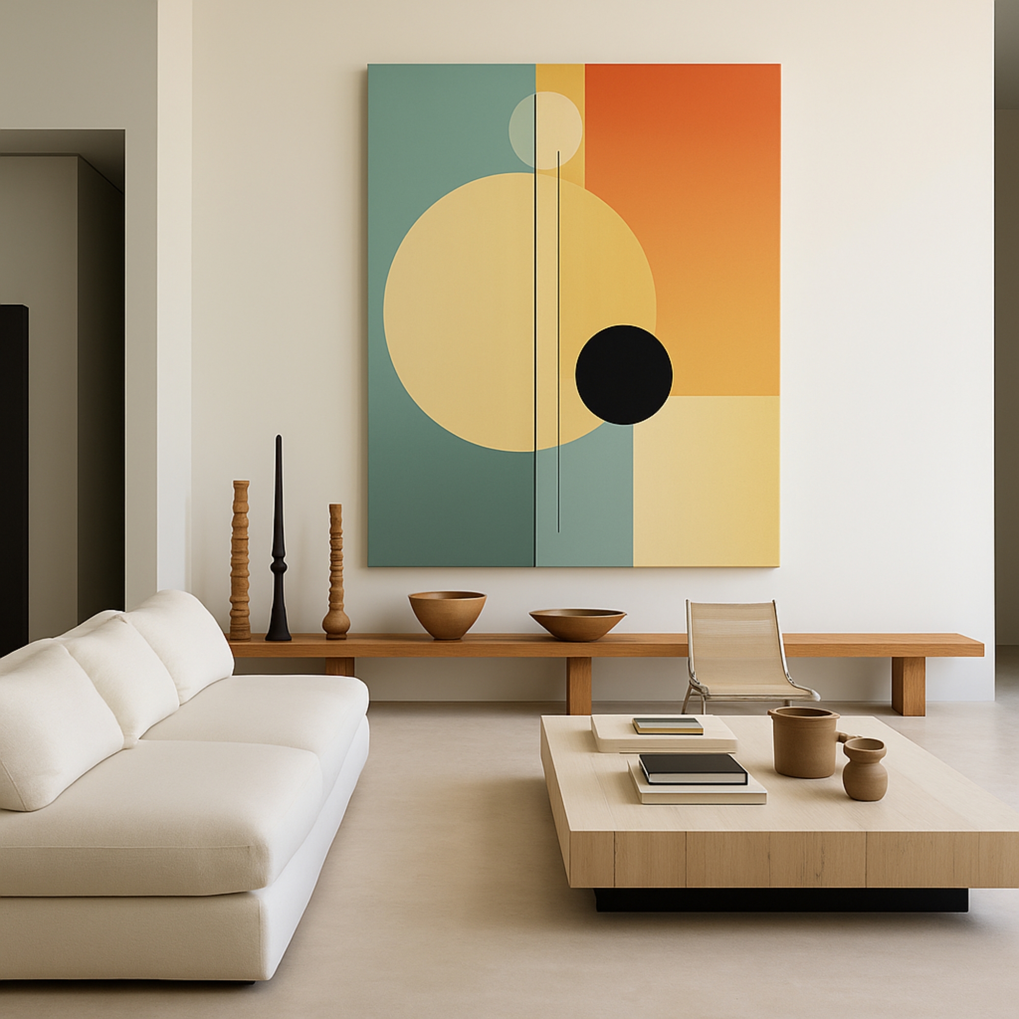 The Solar Balance canvas print brings bold geometric harmony to modern interiors. This canvas print combines circular forms, clean lines, and warm gradients to create a balanced and energizing focal point for living rooms, offices, studios, and contemporary Indian décor. Its smooth interplay of shapes makes this canvas ideal for minimal, vibrant, and structured spaces.