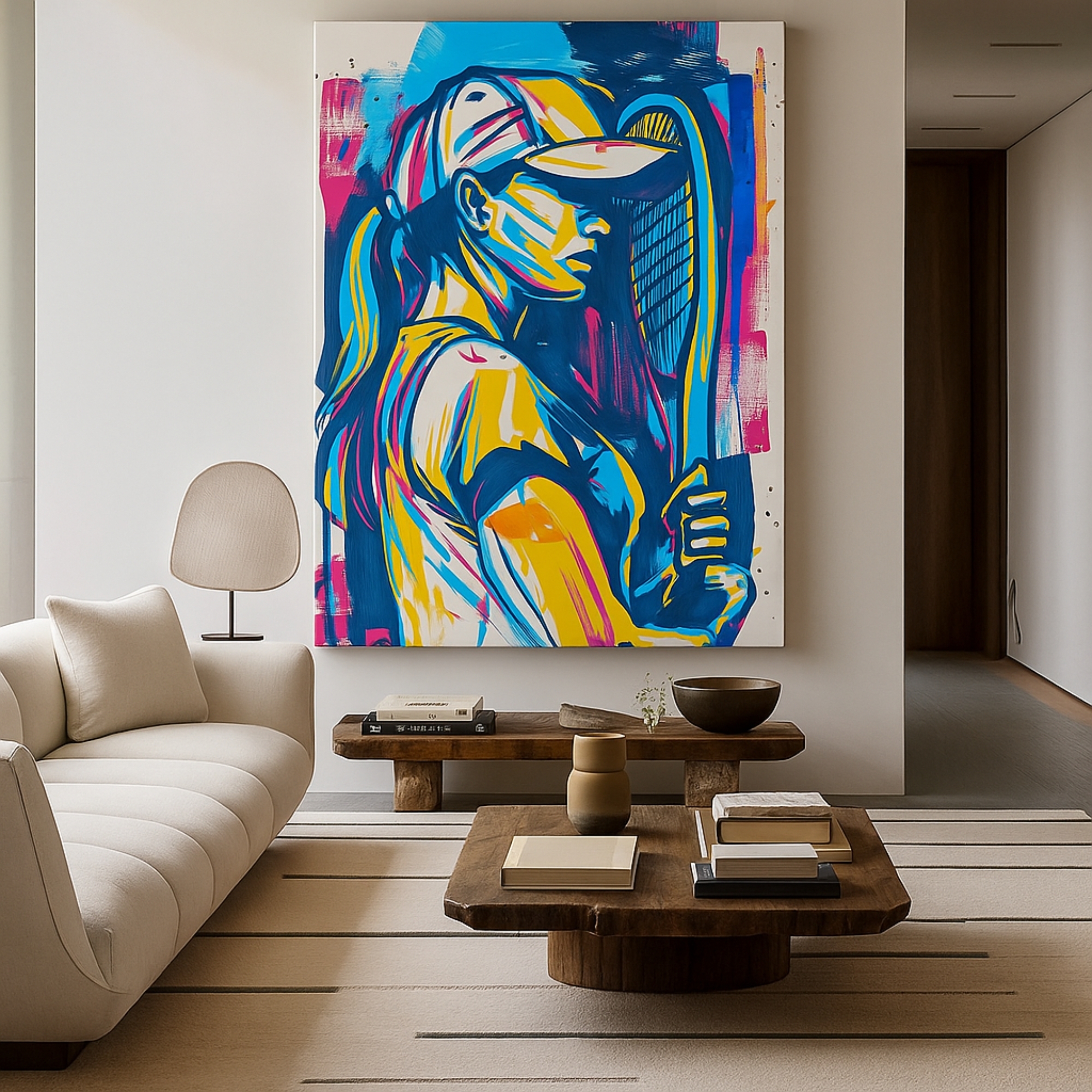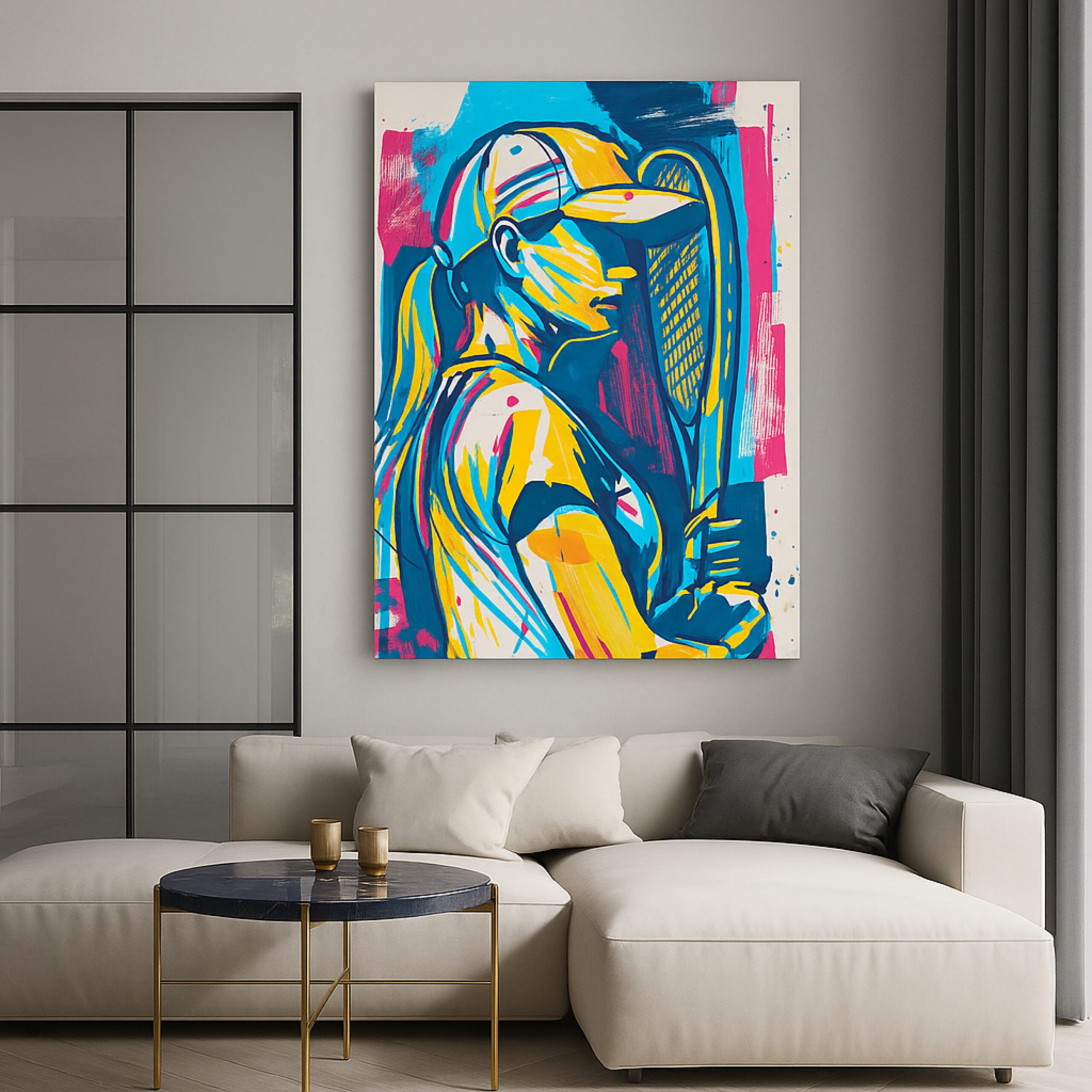 The Stroke of Power Canvas Print celebrates strength, focus, and elegance through bold abstract brushwork. Featuring a tennis player in dynamic motion, it embodies both intensity and grace. This sports-inspired artwork radiates ambition and passion, making it a striking focal point for interiors.