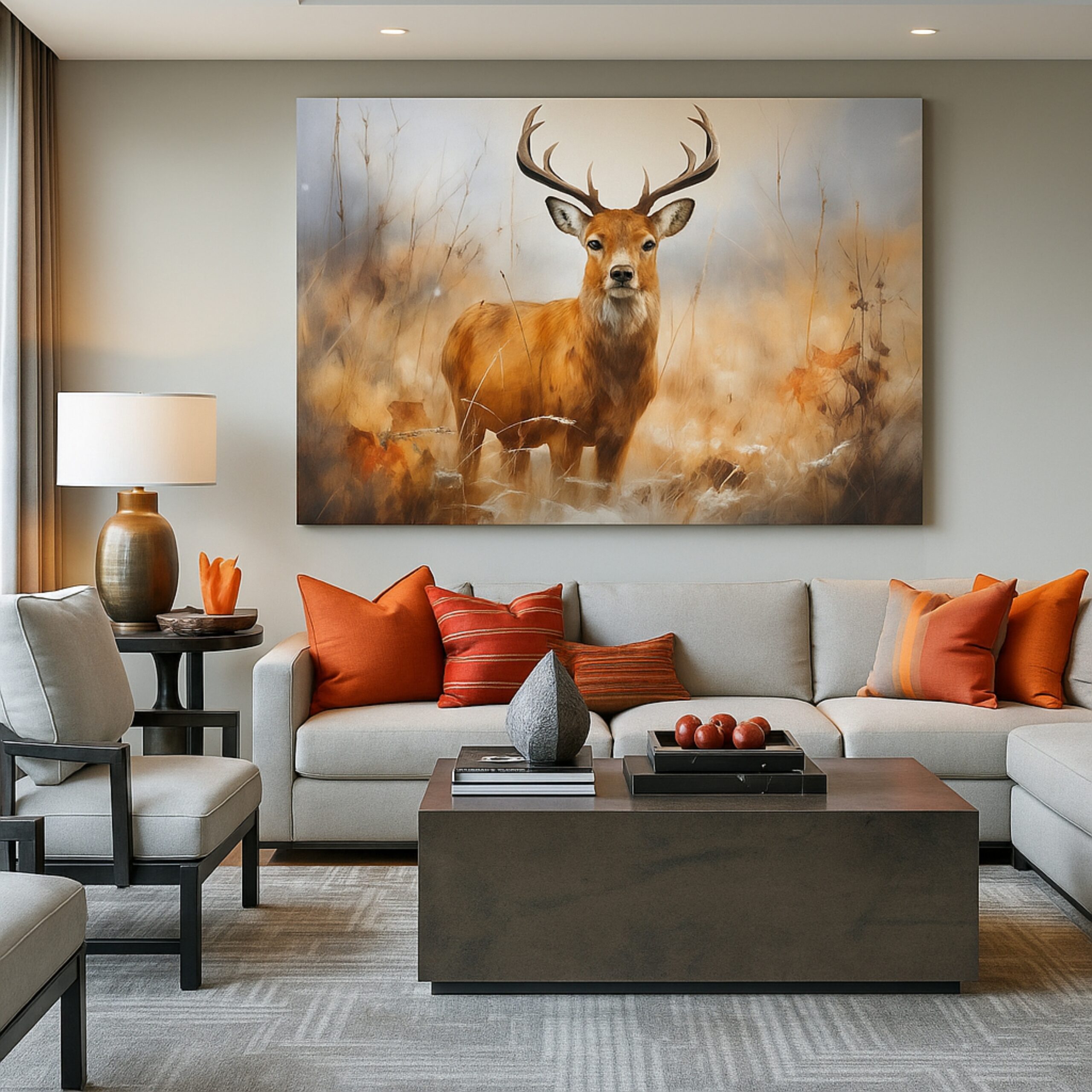 “Synaptic Stag” Canvas Print celebrates majesty and wisdom in golden meadows. A regal stag stands proudly, its antlers branching like networks of thought and strength. Earthy tones and luminous backdrops radiate nobility, making this artwork a grounding focal point for interiors.