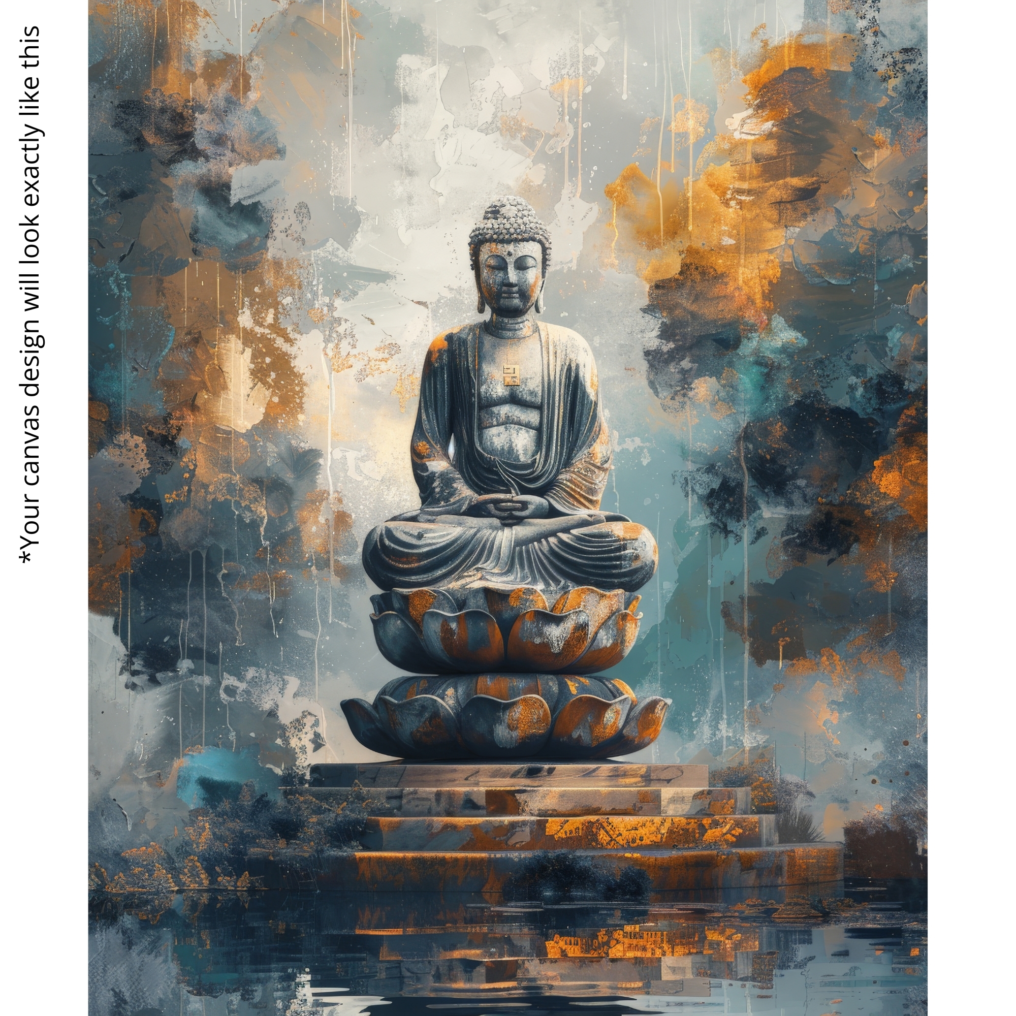 Embrace stillness and balance with the Tranquil Enlightenment Canvas Print, an artwork that captures Buddha seated gracefully upon a radiant lotus. Surrounding tones of gold and blue reflect peace, wisdom, and awakening, turning any room into a sanctuary of harmony. This peaceful canvas merges timeless spiritual symbolism with refined modern artistry, making it a stunning choice for meditation corners, yoga studios, or calm living spaces.